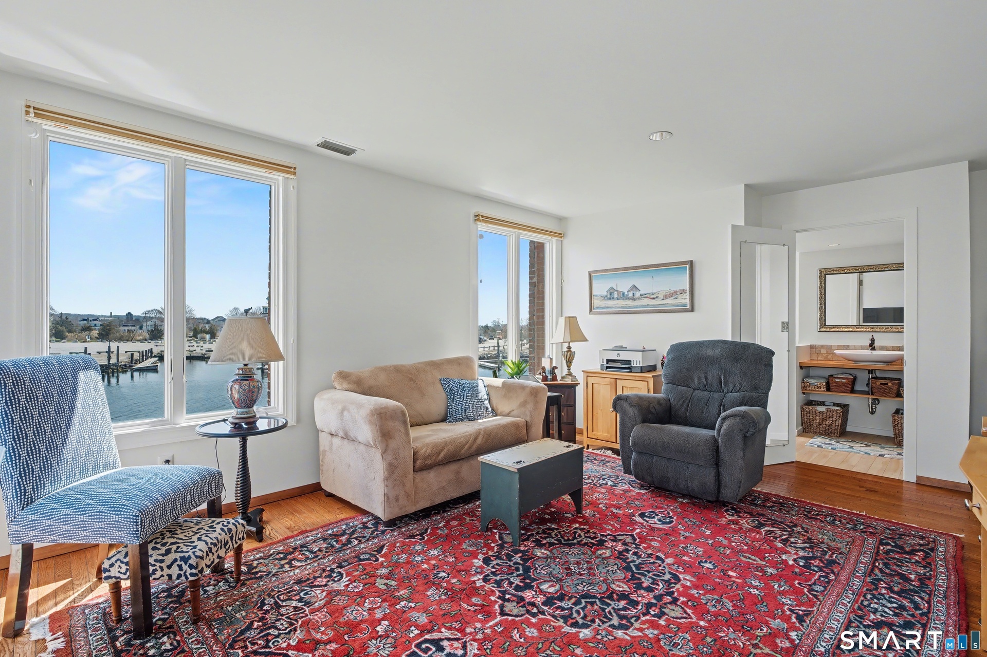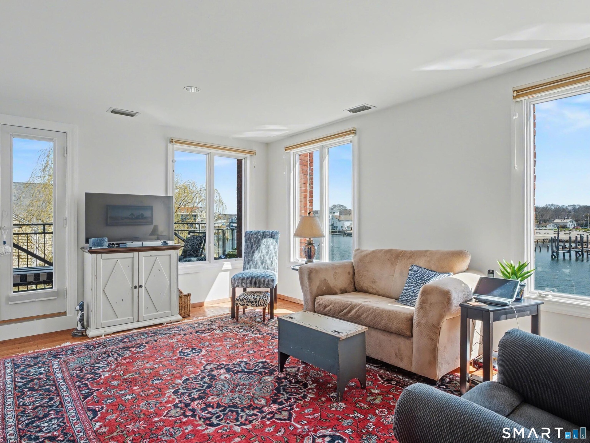 Direct Waterfront One Level Condo with Un Obstructed Water Views of the Mystic River.