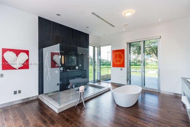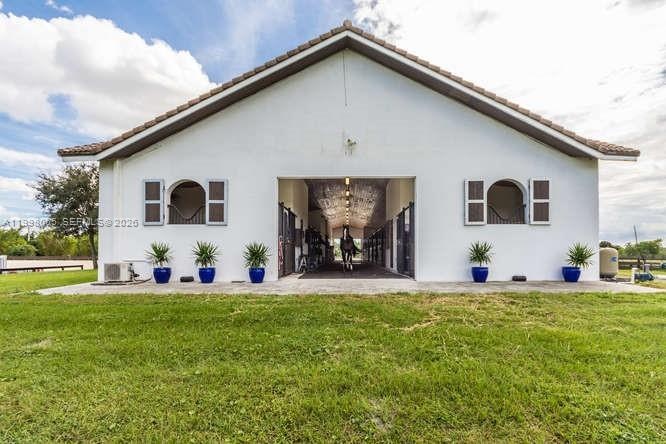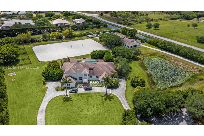 Breathtaking contemporary estate in Palm Beach Point set on over 7 acres of prime equestrian land. This exceptional property features soaring 30-foot ceilings, 8 spacious bedrooms, 9 bathrooms, plus 2 studio staff or grooms quarters in the barn with full kitchen and baths.