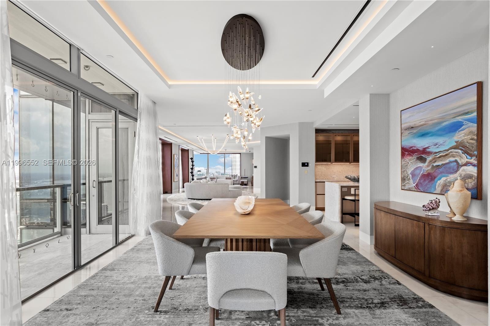 Welcome to the sky! On the 70th floor, this nearly 6,000 SF penthouse, designed by Jonathan A Ragusa, unites three units into an extraordinary residence. Breathtaking views of the ocean, skyline, and city set the stage for this impeccable home. Rich in detail, it boasts Cristallo stone, Italian Italcraft cabinetry, and a chef’s kitchen with Wolf and Sub-Zero appliances. Handcrafted Venetian glass light fixtures, bespoke European furnishings, and curated art enhance the interior’s timeless elegance. Smart home automation with Josh AI and Alisse switches seamlessly controls lighting, sound, and shades. Two expansive living areas, a spa-like primary suite, private entry, 4 parking spaces, and 6 Equinox memberships complete this rare and exceptional offering.