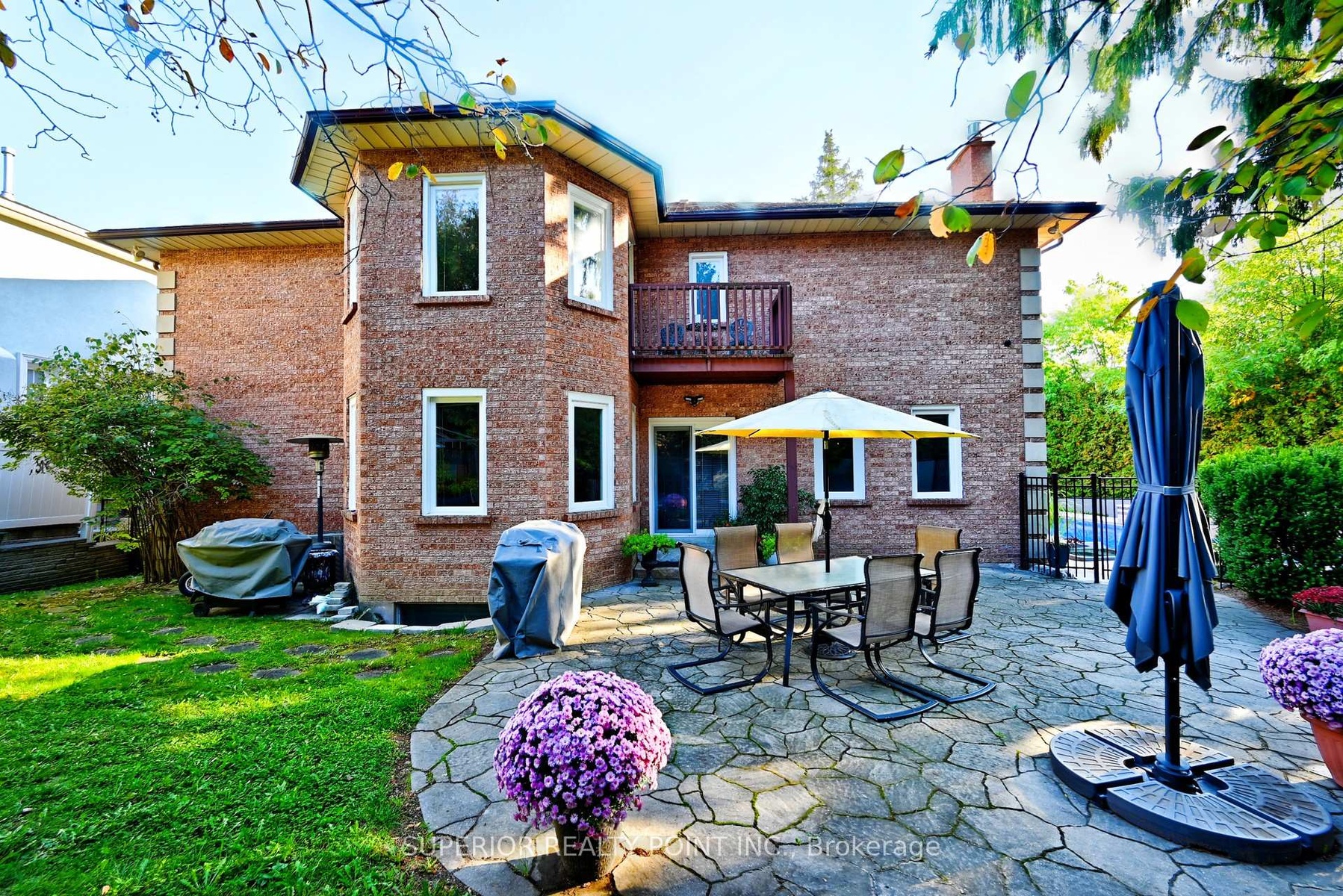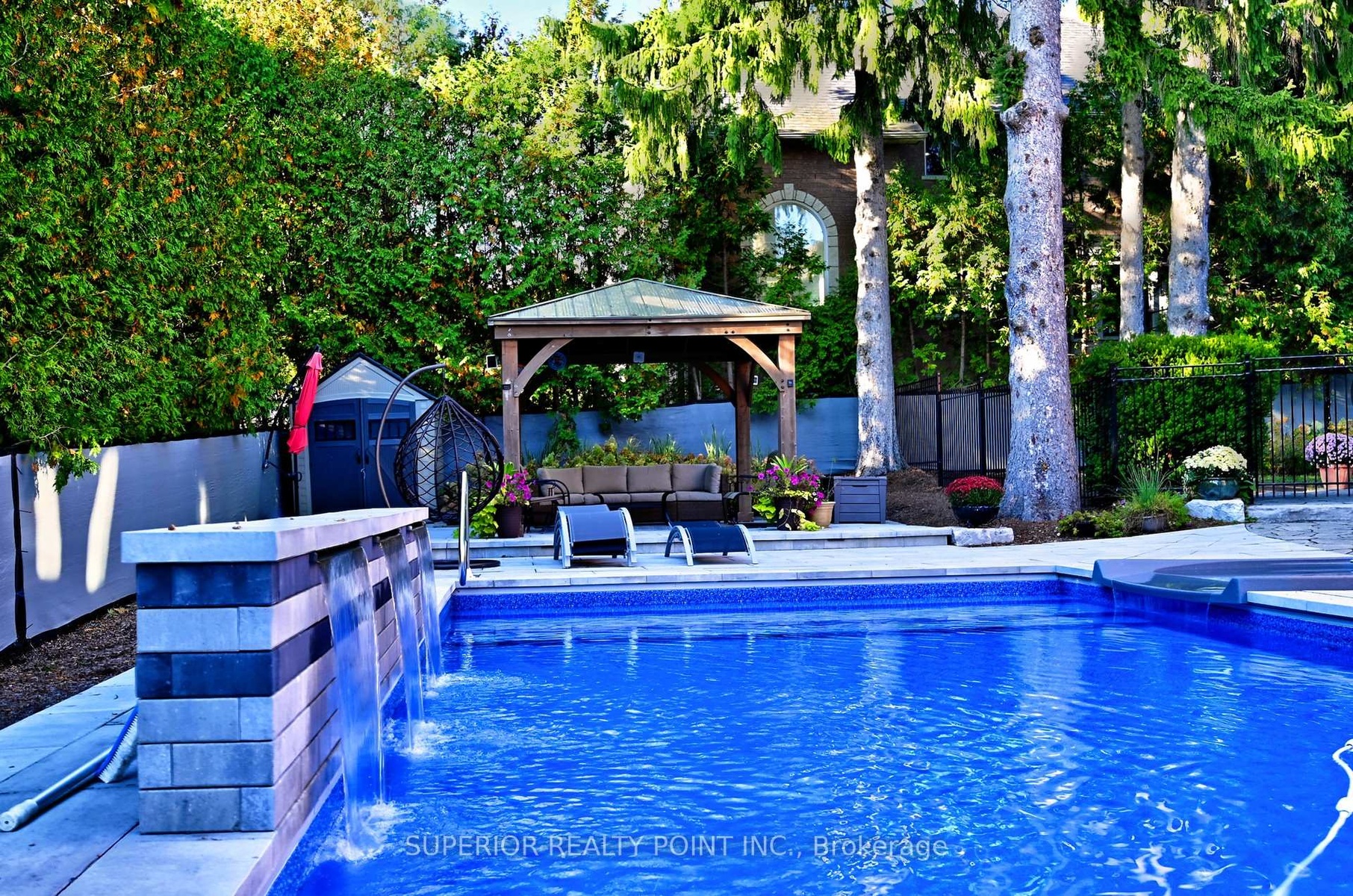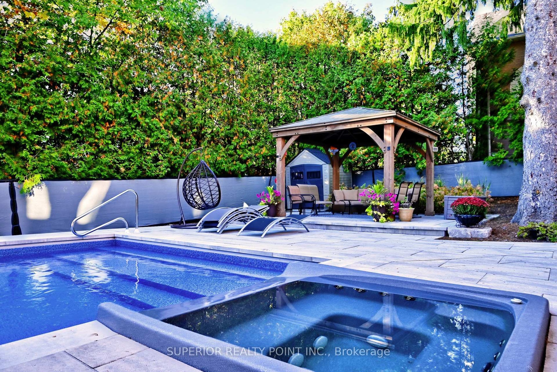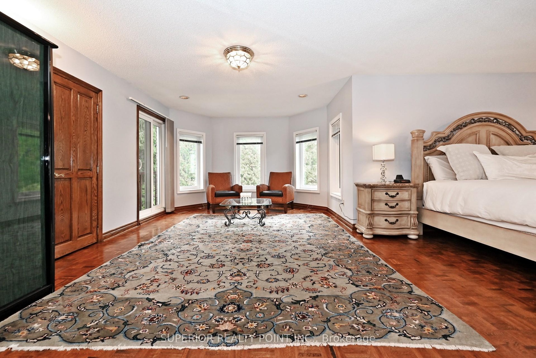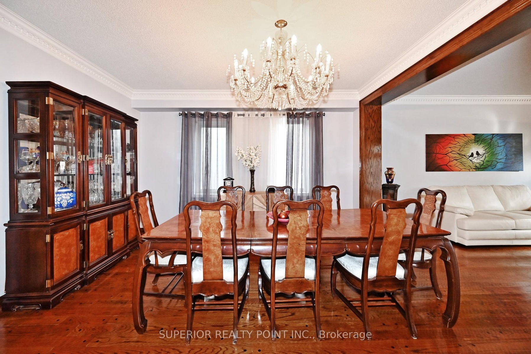 Client RemarksExperience timeless elegance and modern comfort in this magnificent 5,105 sq. ft. residence, plus an additional 3,000 sq.ft. unfinished basement, ideally situated in one of Richmond Hill's most coveted neighborhoods - Mill Pond. Designed with exceptional attention to detail, this carpet-free home offers generously sized living spaces, perfect for both family living and grand entertaining.The main floor features 9-ft ceilings, custom pot lighting, and a striking Scarlett O'Hara oak staircase that sets the tone for sophistication throughout. A radiant-heat fireplace creates a warm and inviting ambiance, complemented by solid oak floors, oak-trimmed windows, and door frames for enduring elegance. The custom Oak Kitchen is both stylish and functional, featuring new smart Samsung stainless steel appliances, including a fridge and stove - ideal for today's modern lifestyle. Upstairs, you'll find three master bedrooms, a spacious great room, and an impressive primary suite with a private sitting area, spa-inspired ensuite with washlet bidet, and a private balcony - a serene retreat for morning coffee or evening relaxation. All closets include built-in organizers for optimal storage. Recent upgrades ensure long-term comfort and efficiency, including: New windows (2 years), Roof (9 years).2 upgraded furnaces,2 new A/C. The fully waterproofed lower level includes a rough-in for a bar and washroom, and side entrances with direct access to both the basement and backyard.Step outside to your private backyard oasis, where over $300,000 has been invested in professional landscaping and resort-style design. Enjoy a 3-year-old saltwater, heated pool complete with a waterfall, spillover jacuzzi, and automated cover. The fully fenced backyard features a double-lock gate on the east side for added privacy and convenience. A circular interlocking driveway accommodates up to 8 vehicles, offering both functionality and elegance for family gatherings and entertaining guests.