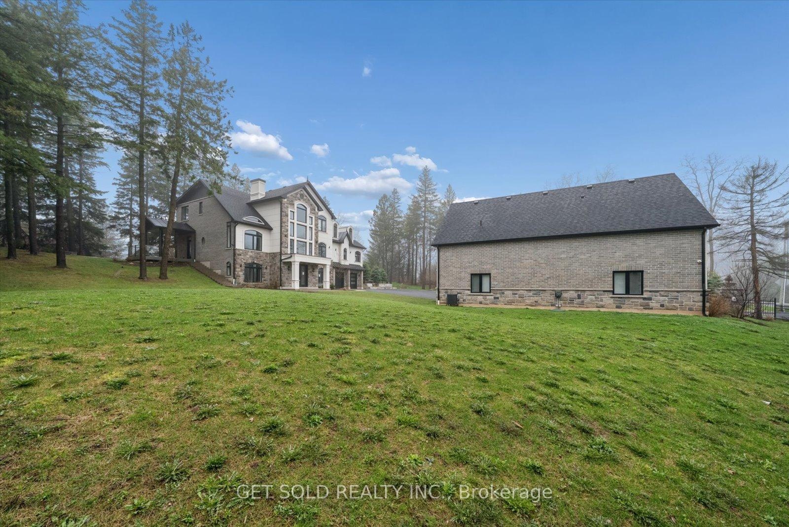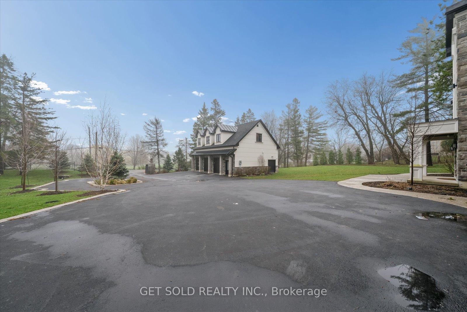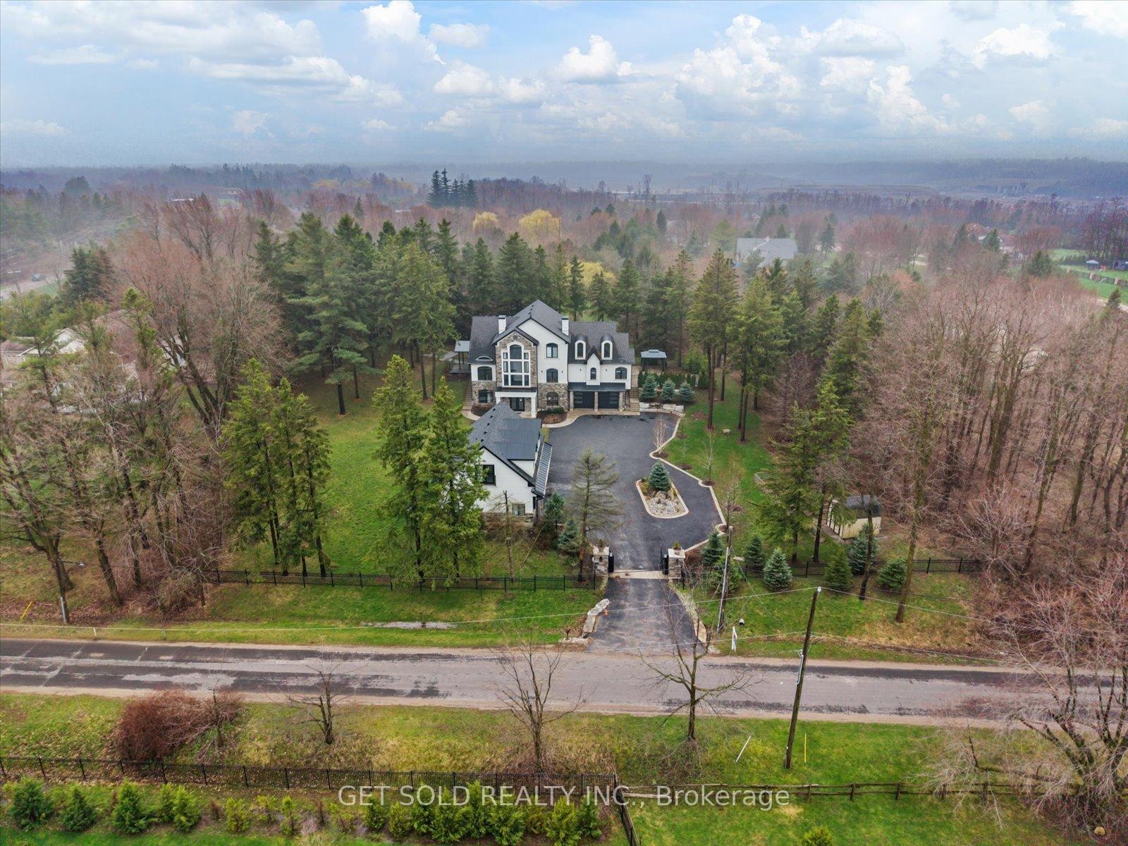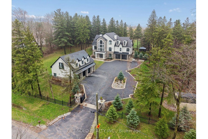 POWER OF SALE Opportunity - Luxury Estate Living in Prestigious Rural Burlington. An exceptional opportunity to acquire a grand custom-built estate set on over one acre of private, lushly landscaped grounds, surrounded by exclusive multi-million dollar residences in one of Burlington's most coveted rural settings. Positioned behind modern security gates, this striking stone and stucco mansion offers approximately 6,000 square feet of luxurious living space, defined by expansive windows, soaring ceiling heights, and impeccable craftsmanship. A private elevator services all three levels, enhancing convenience. Designed for seamless living and entertaining, the main level showcases an elegant open-concept layout with principal rooms, coffered ceilings, designer lighting, and integrated built-in speakers. The gourmet kitchen is a true showpiece, featuring a dramatic waterfall quartz island, premium Dacor built-in appliances, and extensive custom cabinetry. The main floor primary suite delivers a private retreat experience, complete with a gas fireplace, spacious walk-in closet, direct access to the backyard terrace, and a spa-like 5-piece ensuite. The upper level offers three generously sized bedrooms, each appointed with walk-in closets and private ensuites, along with a hidden bonus space-ideal as a media lounge, playroom, or additional living area. The fully finished lower level extends the home's luxury appeal with a dedicated theatre room, executive office, and expansive recreation area. Outdoors, the property transforms into a resort-style oasis featuring a saltwater pool, professionally landscaped grounds, and entertaining areas designed for relaxation. Additional highlights include a heated detached three-car garage with 12-foot ceilings, a sophisticated Control4 smart home system, and the rare convenience of three separate kitchens.Offered under Power of Sale