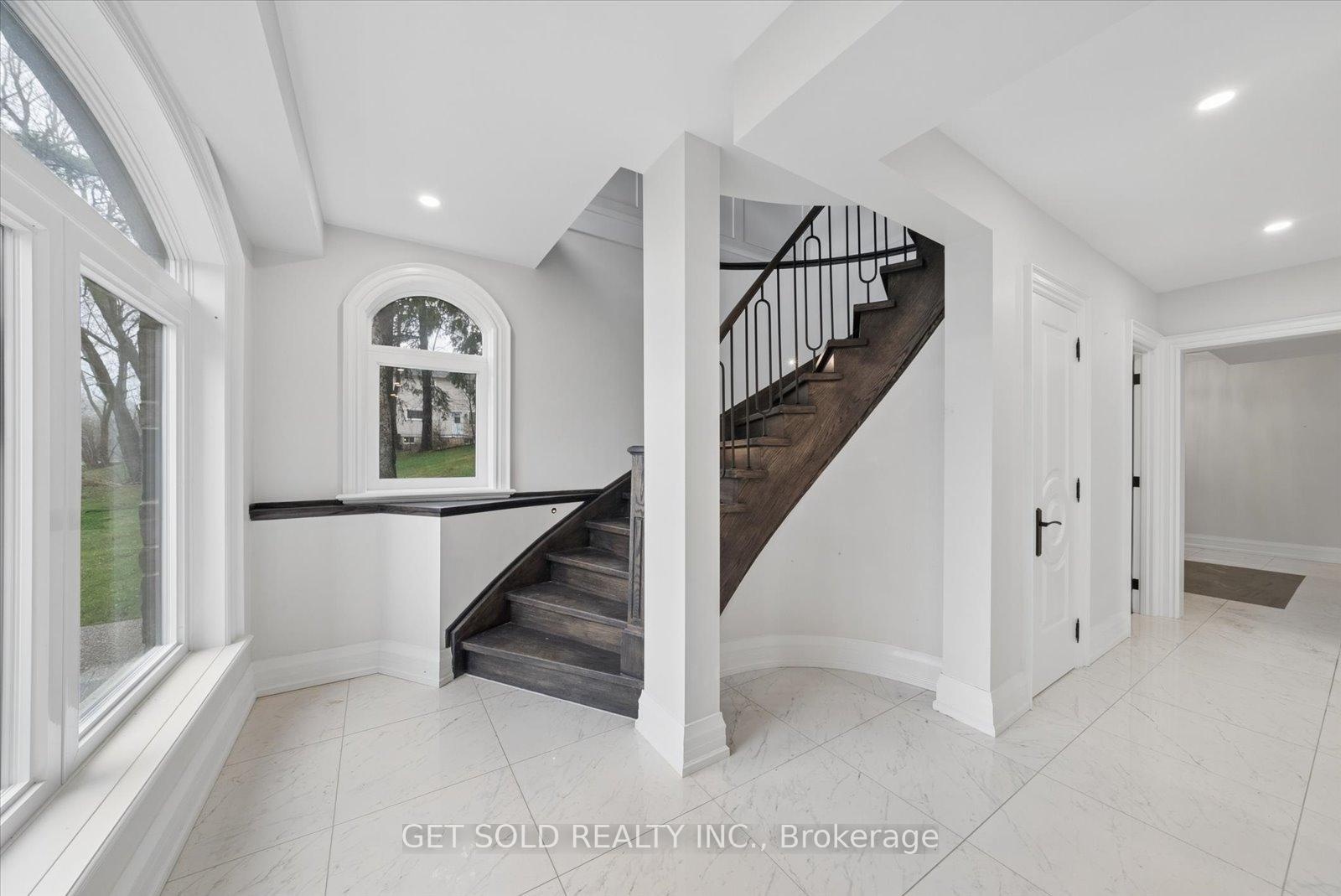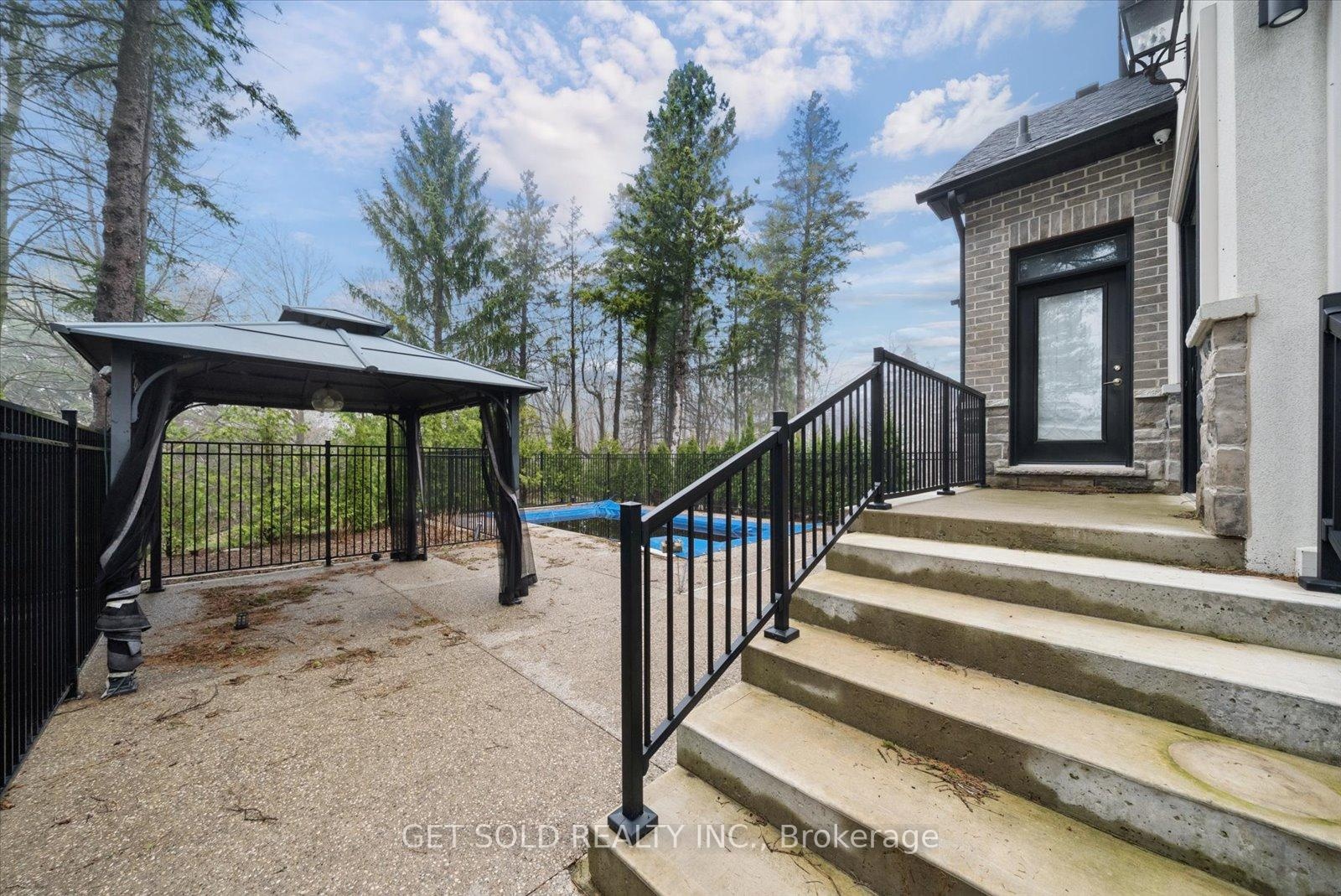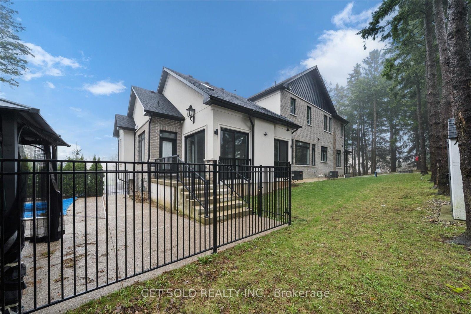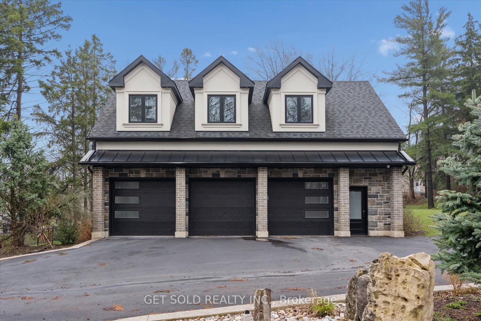 POWER OF SALE Opportunity - Luxury Estate Living in Prestigious Rural Burlington. An exceptional opportunity to acquire a grand custom-built estate set on over one acre of private, lushly landscaped grounds, surrounded by exclusive multi-million dollar residences in one of Burlington's most coveted rural settings. Positioned behind modern security gates, this striking stone and stucco mansion offers approximately 6,000 square feet of luxurious living space, defined by expansive windows, soaring ceiling heights, and impeccable craftsmanship. A private elevator services all three levels, enhancing convenience. Designed for seamless living and entertaining, the main level showcases an elegant open-concept layout with principal rooms, coffered ceilings, designer lighting, and integrated built-in speakers. The gourmet kitchen is a true showpiece, featuring a dramatic waterfall quartz island, premium Dacor built-in appliances, and extensive custom cabinetry. The main floor primary suite delivers a private retreat experience, complete with a gas fireplace, spacious walk-in closet, direct access to the backyard terrace, and a spa-like 5-piece ensuite. The upper level offers three generously sized bedrooms, each appointed with walk-in closets and private ensuites, along with a hidden bonus space-ideal as a media lounge, playroom, or additional living area. The fully finished lower level extends the home's luxury appeal with a dedicated theatre room, executive office, and expansive recreation area. Outdoors, the property transforms into a resort-style oasis featuring a saltwater pool, professionally landscaped grounds, and entertaining areas designed for relaxation. Additional highlights include a heated detached three-car garage with 12-foot ceilings, a sophisticated Control4 smart home system, and the rare convenience of three separate kitchens.Offered under Power of Sale