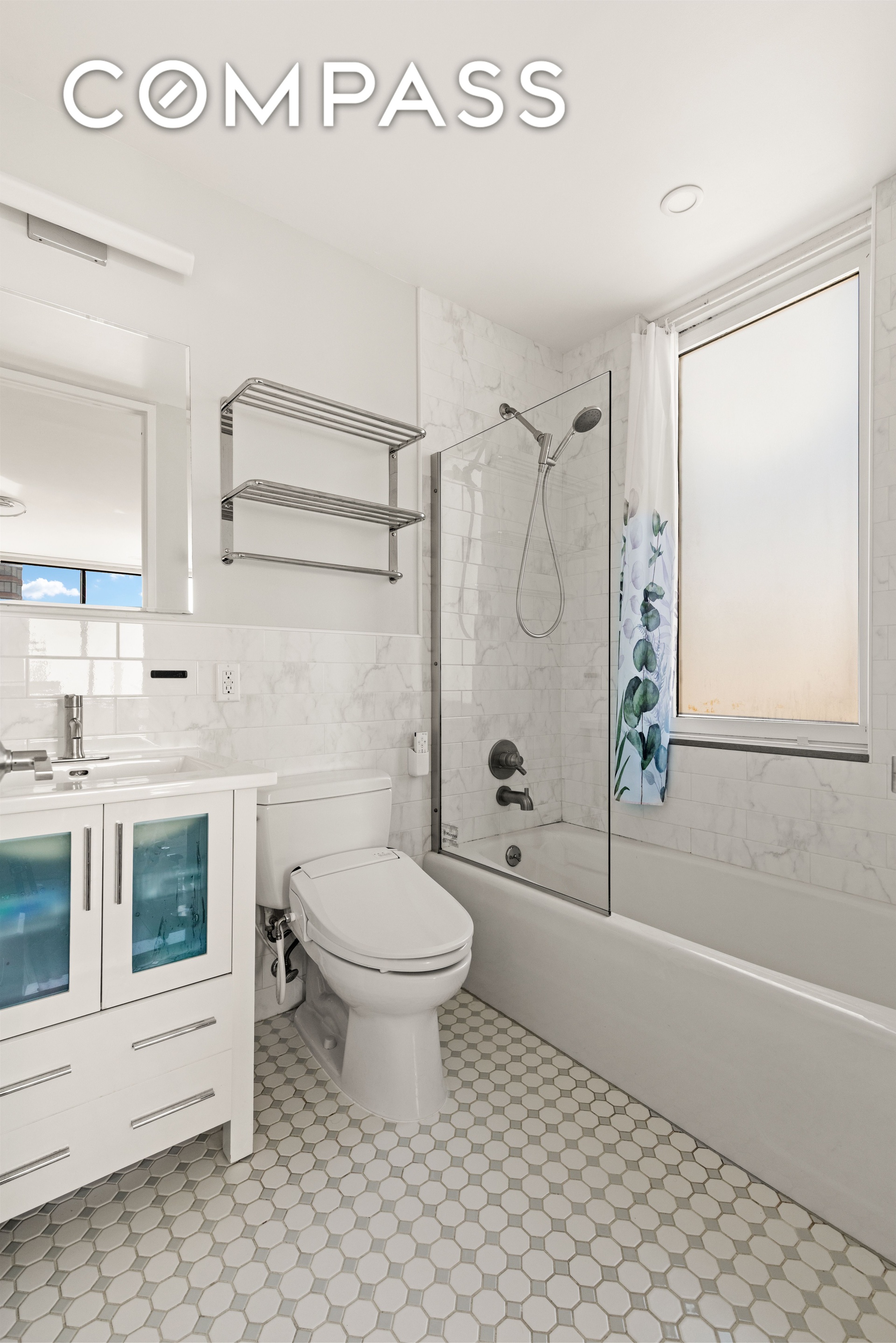 The second bedroom is also spacious, showcasing eastern views, with custom closets and easy access to the second full bath. Both bathrooms include luxury additions such as heated towel racks and bidet-style fixtures.
