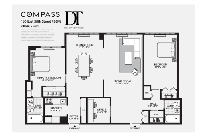 Thoughtfully designed for both comfort and privacy, the split-bedroom layout ensures a serene separation rarely found in Manhattan living.