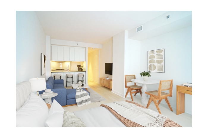 Rare opportunity to purchase a studio in one of the best boutique full-service condos in Gramercy! This spacious, sunny and quiet east-facing apartment has a comfortable layout with a gracious entry foyer, high ceilings, wide plank white oak hardwood floors, fully controllable central air/heating, and a wall of floor-to-ceiling windows. The open kitchen boasts top-of-the-line Miele appliances, including a dishwasher, SubZero refrigerator, and stone countertops, with more than sufficient storage space. The beautiful and serene bathroom boasts tasteful tiling, excellent storage and a powerful waterfall shower head and combination tub. This bright and quiet residence also features City views, Bosch washer/dryer units, a large walk-in closet, and is wired for high-speed Verizon FiOS fiber cable/Internet.