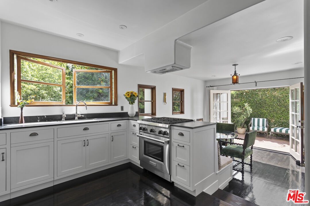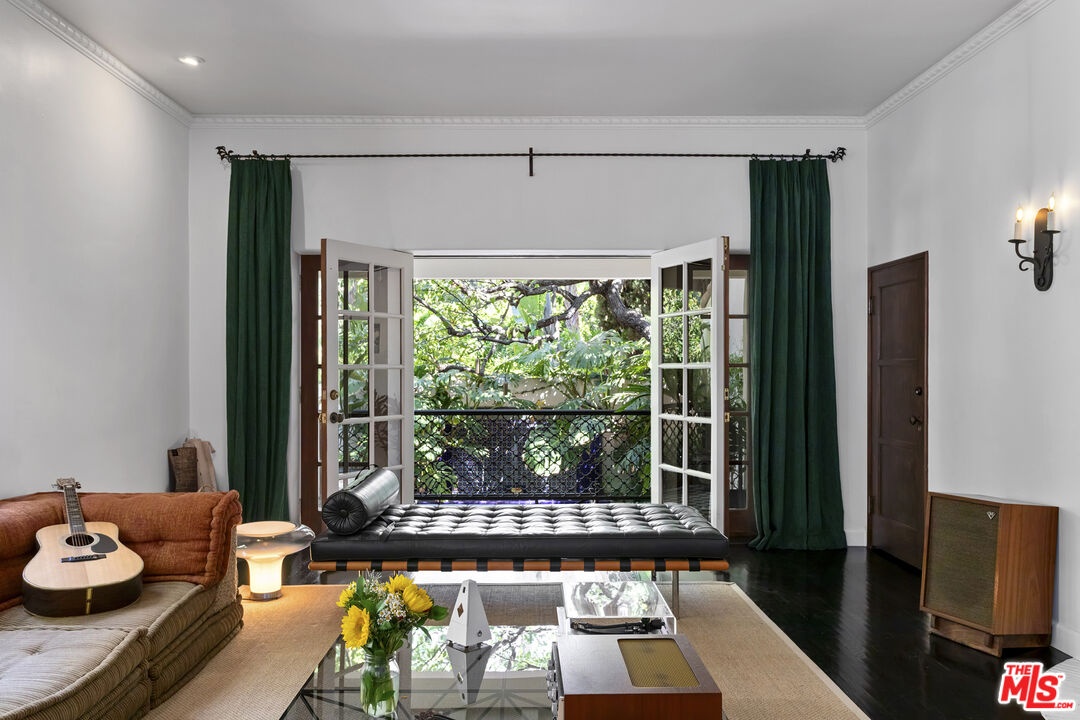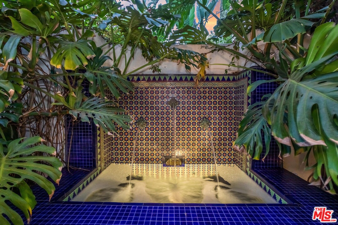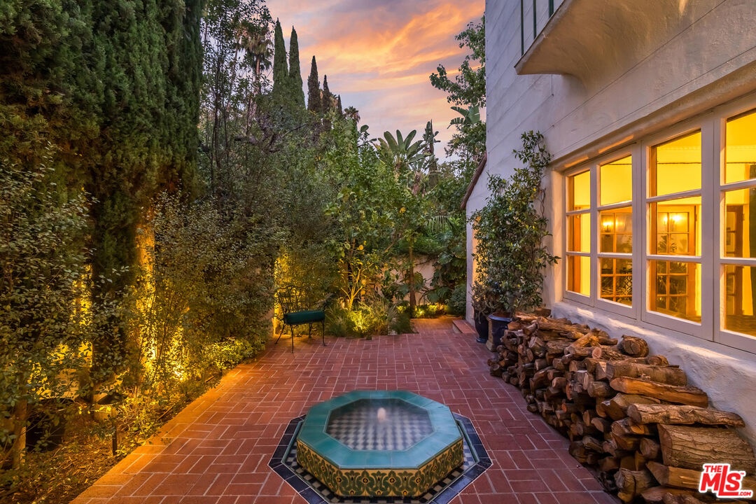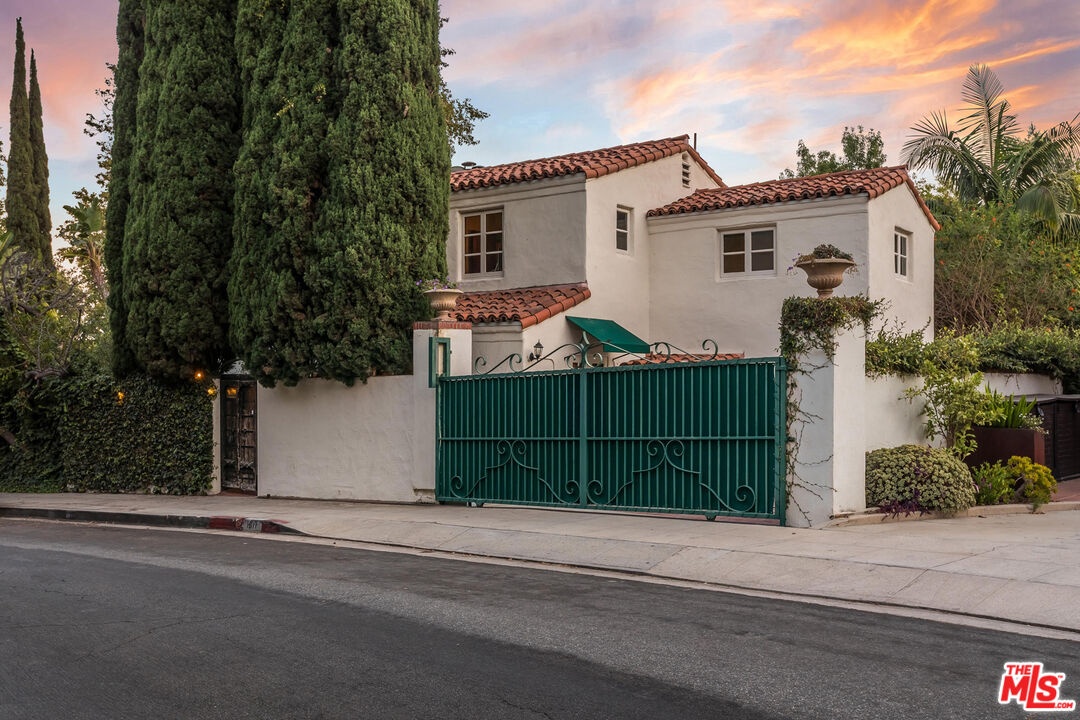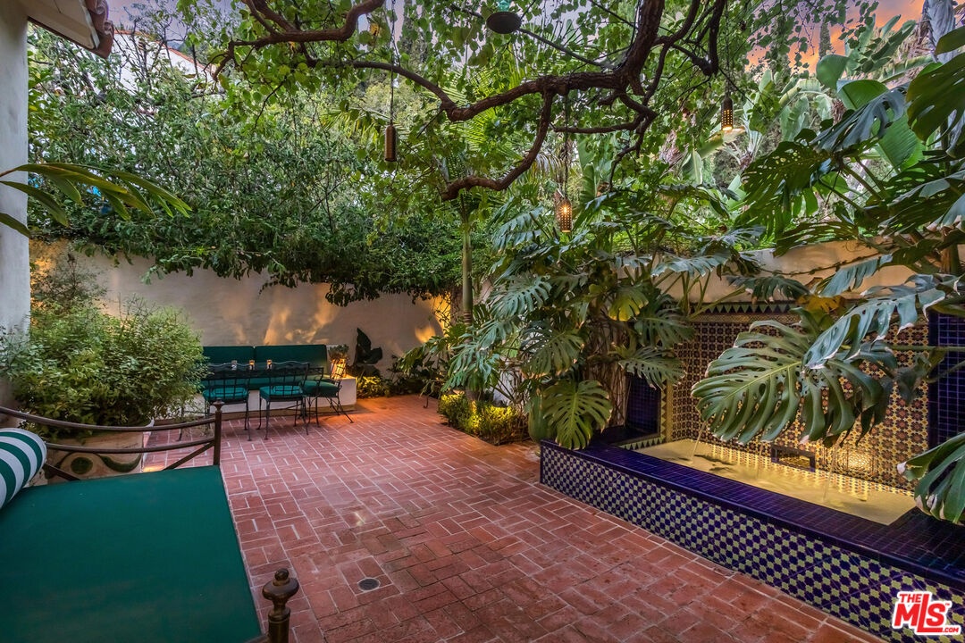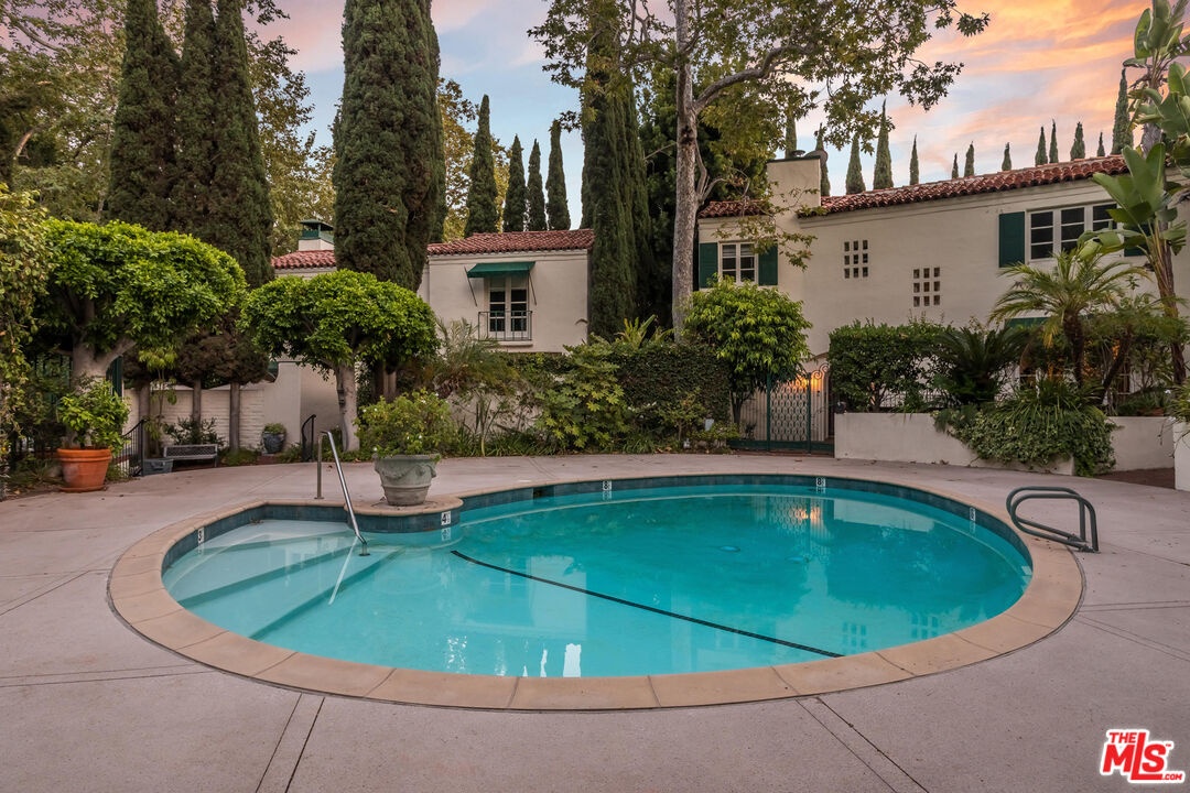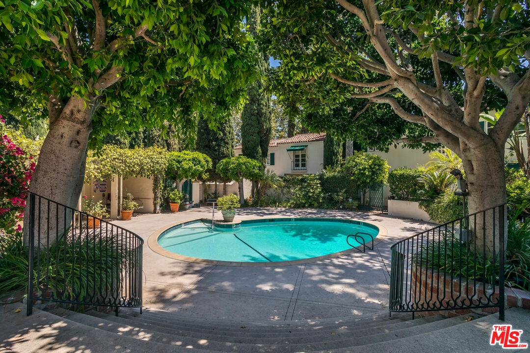 This stunning townhome with Old Hollywood charm is located just above the Sunset Strip, tucked away in lower Nichols Canyon. Part of The Courtney Desmond Estate (1926), Los Angeles Historic Cultural Monument #445, this townhome is 1 of only 5 unique homes that have rarely come to market in their storied near 100 year history. This beauty and charm of this extraordinary residence has been enhanced by a recent extensive and tasteful restoration, with thoughtful attention to detail, retaining the glamour of its romantic architecture. The home lives like a single family residence, while enjoying the ease of being a part of a small, idyllic community, sharing a tranquil pool, surrounding cabanas, and lush, manicured grounds. The gated entry opens to the expansive, yet private outdoor living surrounding the home which includes multiple water features, sitting areas, as well as a built-in sumptuous spa, a tranquil and lush European setting. The home has generous formal living spaces on the main level, with the elegant primary suite and additional 2 bedrooms and 1 bath on the second level. The authentic and meticulously selected finishes are evident throughout, with exceptional attention to detail. Each window overlooks verdant, leafy vistas, and provide a peaceful, quiet setting. Complete with its own private and gated parking, this rare, timeless, masterfully restored offering simply has it all.