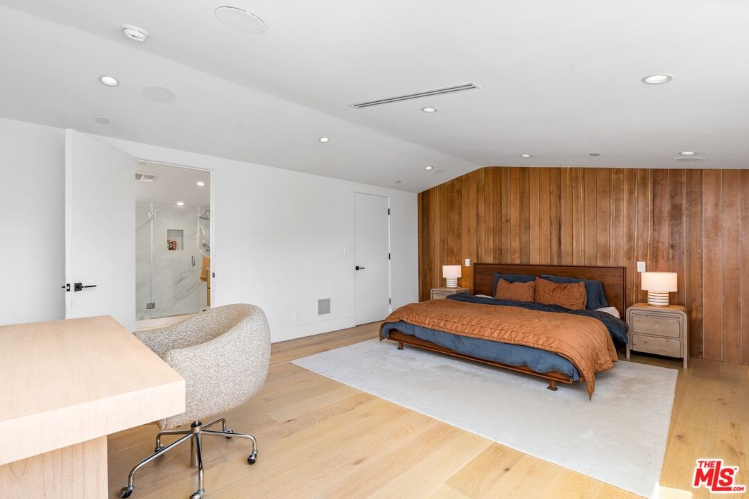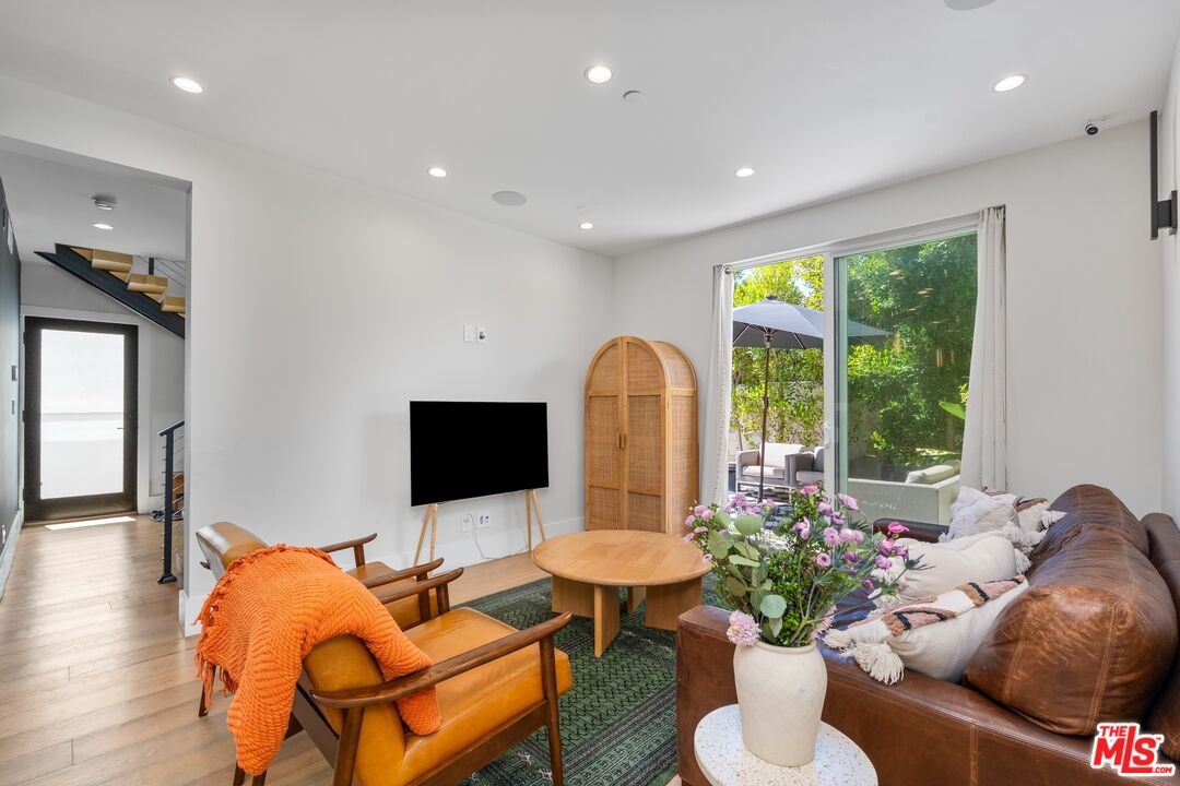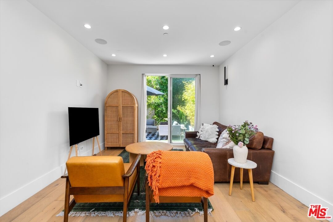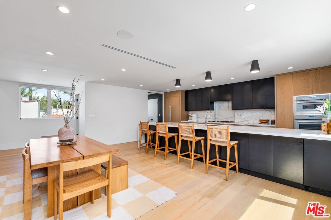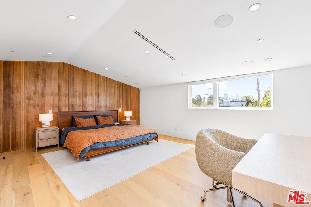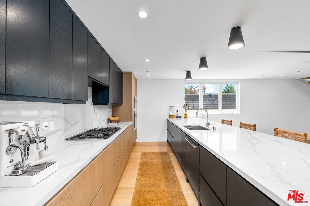 Stunning 2021 custom built Robert Thibodeau architectural home with 3 stories, 4 bedrooms, 3.5 baths + den + roof top deck steps to world class restaurants & shops. Spacious living room with vaulted ceilings, electric fireplace enlarge, sliding glass doors that walk out to a lovely balcony. Gourmet Italian kitchen, boasting, quartz countertops, Center, Island, counter, and all stainless steel appliances. The floor plan on each level is large with open spaces. The primary bedroom has a walk-in closet plus en suite spa primary bath with dual vanity, soaking tub and oversized shower. Direct access to the roof rooftop deck, which is perfect for entertaining and glorious summer nights. Three bedrooms plus the den share their own level with a beautiful outdoor patio. There is a private two car garage plus inside laundry. Centrally located and easy to get to all of what Venice and the west side have to offer.