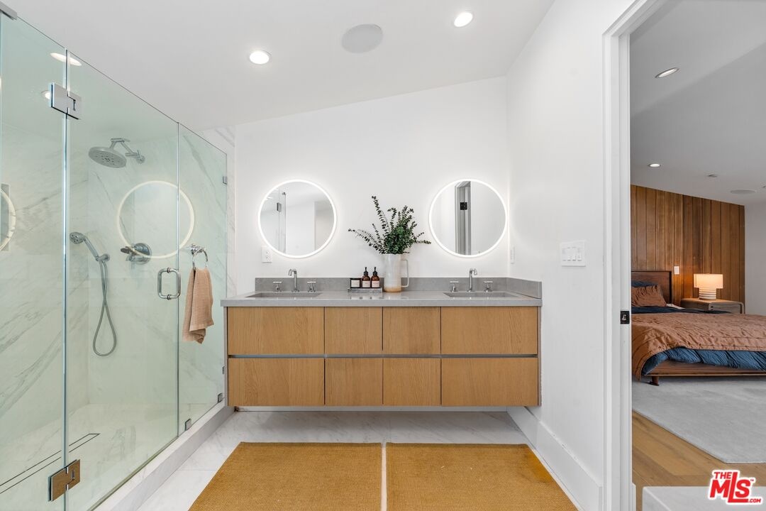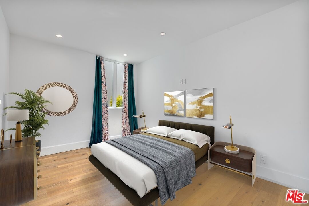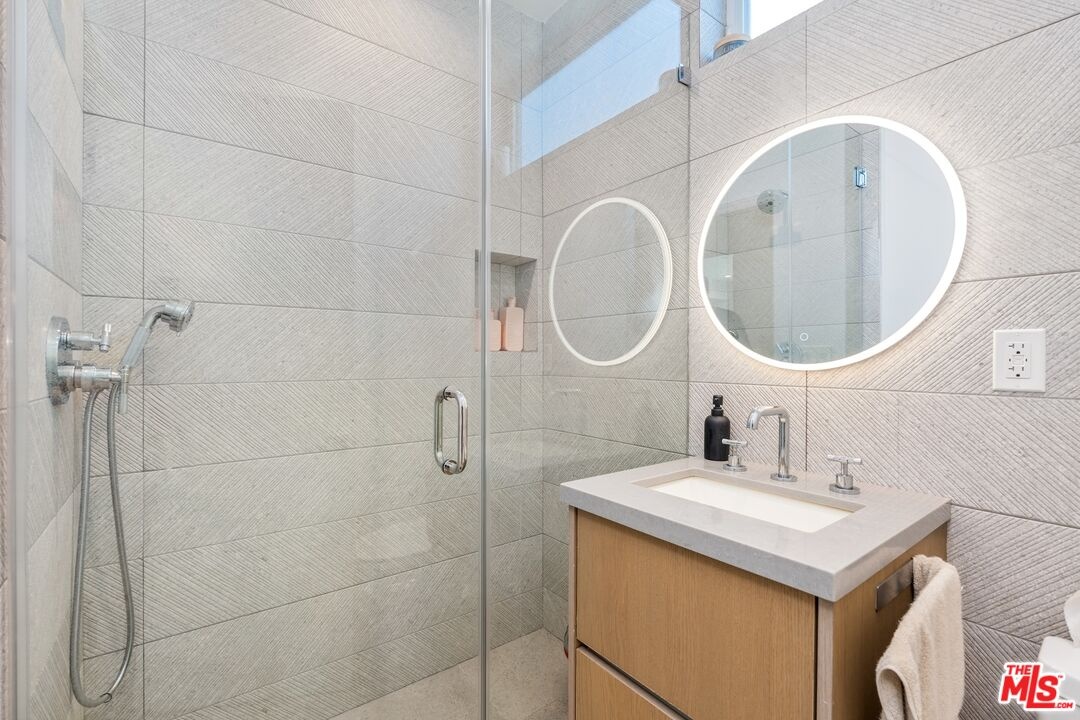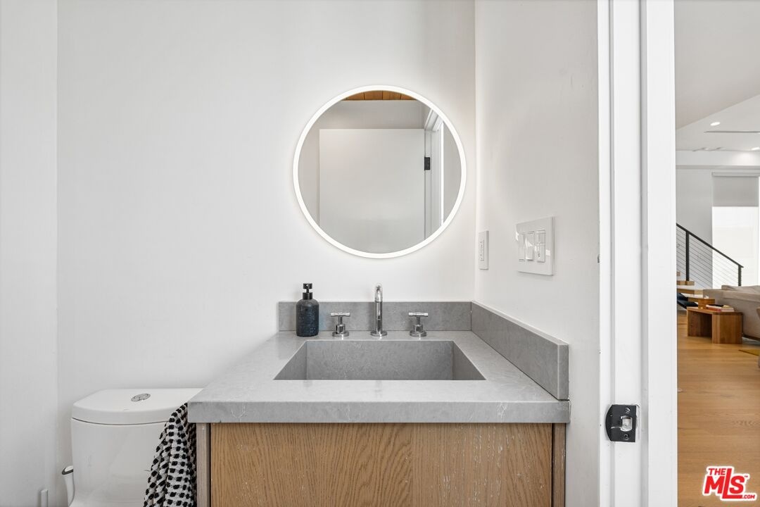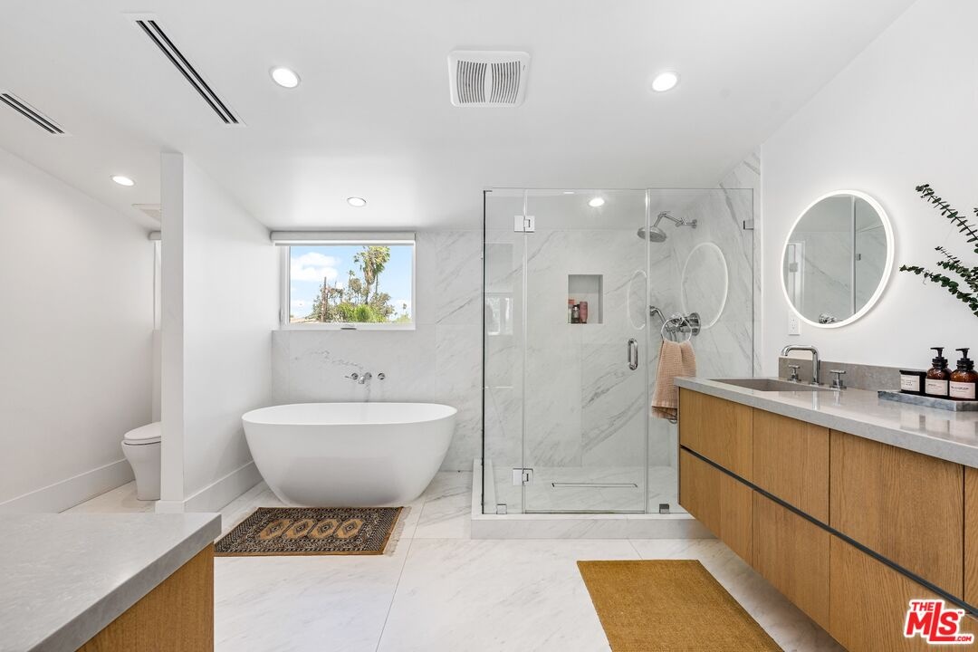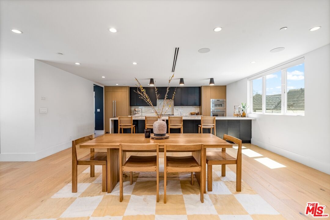 Stunning 2021 custom built Robert Thibodeau architectural home with 3 stories, 4 bedrooms, 3.5 baths + den + roof top deck steps to world class restaurants & shops. Spacious living room with vaulted ceilings, electric fireplace enlarge, sliding glass doors that walk out to a lovely balcony. Gourmet Italian kitchen, boasting, quartz countertops, Center, Island, counter, and all stainless steel appliances. The floor plan on each level is large with open spaces. The primary bedroom has a walk-in closet plus en suite spa primary bath with dual vanity, soaking tub and oversized shower. Direct access to the roof rooftop deck, which is perfect for entertaining and glorious summer nights. Three bedrooms plus the den share their own level with a beautiful outdoor patio. There is a private two car garage plus inside laundry. Centrally located and easy to get to all of what Venice and the west side have to offer.