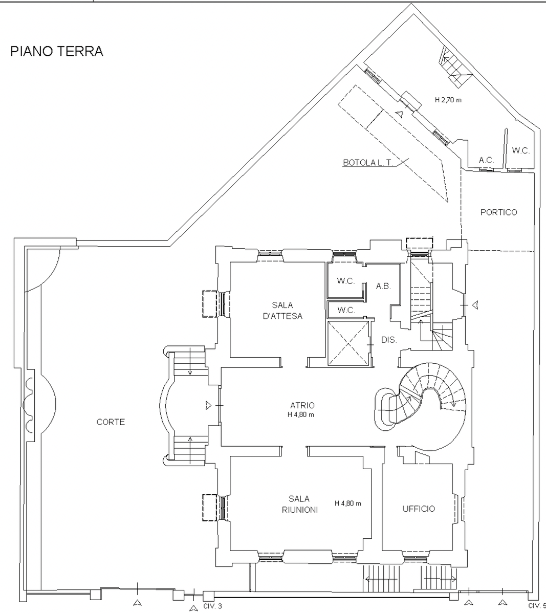 Built in 1920, the building is rated energy class G and features independent methane heating with radiators, as well as an autonomous hot/cold air conditioning system.