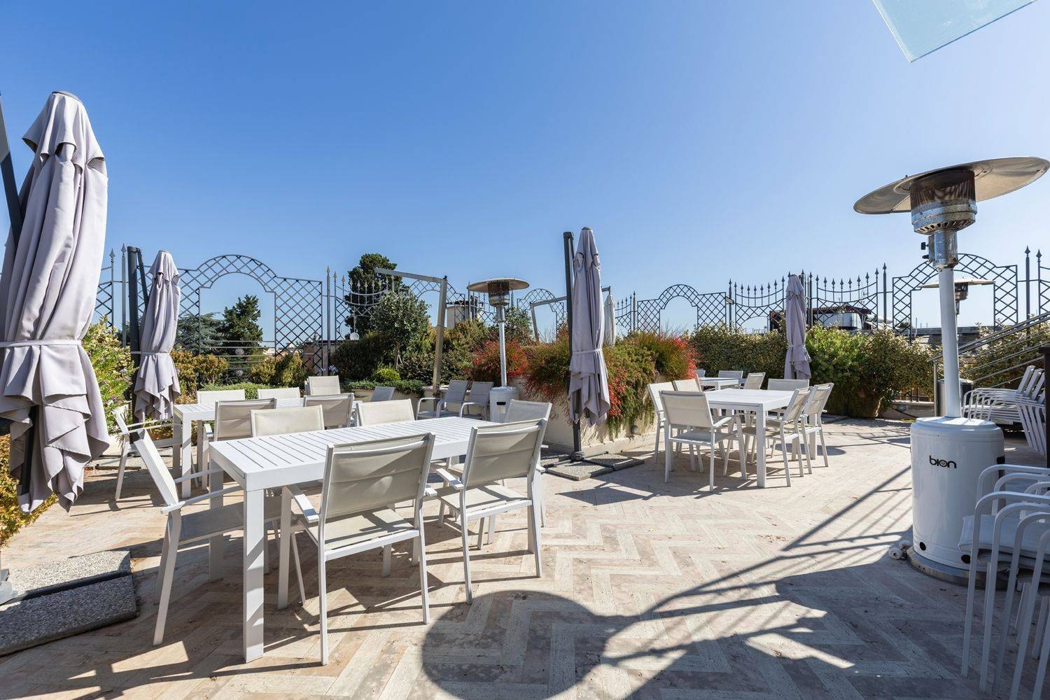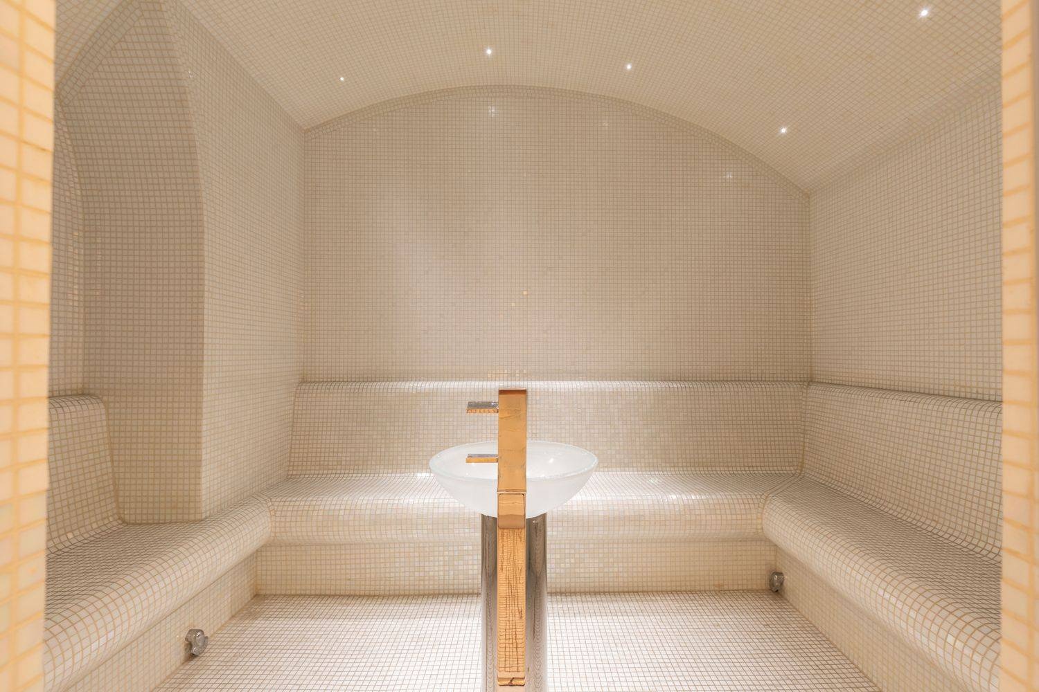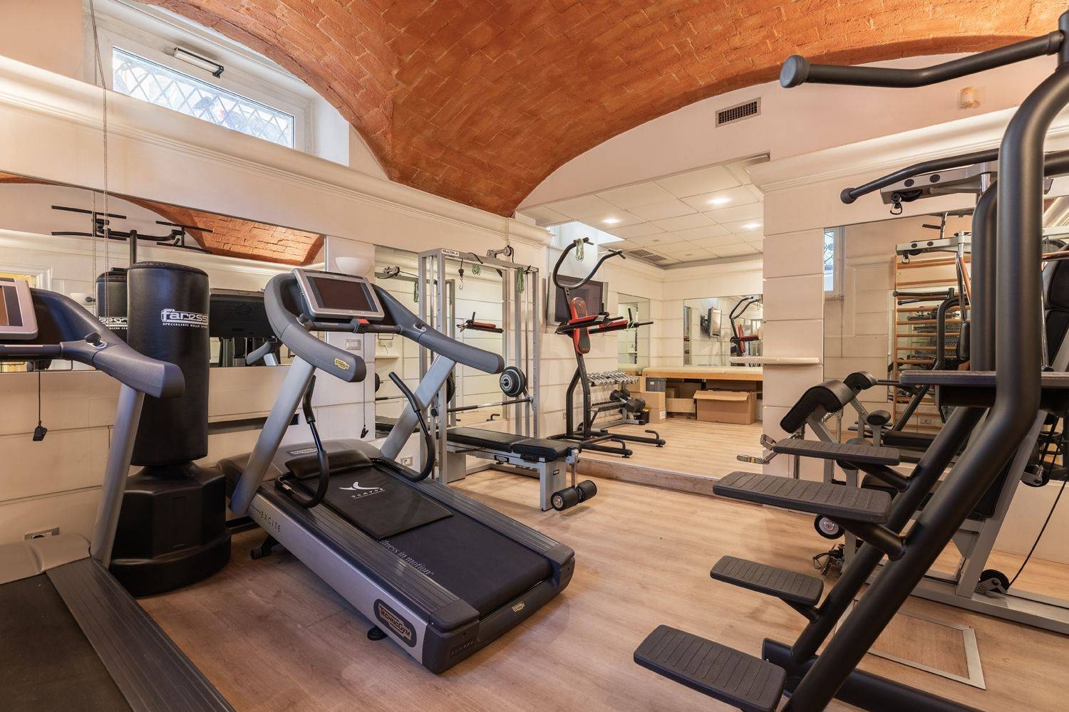 The basement level is dedicated to service and support functions, including additional operational spaces and a sophisticated wellness area with a fully equipped gym and Turkish bath, designed to seamlessly integrate work and well-being. The property is further complemented by an independent 50 sqm guesthouse, currently used as a caretaker’s residence.