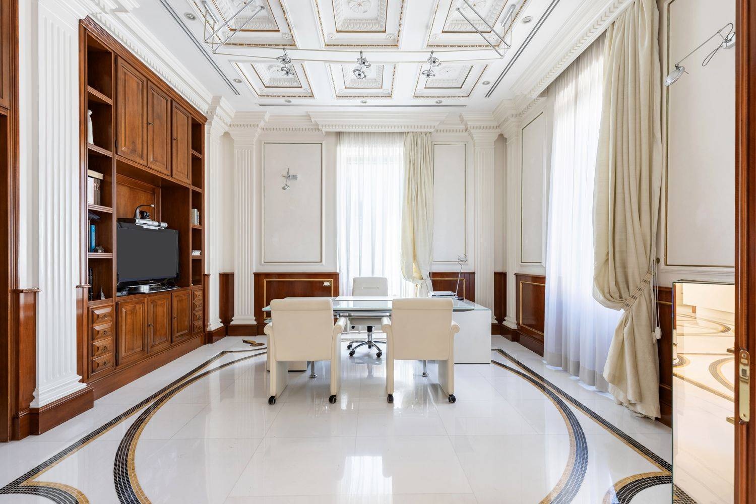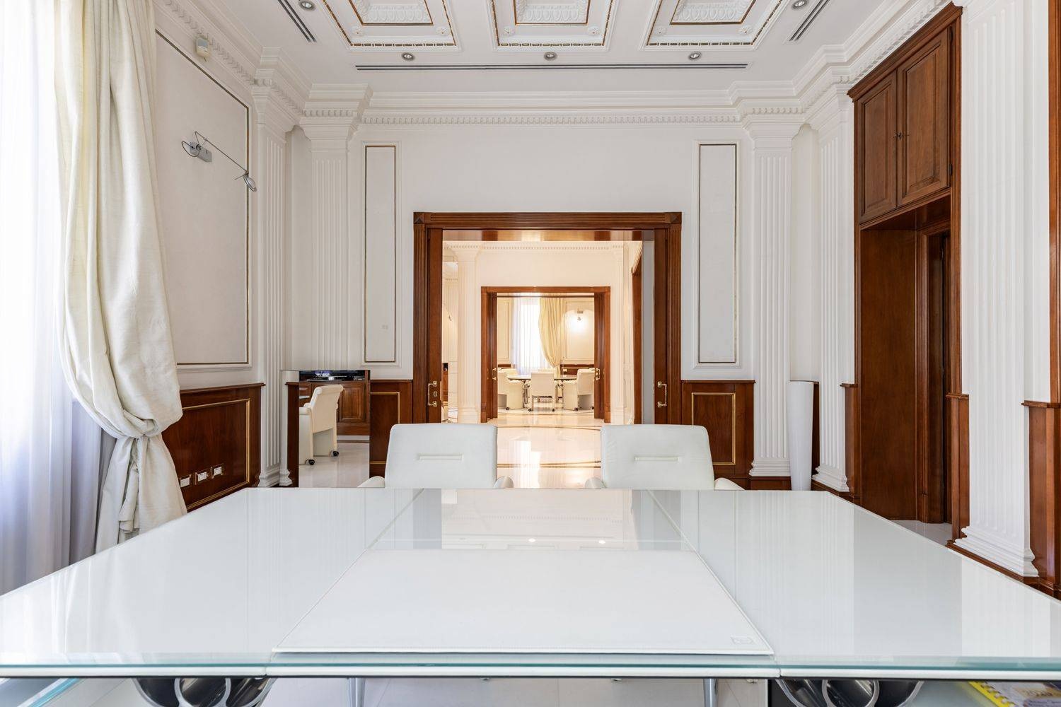 The interiors reflect an outstanding level of design research, with premium materials, marble flooring, glass elements, and bespoke furnishings that create a refined and highly representative environment. The strategic location, close to Policlinico Umberto I, La Sapienza University, and the Ministry of Economy and Finance, combined with quick access to the Tangenziale Est and the historic center, makes this property an ideal solution for institutional headquarters, corporate offices, and prestigious professional practices.
