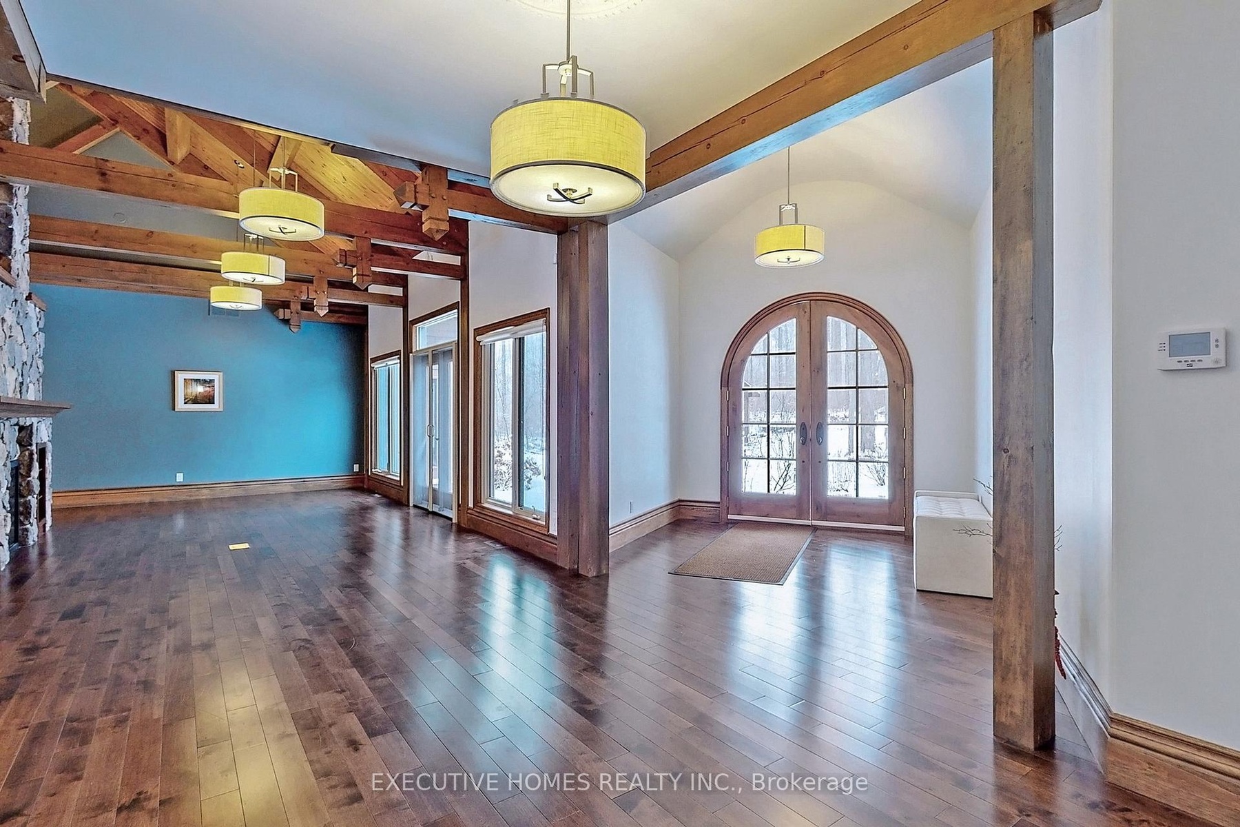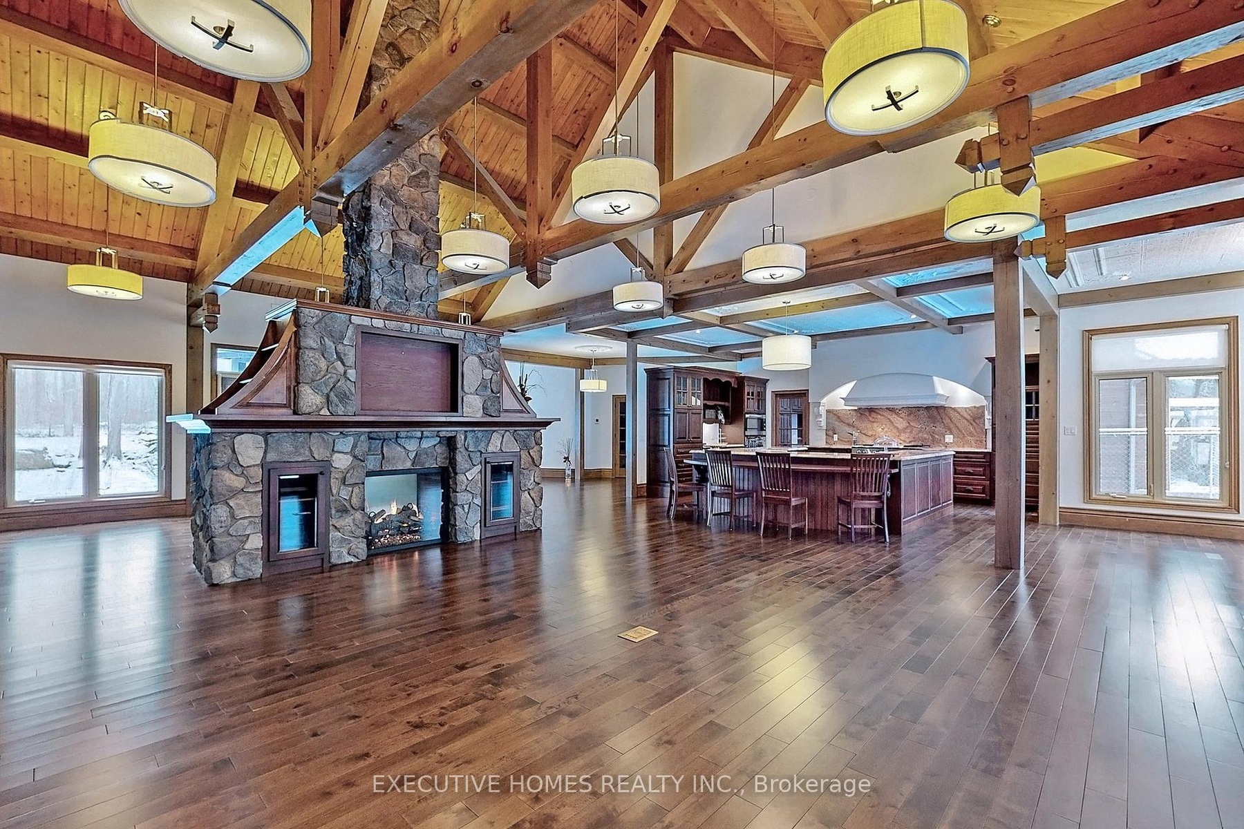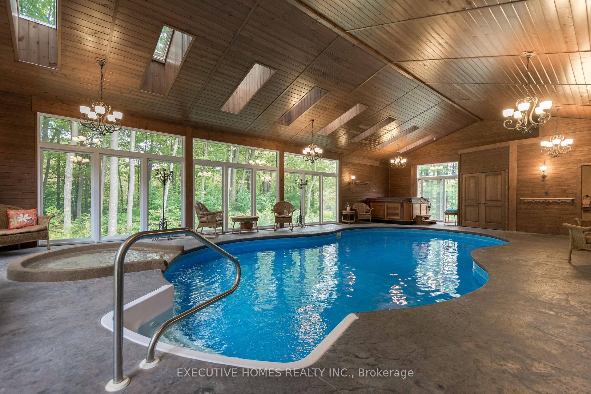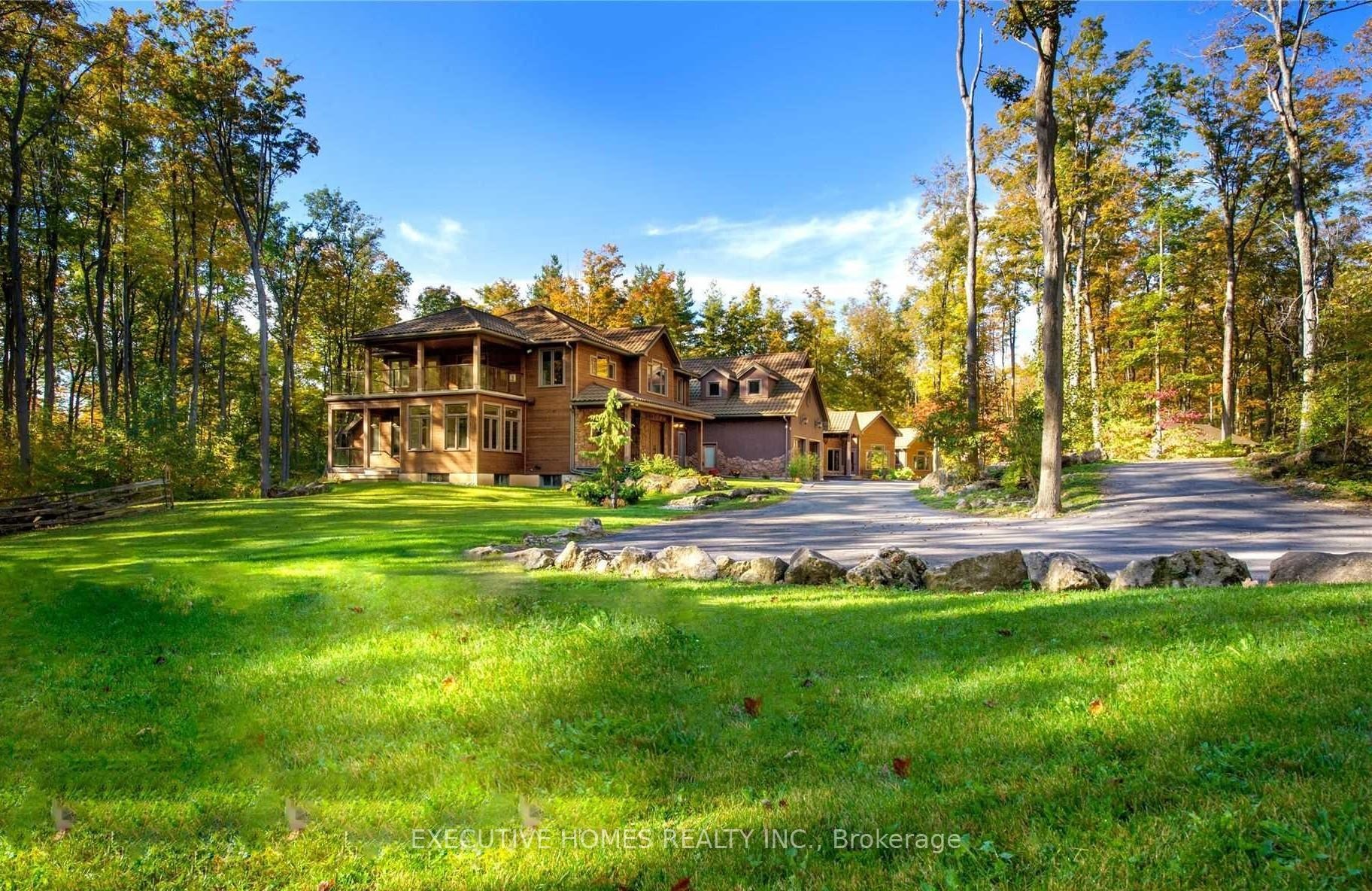 Welcome to 7651 Milburough Line, an exceptional private estate set on 42 acres of picturesque countryside in Milton, complete with a spring-fed pond and 30 acres of mature sugar maple forest. A long, tree-lined private drive leads to this remarkable custom-built residence offering approximately 19,470 sq ft of total living space (15,696 sq ft finished). Designed for grand living and entertaining, the home features 11 bedrooms and 11 bathrooms, ideal for multi-generational families or luxury retreats. Inside, timeless elegance is expressed through soaring 22-ft vaulted ceilings, coffered details, handcrafted plaster mouldings, and rich solid wood finishes throughout. Two gourmet kitchens, outfitted with professional-grade appliances, provide exceptional versatility for hosting on any scale. The main floor primary suite is a true sanctuary, highlighted by a spa-inspired ensuite with chromatherapy tub, heated backrests, warming drawer, and heated towel rack. Multiple principal rooms are anchored by five gas fireplaces and a striking wood-burning fireplace, offering warmth and sophistication. Resort-style amenities elevate the experience, including a stunning indoor heated pool with hot tub and children's wading area, along with a dedicated wellness wing featuring a home gym and spa with dual saunas. The finished lower level with walkouts adds flexible space for recreation or extended family living.Outdoors, enjoy multiple patios, screened porches, and a Muskoka-style room with a double-sided fireplace, all surrounded by serene natural beauty. Built with exceptional quality, the home includes geothermal heating, in-floor radiant systems, 400-amp service, metal roofing, and advanced water purification. Renovated in 2015, this rare offering blends luxury, privacy, and convenience just minutes from major routes.