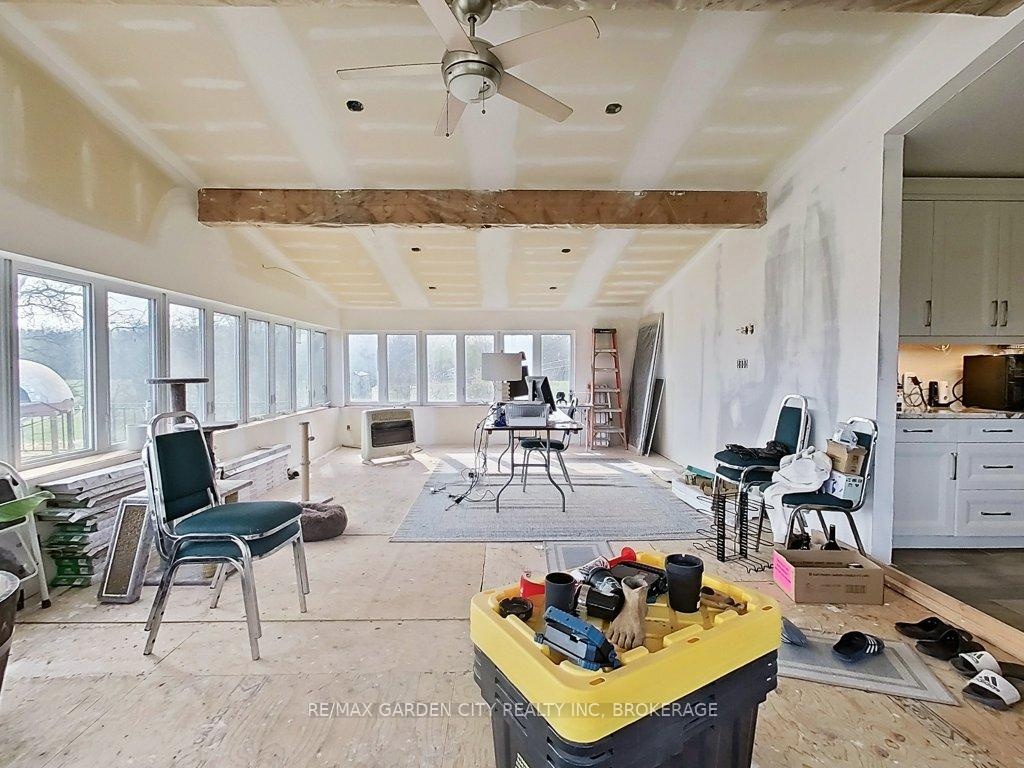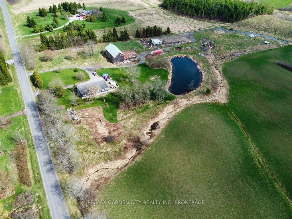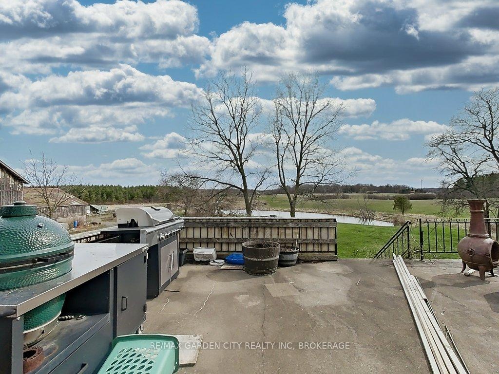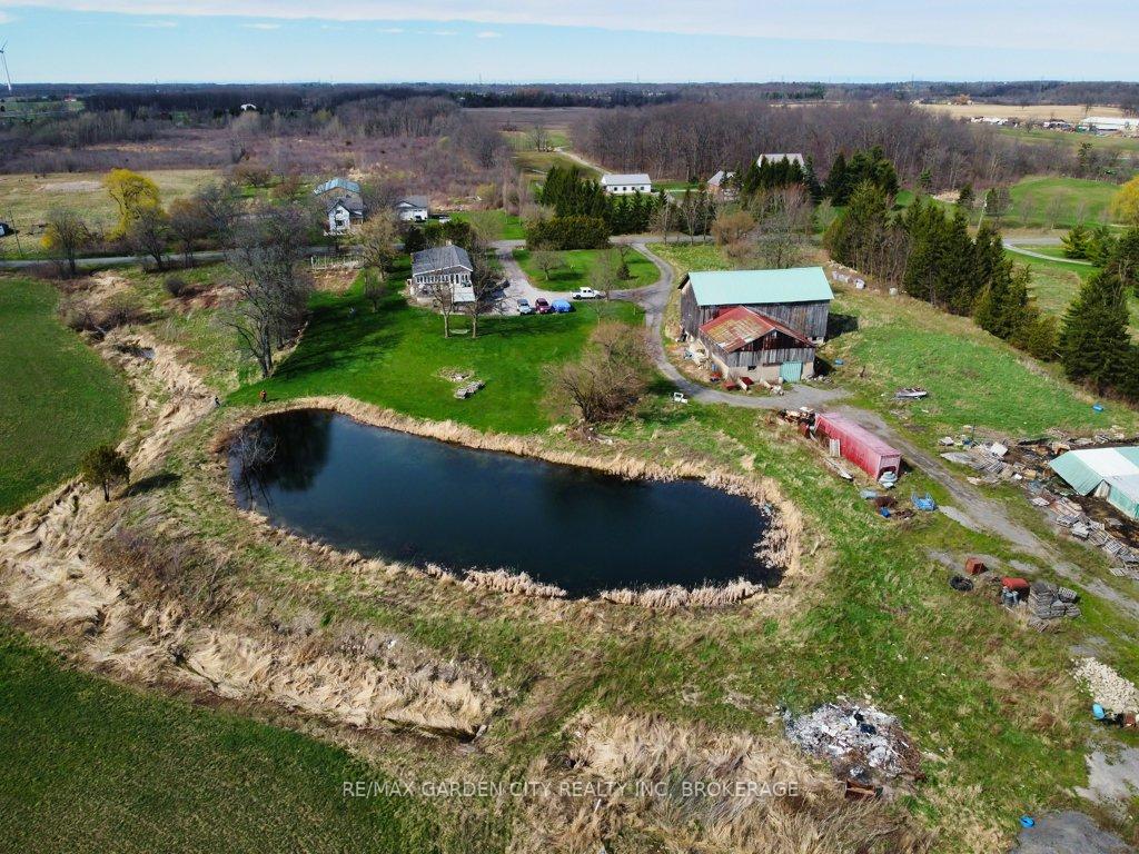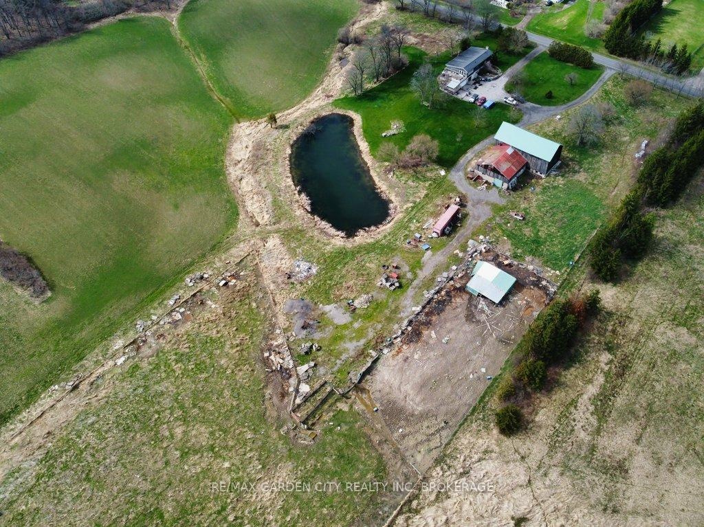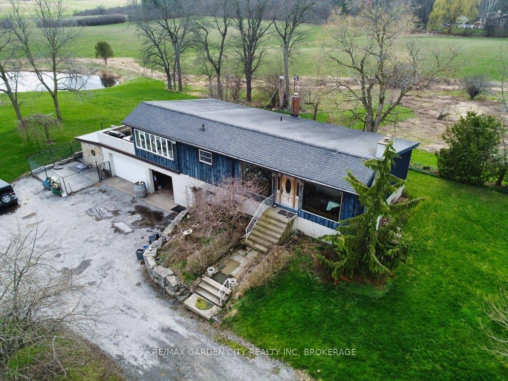 Over 23 Acres of private country living, yet only minutes to all amenities and the QEW. Picturesque property with rolling fields, tree lines and pond. Suitable for many agricultural uses. Older 2 storey board and batten barn with hand-hewn beams in need of some TLC for those wedding venues. Circular drive with a solid open concept bungalow built in the 60's. Attached double car garage addition with full walkout basement, rec room, 2pc bath, wine cellar, mudroom with sink and counter. Two bedrooms on the main floor, the master with 4pc ensuite privileges. Open concept living and dining area with maple hardwood flooring, Freshly renovated kitchen with granite counters and island, built ins, vaulted ceiling with pot lights, open to a massive family room, bright windows throughout, patio doors to a private backyard patio overlooking your pond and property. This one of a kind property could be an unbelievable homestead with some imagination and TLC.