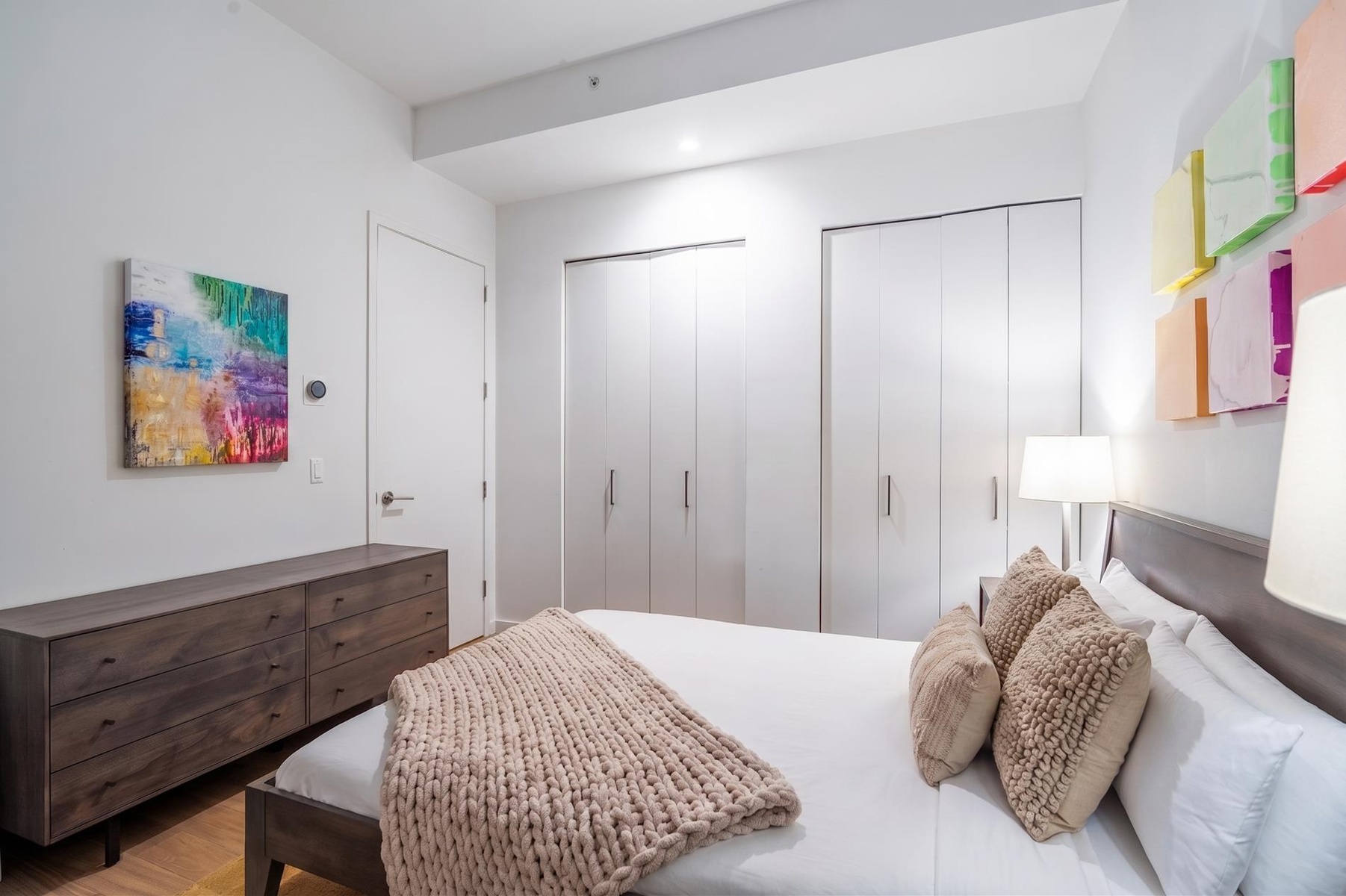 The king-sized bedroom offers a peaceful and relaxing space, complete with two spacious closets. The marble bathroom features a deep soaking tub, adding the perfect touch to make this residence a perfect home.