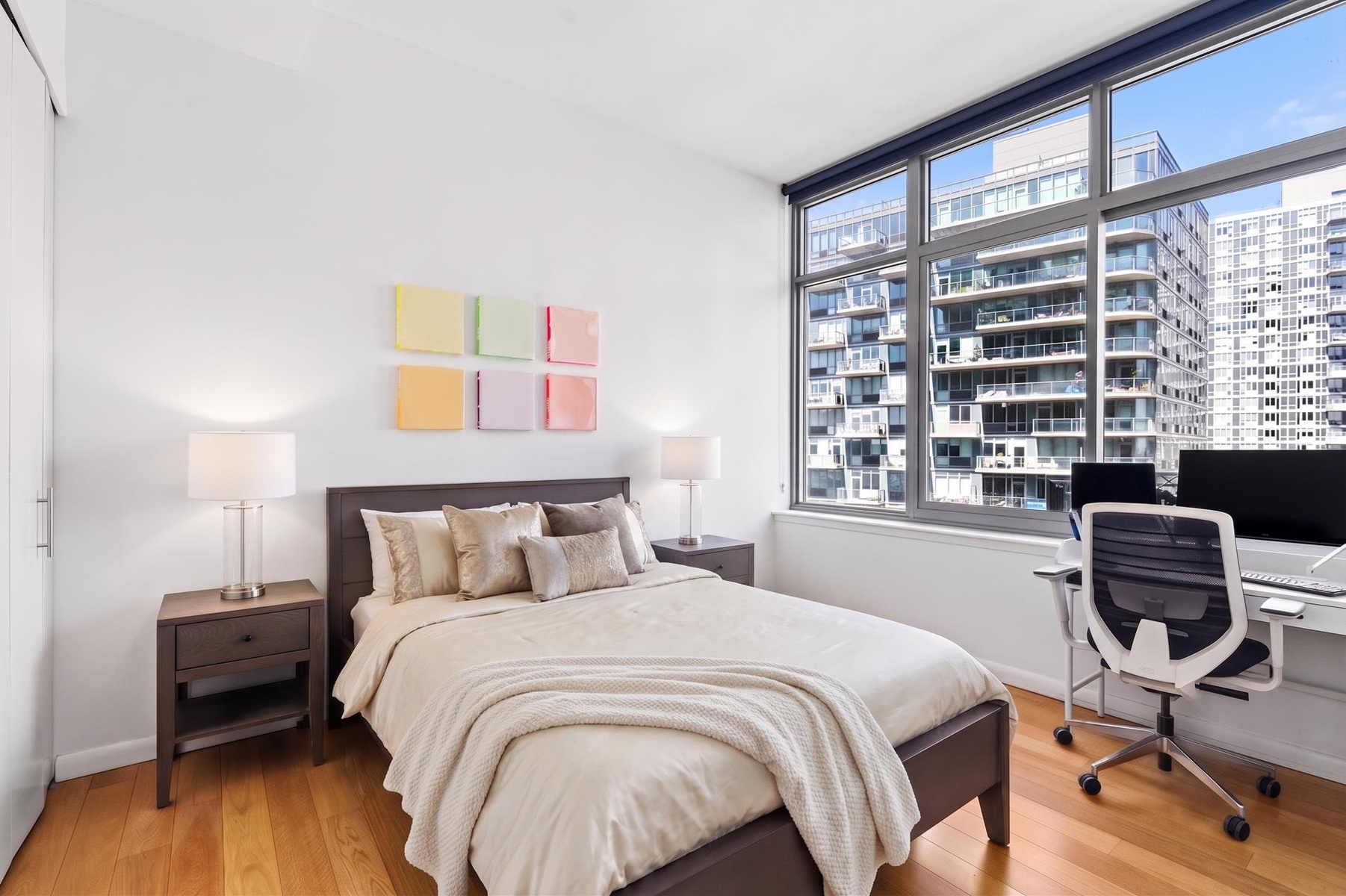 Enjoy upscale waterfront living in this beautiful one-bedroom at The View Condominium. Spanning approximately 777 sq ft with a 10'5" ceiling, it includes a private balcony with stunning views of the East River, Manhattan skyline, and the iconic Pepsi-Cola sign.