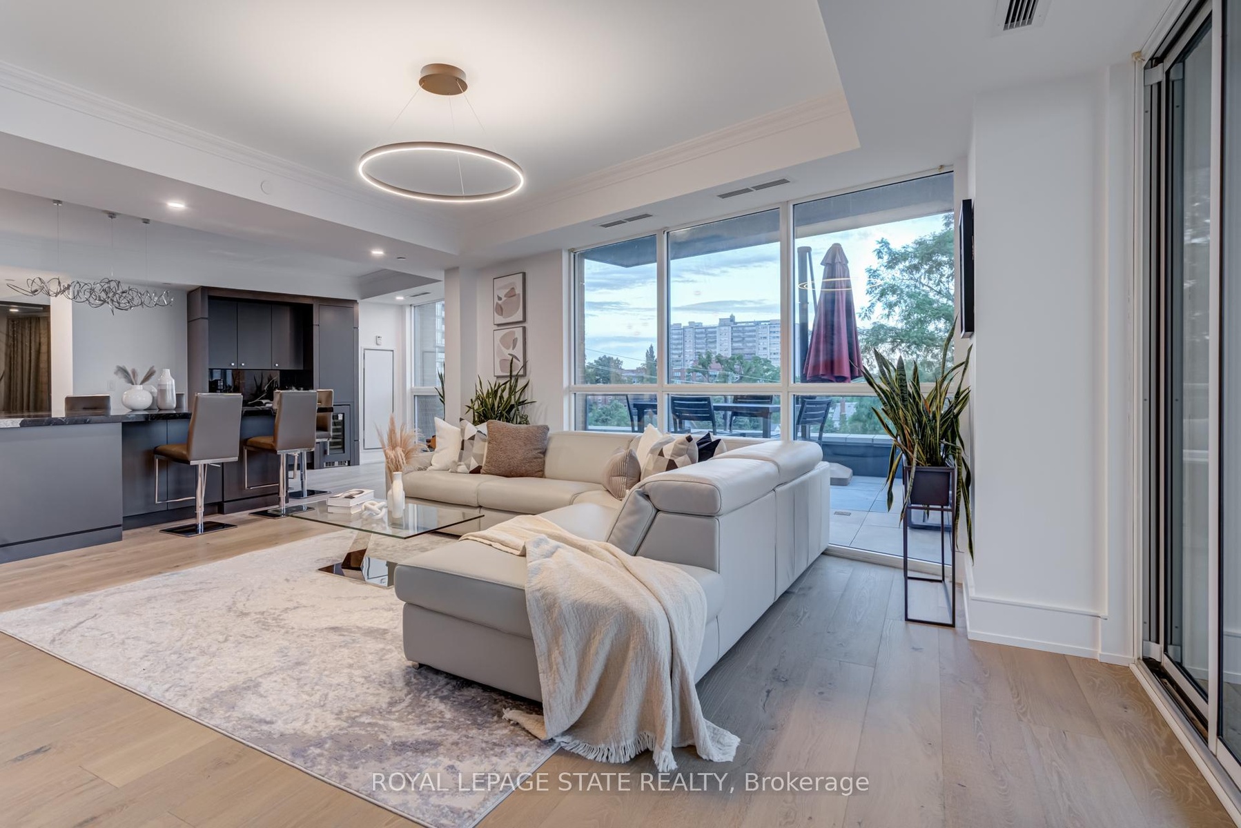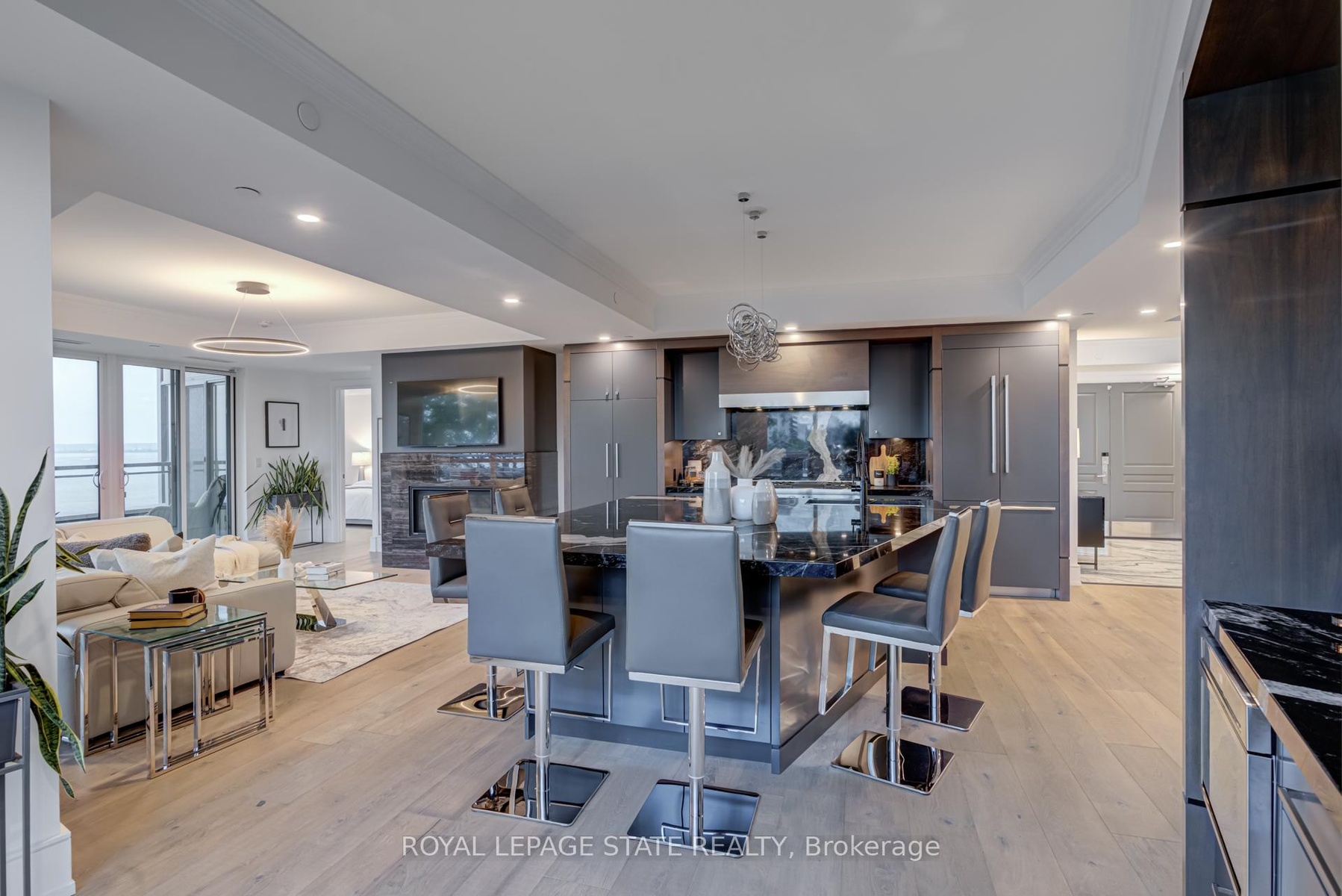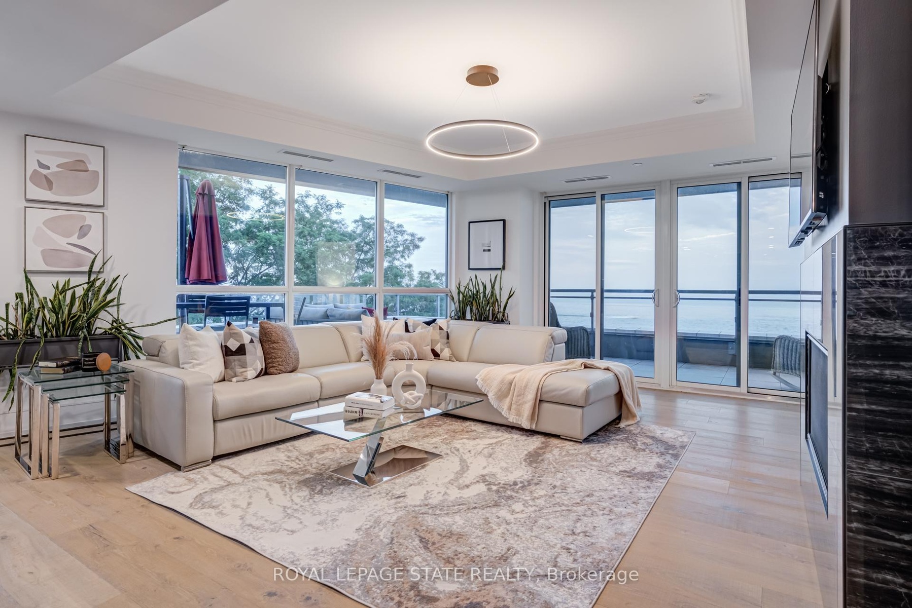 Luxury Waterfront Living in the Heart of Downtown Burlington at the prestigious Bridgewater Residences - where timeless elegance meets lakeside tranquility. Spanning 2,200 square feet of refined living space, plus an expansive 725+ square foot private wrap-around terrace, this southeast-facing corner suite offers breathtaking, unobstructed views of Lake Ontario. Designed with meticulous attention to detail, this 2- bedroom plus den, 3-bathroom residence is rich with luxury upgrades and sophisticated design elements. Soaring floor-to-ceiling windows flood the space with natural light, while the open-concept layout features a gas fireplace and a spectacular gourmet kitchen equipped with premium Thermador appliances, a generous granite island, and custom cabinetry - ideal for both everyday living and entertaining. The hotel-inspired primary suite is a true retreat, complete with terrace access, panoramic lake views, a spacious walk-in closet, and a spa-like ensuite featuring an oversized glass shower and elegant finishes. A second bedroom with ensuite and a separate den/home office (easily adaptable as a third bedroom) ensure flexibility and privacy for guests or family. A dedicated laundry room and a stylish powder room round out the suite's thoughtful layout. Step outside to your private terrace and take in the serenity of waterfront living - the perfect backdrop for morning coffee, summer dining, or evening relaxation. As a Bridgewater resident, enjoy access to resort-style amenities, including a rooftop terrace, party lounge, fitness centre, piano room, and VIP privileges at The Pearle Hotel & Spa, featuring a second gym and a luxurious indoor pool. This rare offering also includes two premium accessible parking spaces next to the elevator, as well as a private storage locker. Experience the best of Downtown Burlington - just steps to the Waterfront Trail, Spencer Smith Park, the Pier, and a vibrant mix of boutique shopping, fine dining, and cultural attractions.