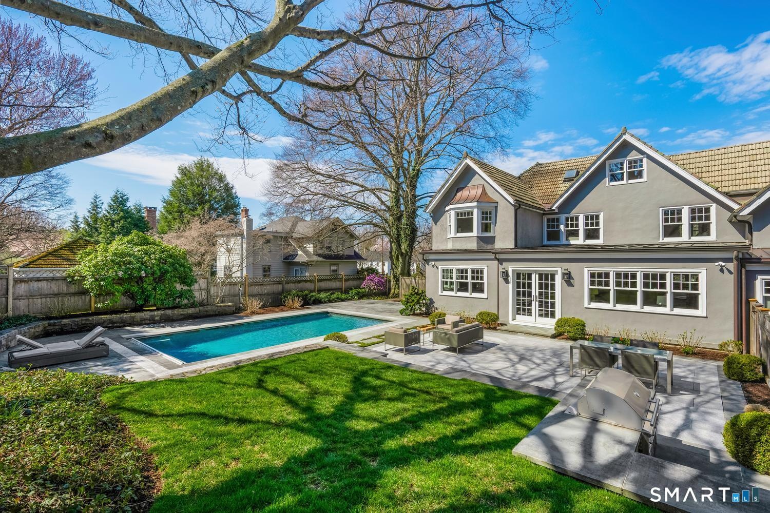 Masterfully renovated and expanded by renowned architect Chad Nehring, this 1929 Colonial features a chef's kitchen boasting a centerpiece 10' island, heated gunite pool, and seamless indoor outdoor living.