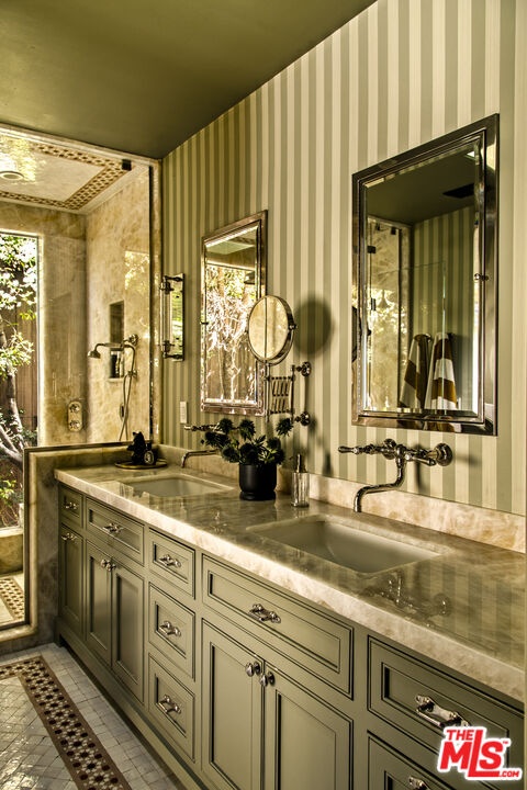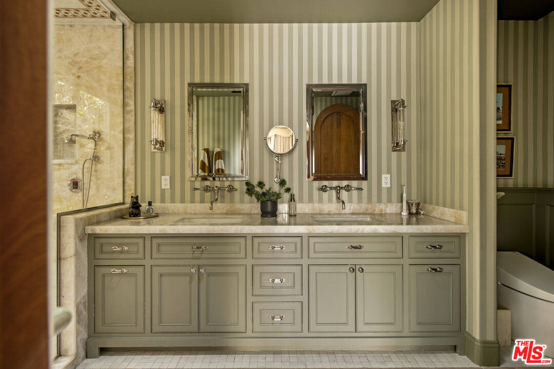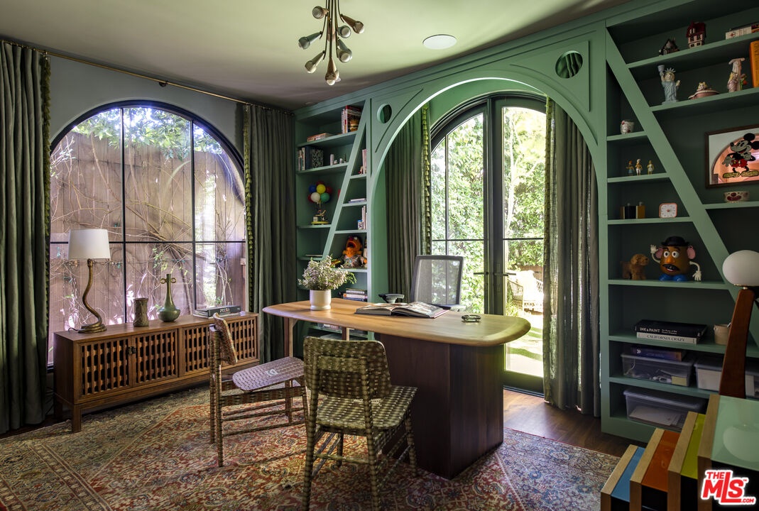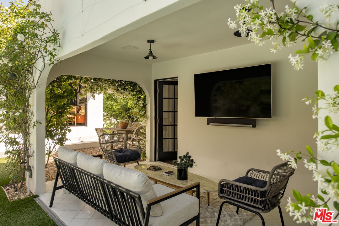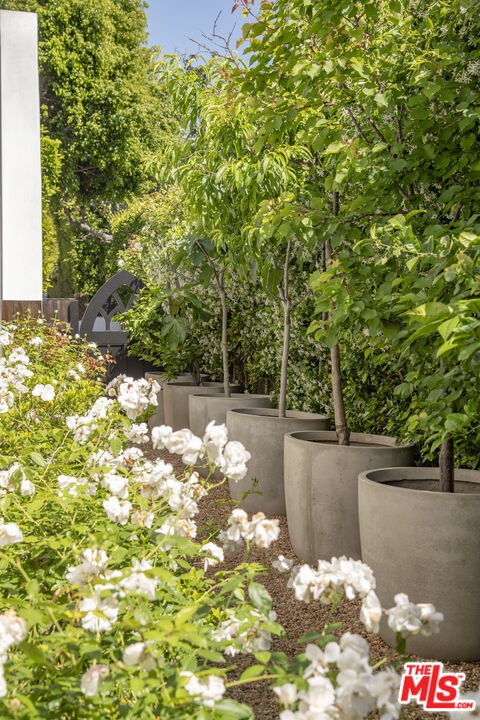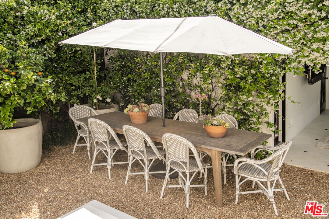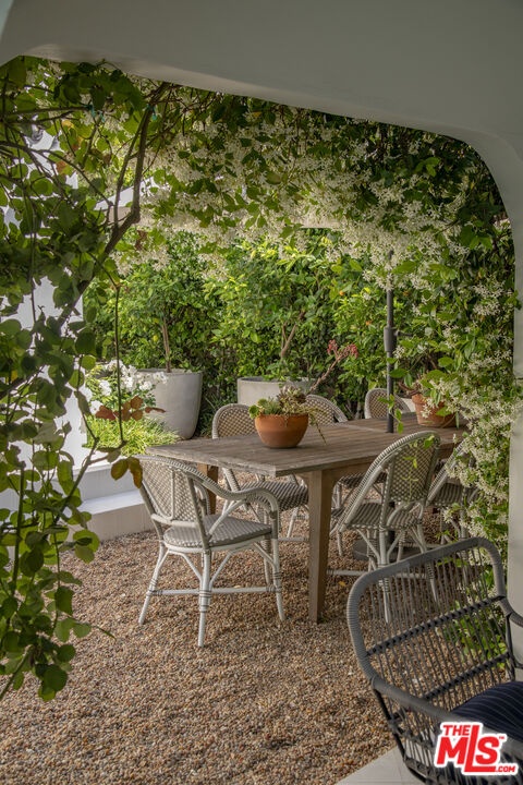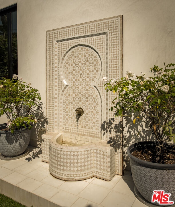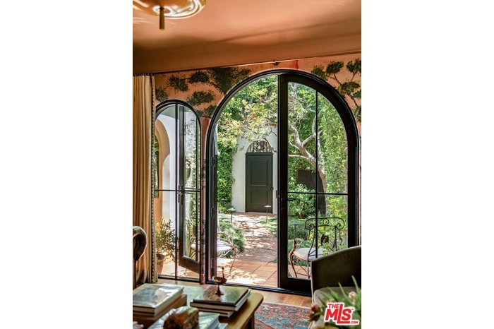 Chic designer Spanish in the heart of Melrose Village's most coveted pocket. Fully gated and completely private, this reimagined residence blends timeless architecture with a distinct, editorial sensibility by AD100 interior designers Pierce & Ward. The main house offers 3 bedrooms and 3 baths, where coved ceilings, arched forms, and French doors create a seamless indoor-outdoor flow anchored by rich hardwood floors. The kitchen pairs vintage charm with modern performance, featuring an iconic O'Keefe & Merritt range, Sub-Zero refrigeration, Wolf built-in microwave, and Asko dishwasher, all complemented by a custom bar designed for effortless entertaining. Original details remain thoughtfully preserved, including a Batchelder fireplace, while elevated finishes such as heated floors, a steam shower with triple heads, and a Toto Japanese toilet bring a refined edge to the primary suite. Step outside to a west-facing garden retreat wrapped in fragrant jasmine, with a fountain, dining pavilion, and a striking pool that feels both serene and cinematic. A fully permitted guest house with 1 bedroom, 1 bath, and flexible office or gym space adds versatility. Collected, character-driven detailsMoroccan-imported closet doors and a bath featuring a pink sink and toilet sourced from the Dorothy Chandler estate alongside a lilac bathtub underscore the home's one-of-a-kind personality. A rare offering where design, privacy, and location converge this is Melrose Village living at its most compelling. OFFERS ARE DUE ON THURSDAY, APRIL 23RD AT 12PM.