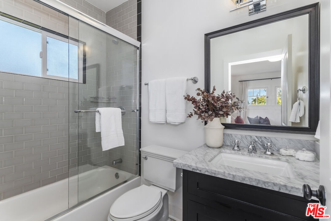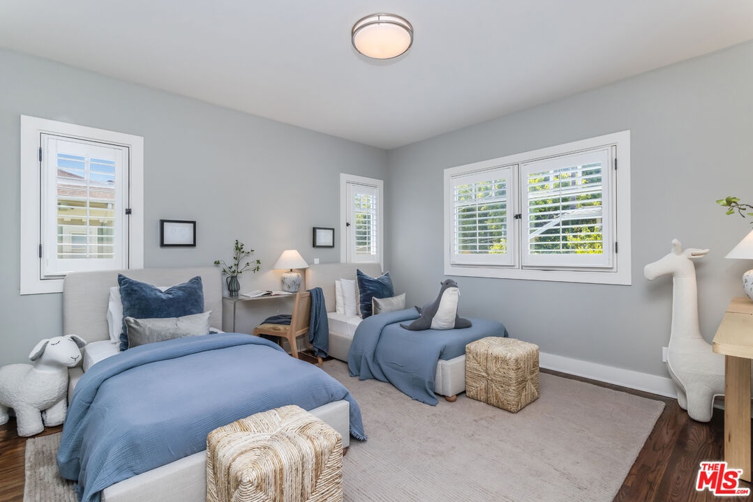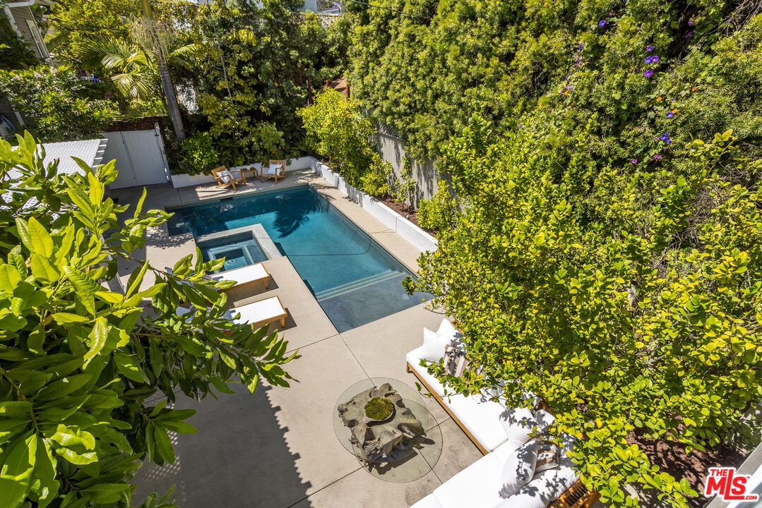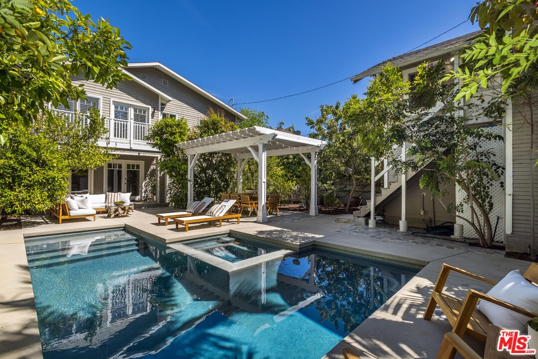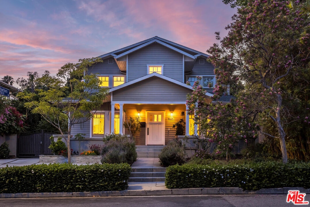 Set in the heart of historic Sunset Square, this extensively renovated Craftsman-inspired residence offers 3,331 sq ft of thoughtfully designed living on an expansive 7,561 sq ft lot. Timeless architectural character meets modern luxury in this rare 5 BD, 5 BA home in one of Hollywood's most coveted neighborhoods. A welcoming front porch opens to a two-story foyer, leading to a formal living room, dining room, and dedicated office, all anchored by high ceilings, rich hardwood floors, and classic detailing. The beautifully updated kitchen, featuring marble countertops, custom cabinetry, pantry and Viking appliances, flows into a generous family room, with French doors opening to the lush backyard for seamless indoor/outdoor living. Upstairs, the primary suite enjoys a private balcony, walk-in closet, and bath with soaking tub and shower. Three additional en-suite bedrooms complete the top level. A detached two-story converted garage adds exceptional versatility with a bonus recreation room and a separate studio apartment with kitchenette above. The private backyard is an entertainer's dream with a covered veranda, sparkling pool and spa, and a curated culinary garden with mature citrus, avocado, blueberries, and fresh herbs that brings farm-to-table living to your doorstep. Ideally located minutes from premier dining, boutique shopping, and scenic hiking trails .