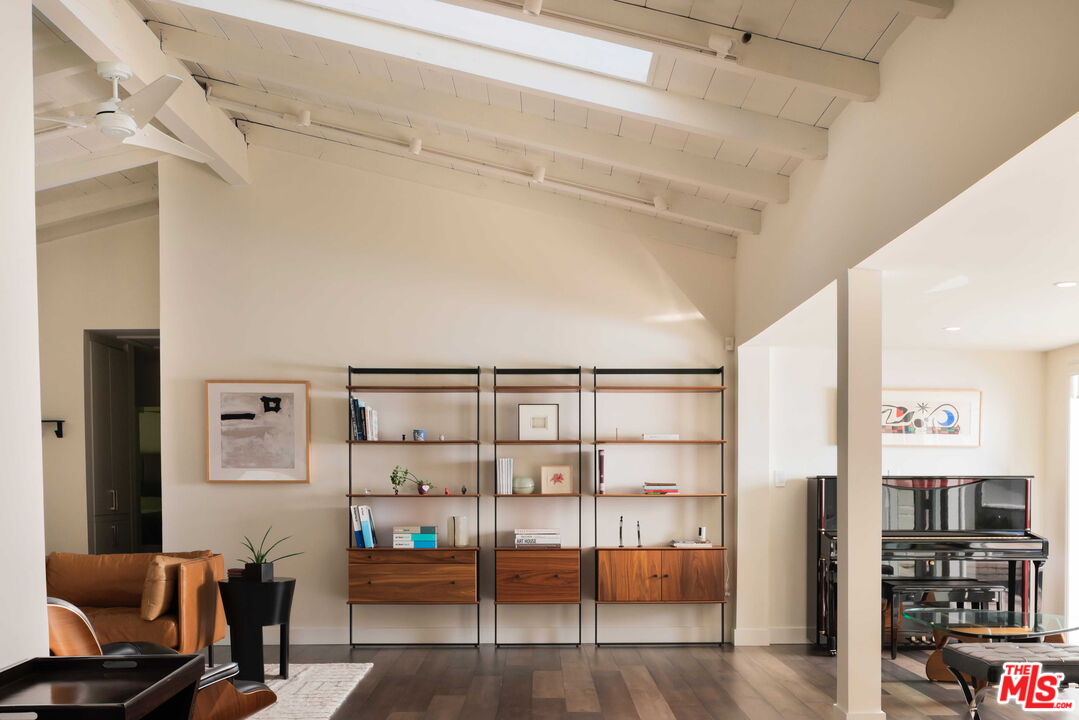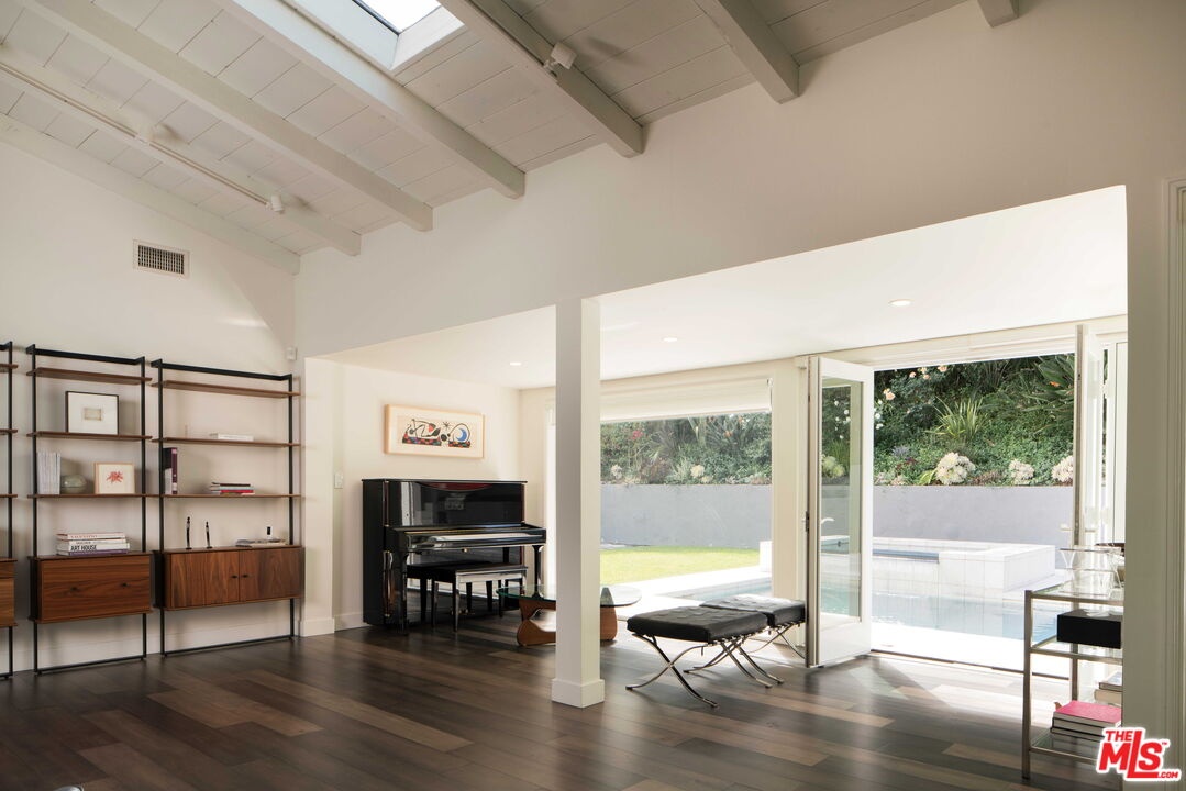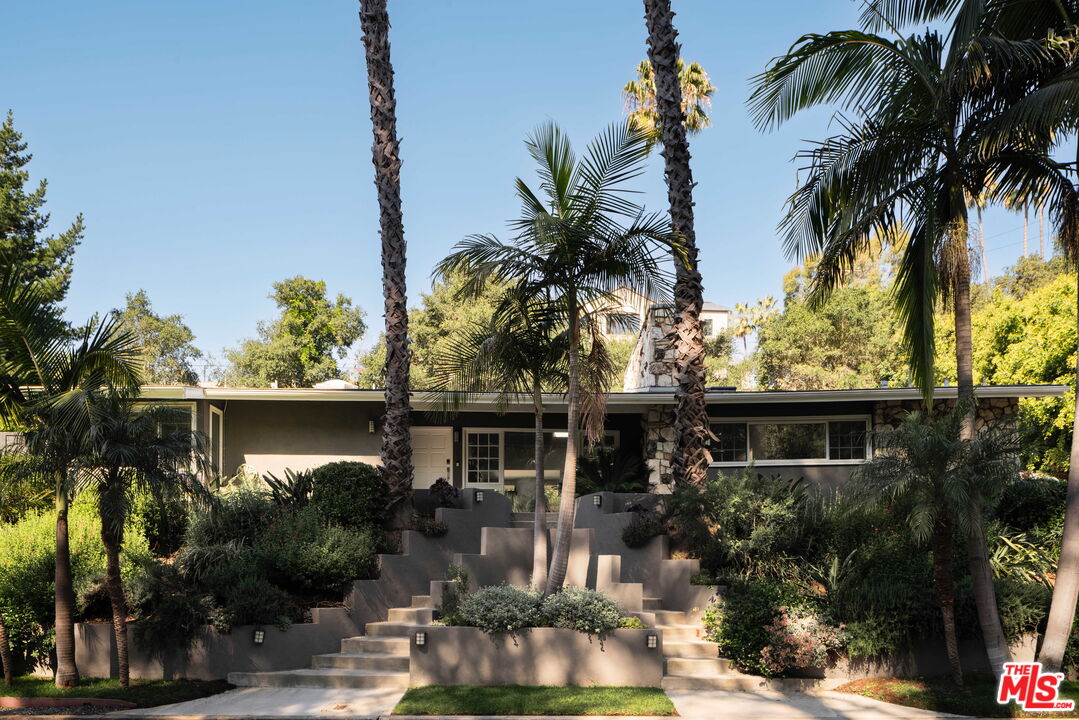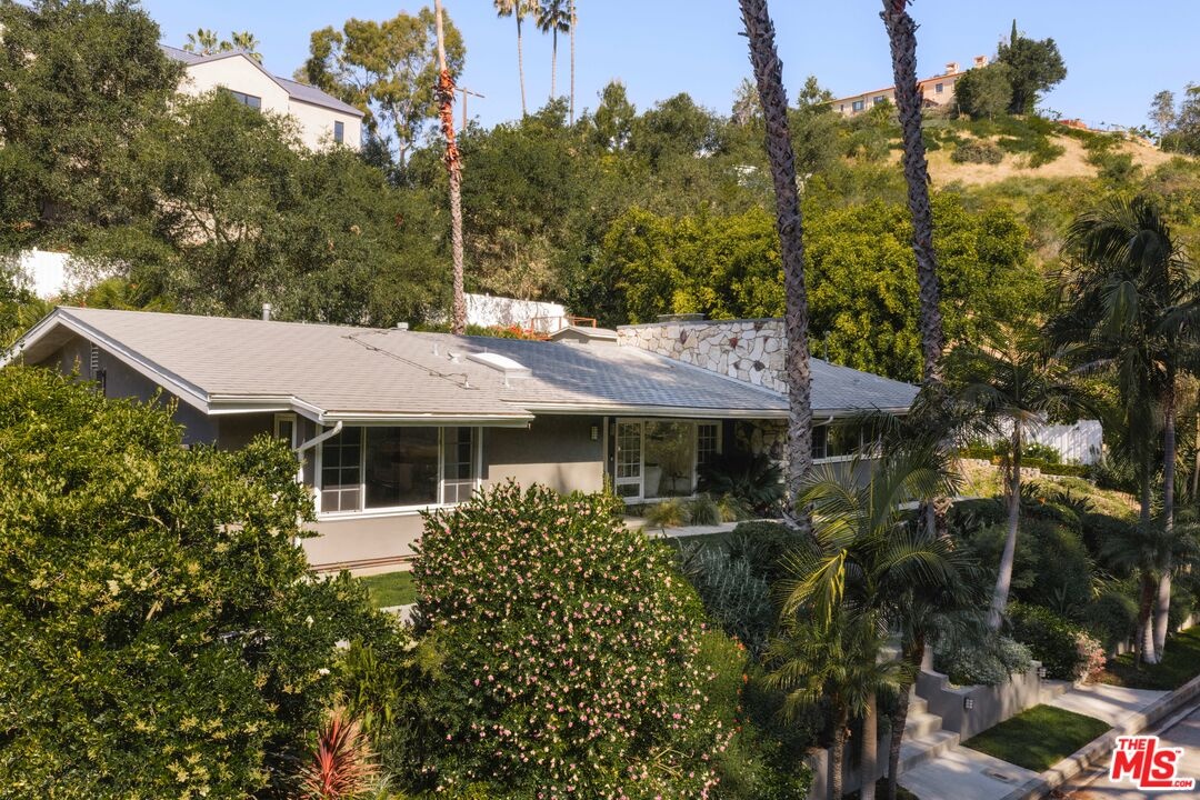 Thoughtfully reimagined Post and Beam in the coveted hills of upper Bel Air offering 3 bedrooms and 3 baths with soaring ceilings, skylights, and abundant natural light. The open floor plan unfolds from one space to the next, creating a seamless indoor-outdoor flow designed for both everyday living and effortless entertaining. The living room is anchored by a redesigned gas fireplace and opens through French doors to a private outdoor setting featuring a resurfaced saltwater pool and spa, drought-tolerant landscaping, and multiple areas for lounging and dining, allowing the home to transition easily between interior comfort and outdoor living. The kitchen is both beautifully finished and highly functional, appointed with custom cabinetry, quartz countertops and backsplash, and a premium suite of appliances including Wolf, Sub-Zero, induction cooktop, and steam oven, all connecting to the main living and dining areas. The primary suite offers a quiet and refined retreat with updated finishes including a new countertop, mirror, sconces, and towel warmer, while two additional bedrooms are well-proportioned and thoughtfully positioned with a jack and jill bathroom. A detached air-conditioned structure provides flexibility as an office, studio, or creative space, complemented by a two-car garage with air conditioning and built-in storage suitable for gym or flex use. Recent upgrades include new HVAC and ductwork, water softener, tankless water heater, upgraded electrical, backup generator, new gutters, and new pedestrian side gates. Smart home features include lighting, motorized blinds, pool and spa controls, irrigation with rain sensors, and security cameras, all accessible remotely. Additional features include EV charger and fruit trees including apple, fig, lemon, and lime with passion fruit vines. Located within the Roscomare Road Elementary School district and just moments from Bel Air amenities.