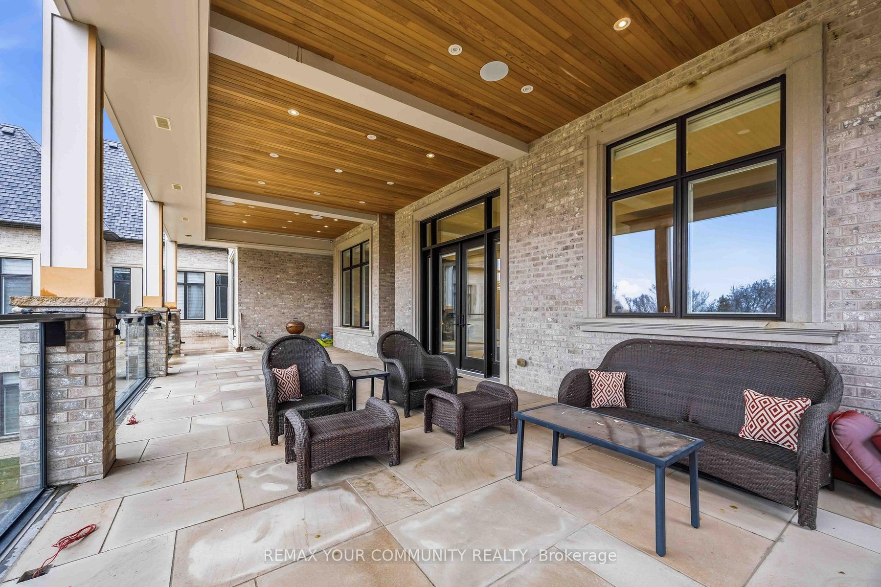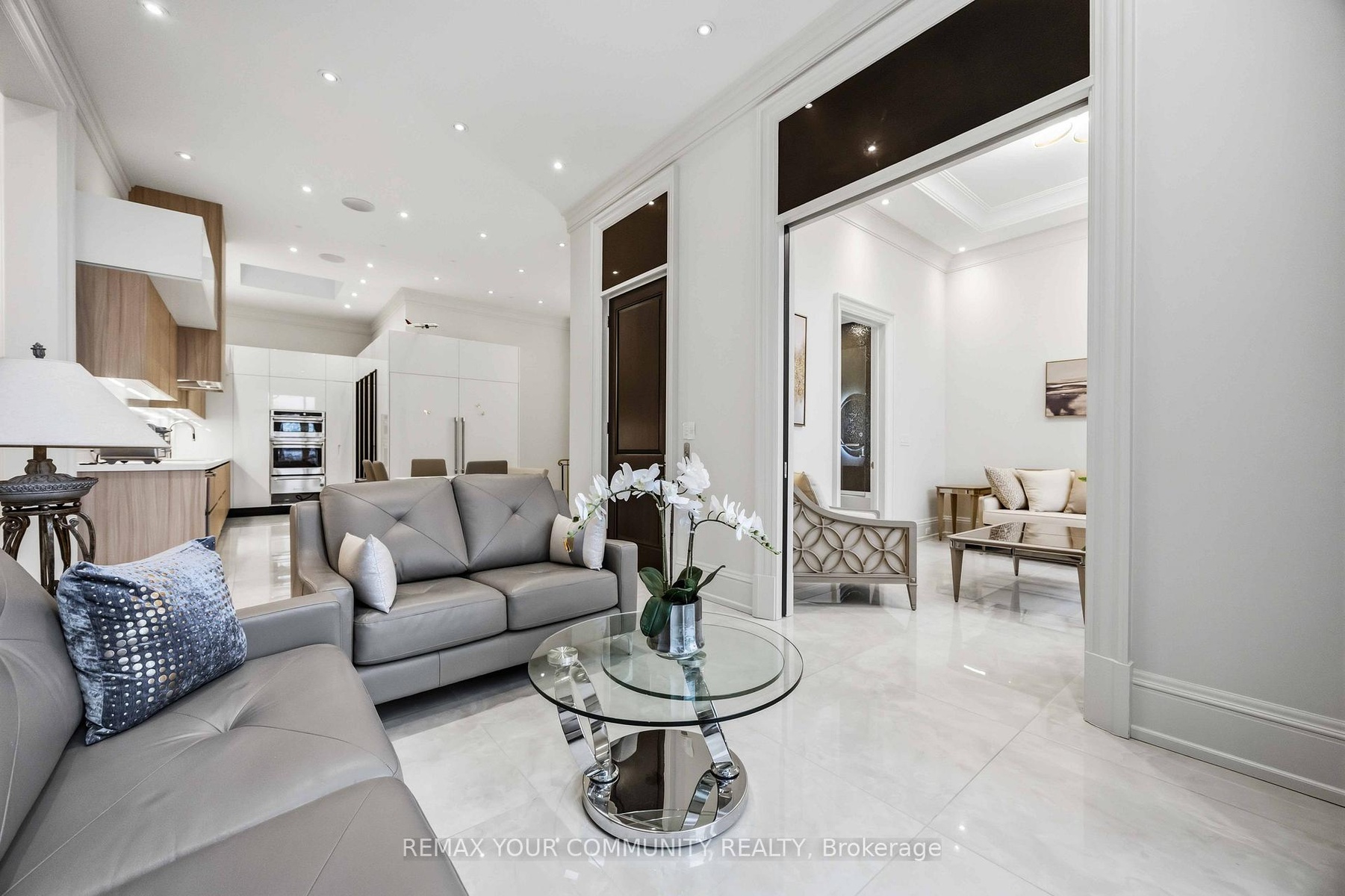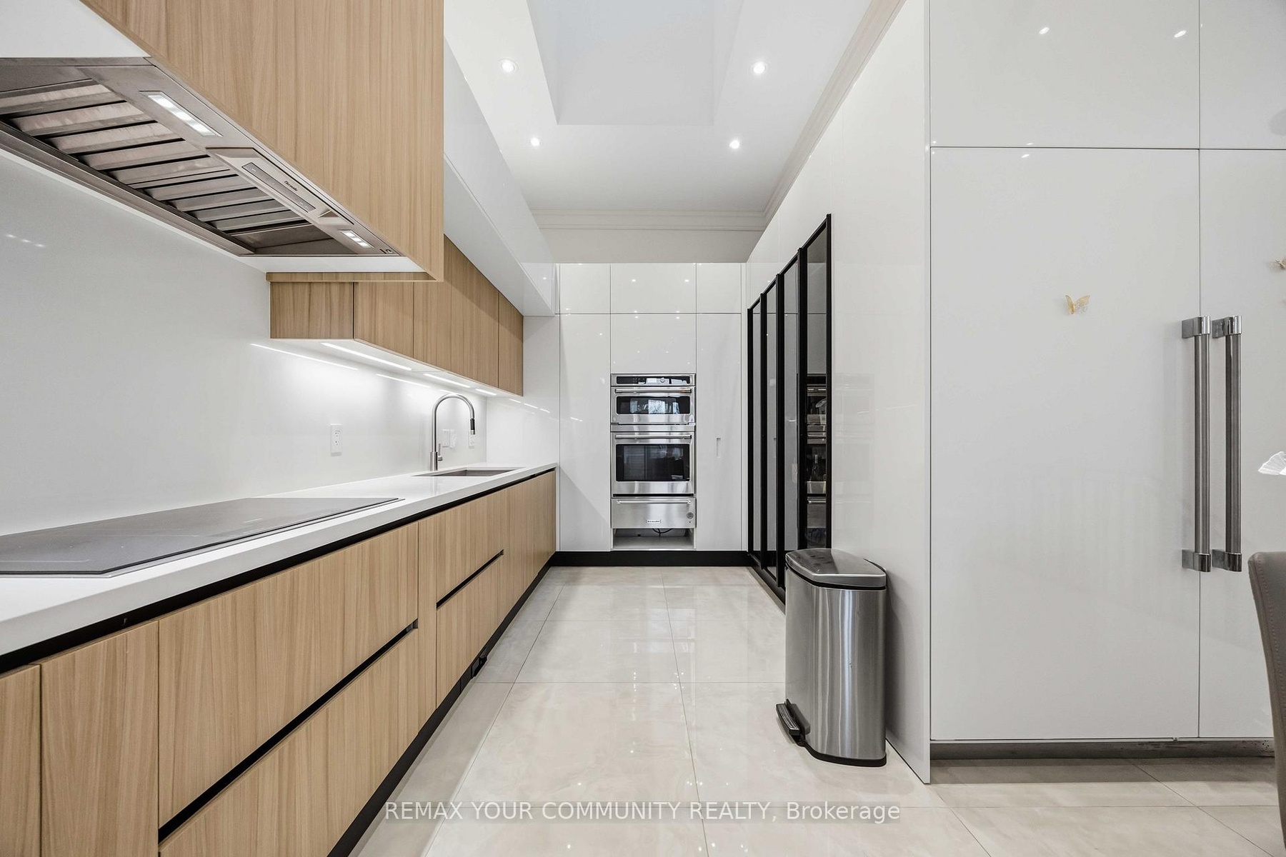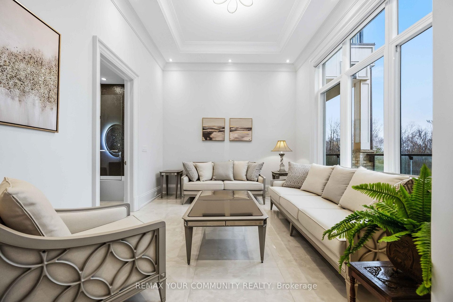 Some homes are built. This one is composed. Bethesda Forest Estates is one of York Region's most distinguished custom estate enclaves - private conservation ravine lots, minutes to Highway 404, forty minutes to downtown Toronto. 76 Cedar Ridge Road sits on two private acres within it: years in the making, complete as of this Spring. The build announces its standard before you step inside. Natural Indiana limestone facade. Belden brick. Copper Roof. Solid Mahogany doors. Sherle Wagner plumbing fittings in every washroom of both residences. The materials were chosen once and held throughout. It is not one home. It is two - each complete, each private, each extraordinary - built for the exceptional family that refuses to ask its members to choose between closeness and independence. The main estate unfolds across four levels. Ceilings climb form twelve to twenty feet. Versace porcelain tile underfoot. A formal sitting room centered on a marble gas fireplace. The kitchen is anchored by a Thermador six-burner range - brand new, never cooked on - with a waterfall island and custom gold-motif hood. And concealed behind seamless cabinetry: a fully equipped prep kitchen with its own stove, fridge, and dishwasher, waiting for the evenings when everyone is here. The lower level refuses to be called a basement: twelve-foot ceilings, radiant-heated tile, marble fireplace, full walkout to the cedar-lined heated loggia with wood-burning fireplace and ravine beyond. The primary suite soars to twenty feet - private balcony, spa ensuite, skylit walk-in. Five ensuite bedrooms. Three-car heated garage with car lift. The second residence earns its plural: two complete apartments - each with its own Pedini Italian Kitchen, fireplace, and spa ensuite. Connected by private elevator. Versace tile and Sherle Wagner fittings throughout. Private entrance. Two-car heated garage. Completely independent. Quietly connected. Immediate Possession.