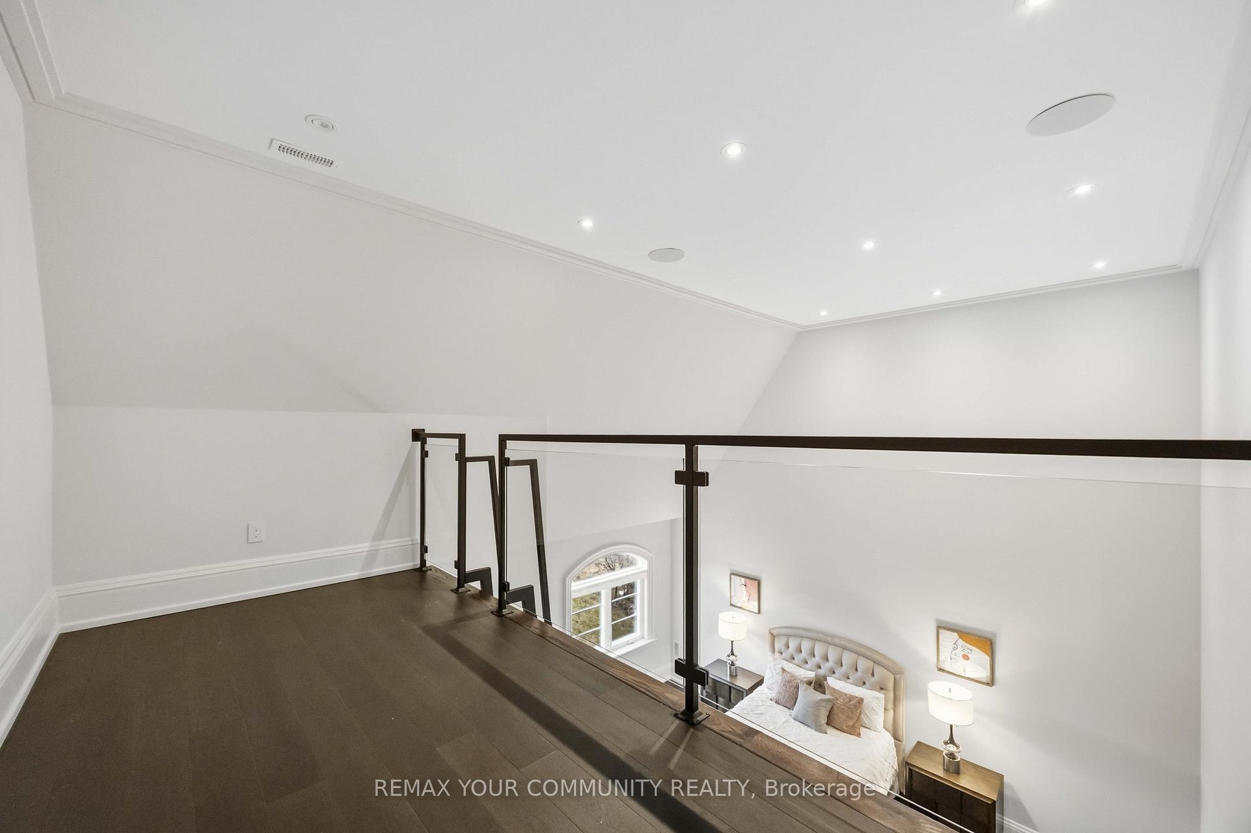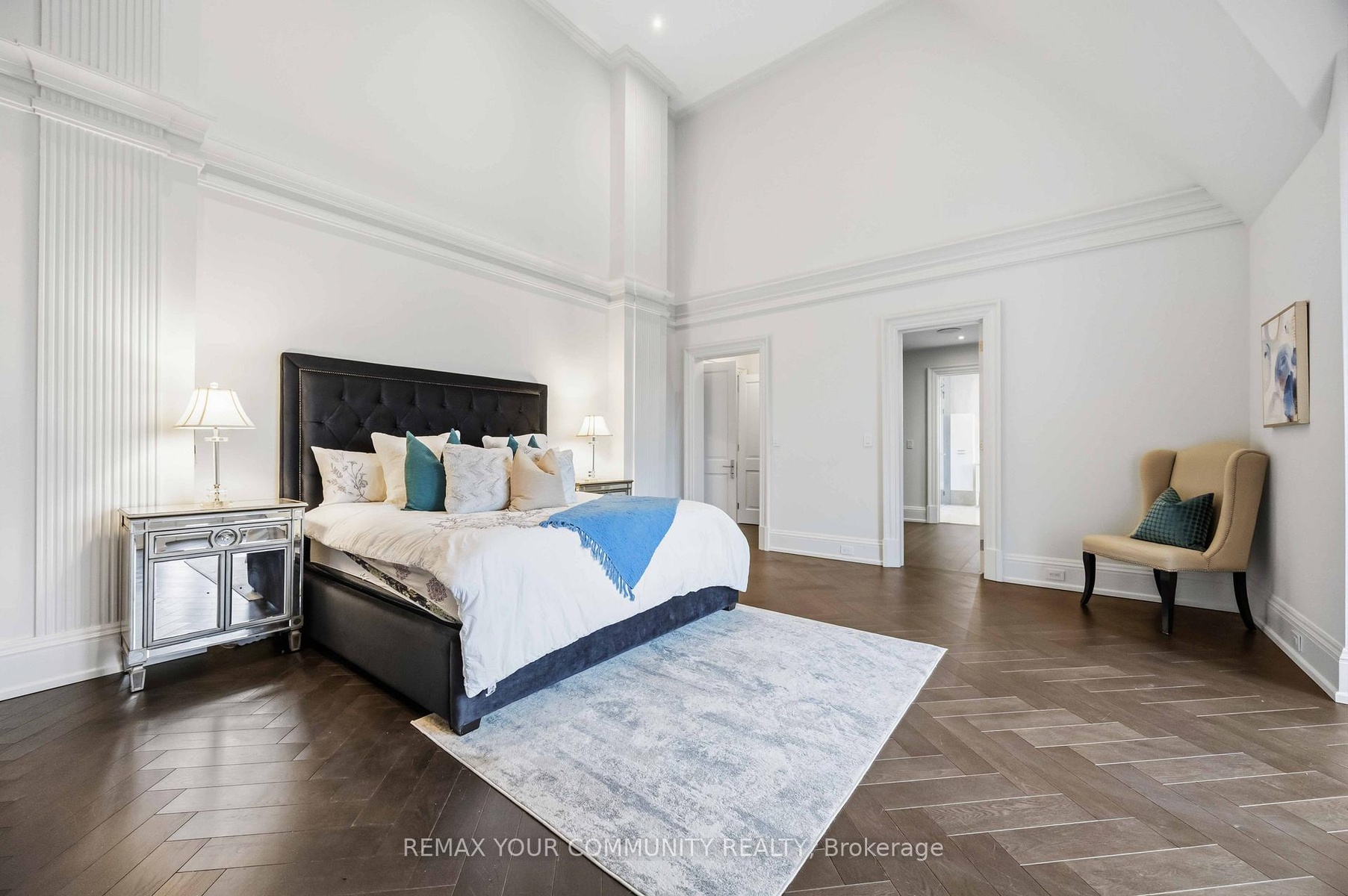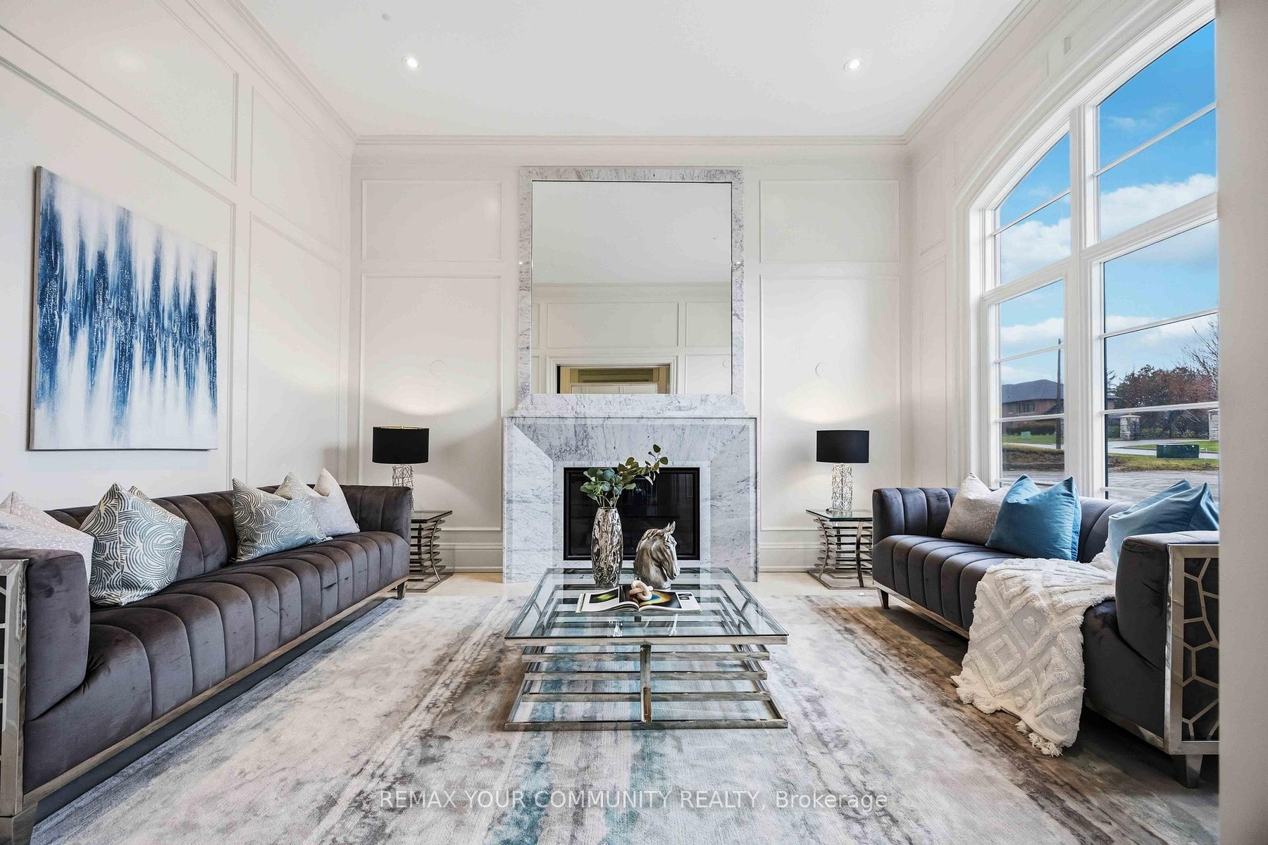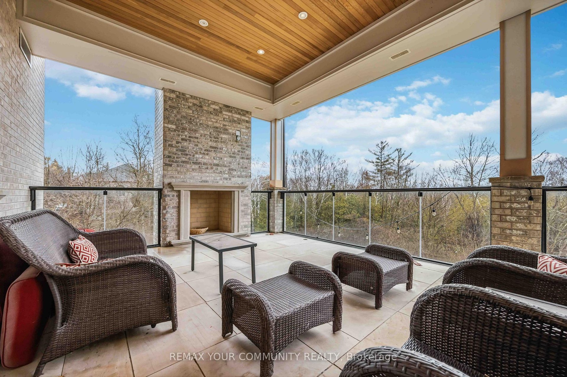 Some homes are built. This one is composed. Bethesda Forest Estates is one of York Region's most distinguished custom estate enclaves - private conservation ravine lots, minutes to Highway 404, forty minutes to downtown Toronto. 76 Cedar Ridge Road sits on two private acres within it: years in the making, complete as of this Spring. The build announces its standard before you step inside. Natural Indiana limestone facade. Belden brick. Copper Roof. Solid Mahogany doors. Sherle Wagner plumbing fittings in every washroom of both residences. The materials were chosen once and held throughout. It is not one home. It is two - each complete, each private, each extraordinary - built for the exceptional family that refuses to ask its members to choose between closeness and independence. The main estate unfolds across four levels. Ceilings climb form twelve to twenty feet. Versace porcelain tile underfoot. A formal sitting room centered on a marble gas fireplace. The kitchen is anchored by a Thermador six-burner range - brand new, never cooked on - with a waterfall island and custom gold-motif hood. And concealed behind seamless cabinetry: a fully equipped prep kitchen with its own stove, fridge, and dishwasher, waiting for the evenings when everyone is here. The lower level refuses to be called a basement: twelve-foot ceilings, radiant-heated tile, marble fireplace, full walkout to the cedar-lined heated loggia with wood-burning fireplace and ravine beyond. The primary suite soars to twenty feet - private balcony, spa ensuite, skylit walk-in. Five ensuite bedrooms. Three-car heated garage with car lift. The second residence earns its plural: two complete apartments - each with its own Pedini Italian Kitchen, fireplace, and spa ensuite. Connected by private elevator. Versace tile and Sherle Wagner fittings throughout. Private entrance. Two-car heated garage. Completely independent. Quietly connected. Immediate Possession.