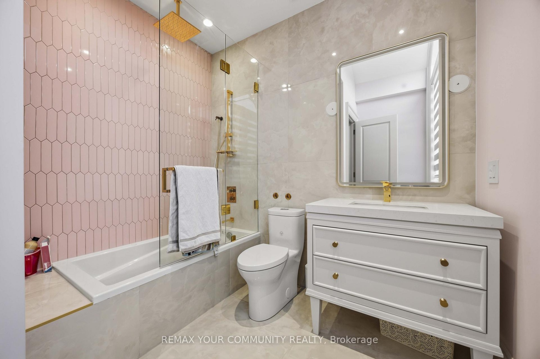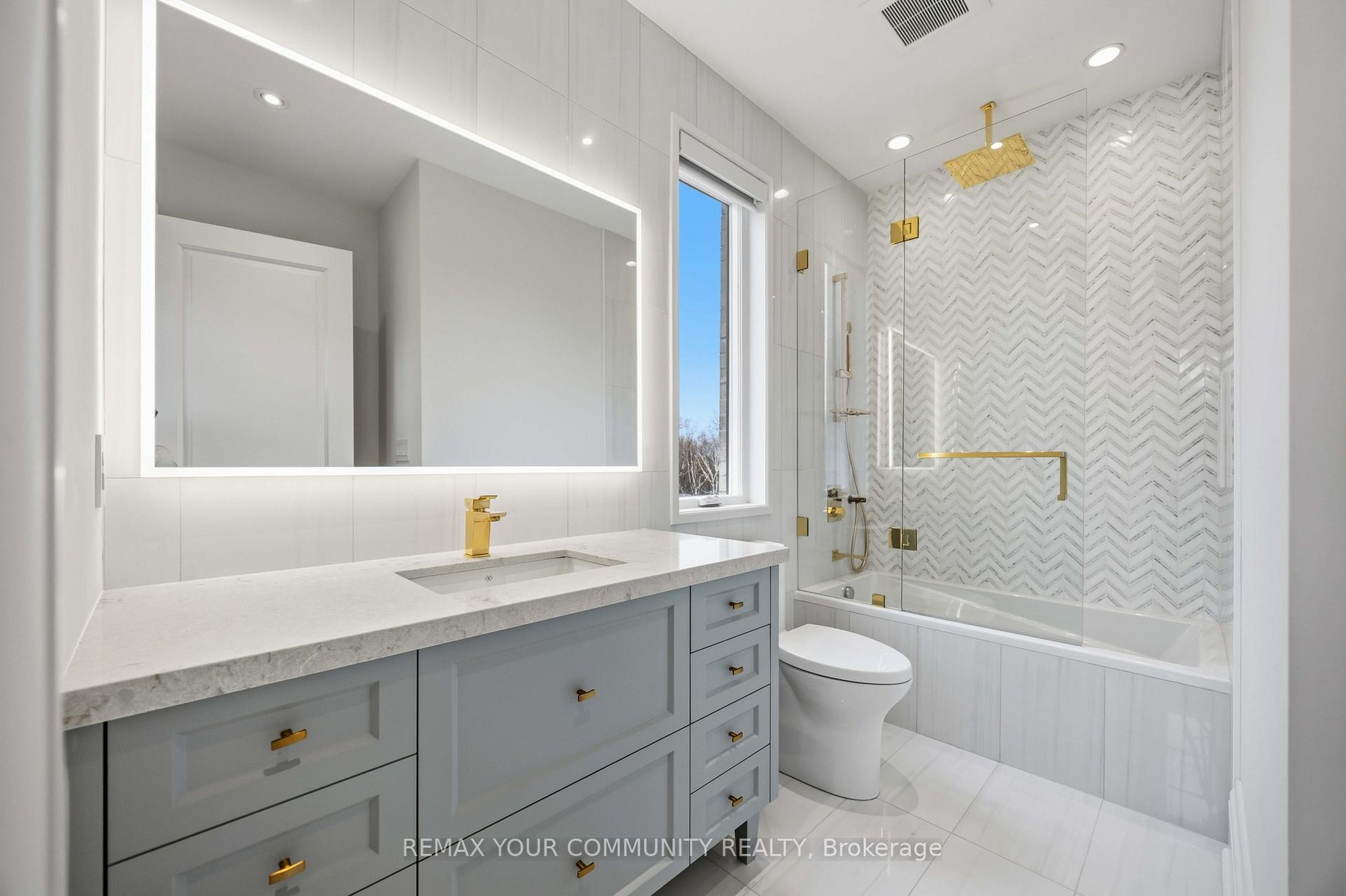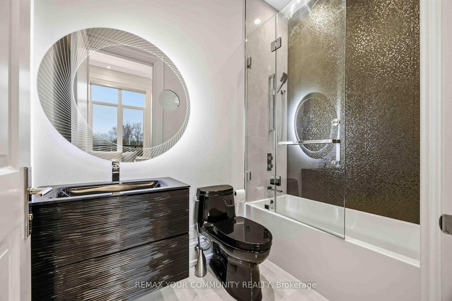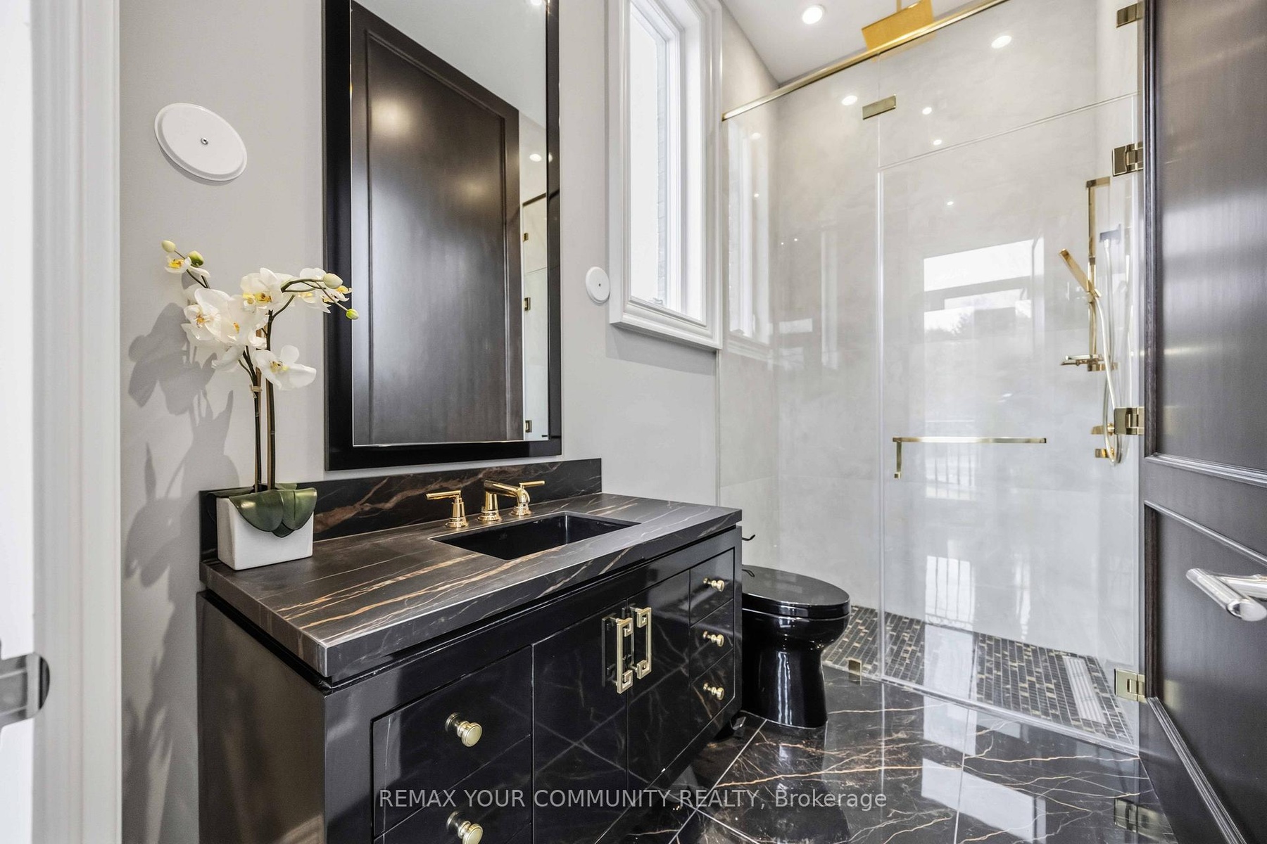 Some homes are built. This one is composed. Bethesda Forest Estates is one of York Region's most distinguished custom estate enclaves - private conservation ravine lots, minutes to Highway 404, forty minutes to downtown Toronto. 76 Cedar Ridge Road sits on two private acres within it: years in the making, complete as of this Spring. The build announces its standard before you step inside. Natural Indiana limestone facade. Belden brick. Copper Roof. Solid Mahogany doors. Sherle Wagner plumbing fittings in every washroom of both residences. The materials were chosen once and held throughout. It is not one home. It is two - each complete, each private, each extraordinary - built for the exceptional family that refuses to ask its members to choose between closeness and independence. The main estate unfolds across four levels. Ceilings climb form twelve to twenty feet. Versace porcelain tile underfoot. A formal sitting room centered on a marble gas fireplace. The kitchen is anchored by a Thermador six-burner range - brand new, never cooked on - with a waterfall island and custom gold-motif hood. And concealed behind seamless cabinetry: a fully equipped prep kitchen with its own stove, fridge, and dishwasher, waiting for the evenings when everyone is here. The lower level refuses to be called a basement: twelve-foot ceilings, radiant-heated tile, marble fireplace, full walkout to the cedar-lined heated loggia with wood-burning fireplace and ravine beyond. The primary suite soars to twenty feet - private balcony, spa ensuite, skylit walk-in. Five ensuite bedrooms. Three-car heated garage with car lift. The second residence earns its plural: two complete apartments - each with its own Pedini Italian Kitchen, fireplace, and spa ensuite. Connected by private elevator. Versace tile and Sherle Wagner fittings throughout. Private entrance. Two-car heated garage. Completely independent. Quietly connected. Immediate Possession.