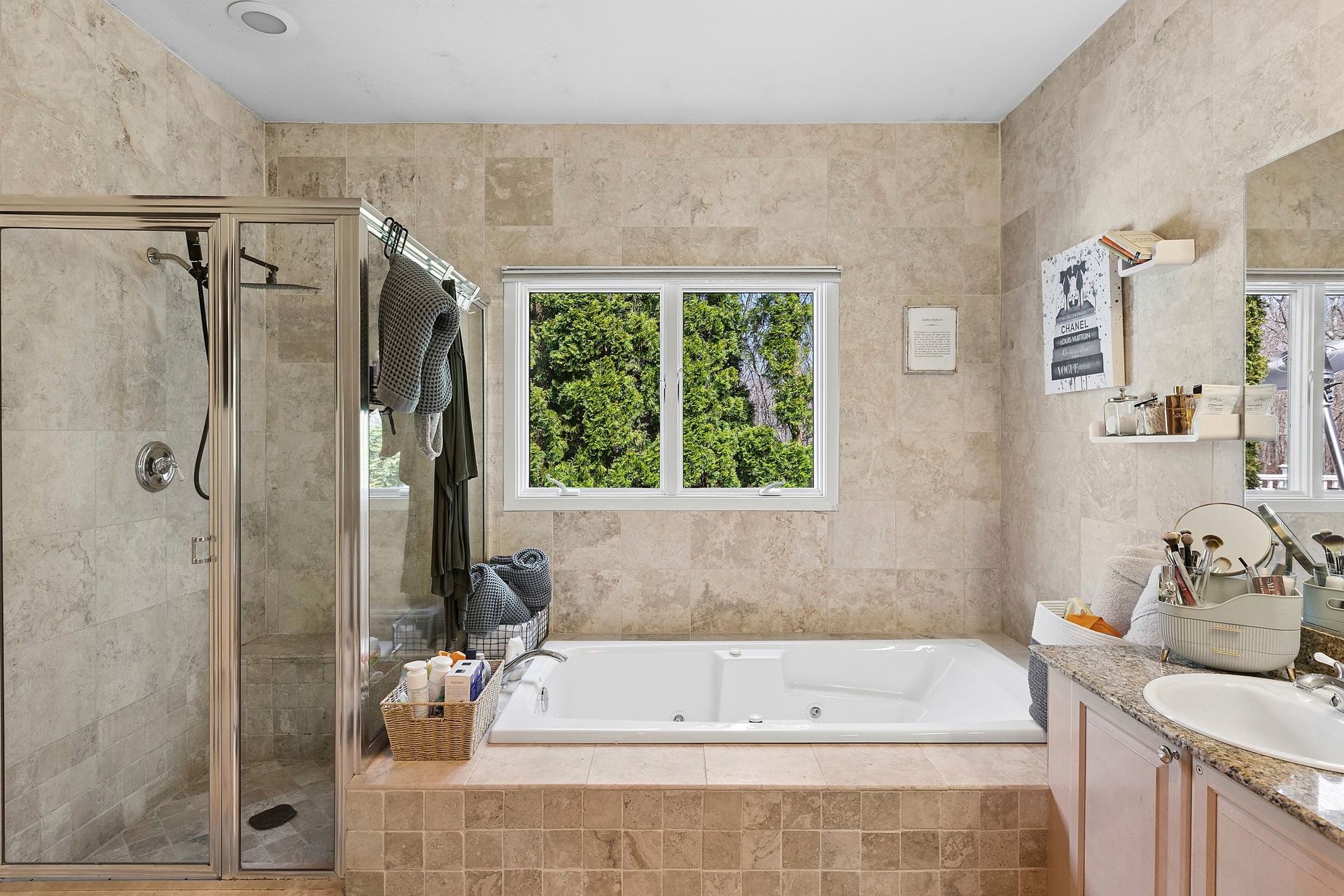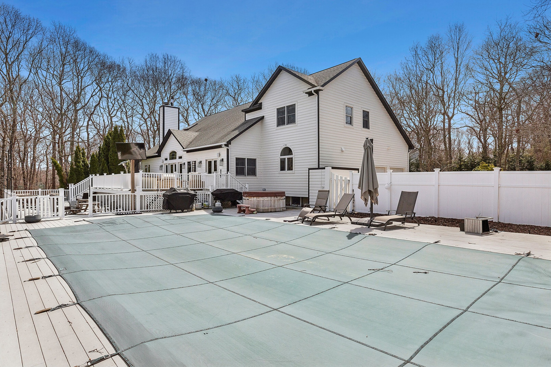 This spacious 5-bedroom, 4.5-bath home is located on a quiet cul-de-sac in Southampton, offering both privacy and convenience. The first floor features a bright living room, open kitchen and dining area, a full bath, a versatile bonus room perfect as a playroom or office, and a primary ensuite bedroom. Upstairs, you’ll find two additional ensuite bedrooms along with two guest bedrooms that share a full bath. Outside, enjoy a beautifully maintained yard with a heated, fenced-in pool and a two-level deck, ideal for grilling, outdoor dining, or relaxing by the fire pit.