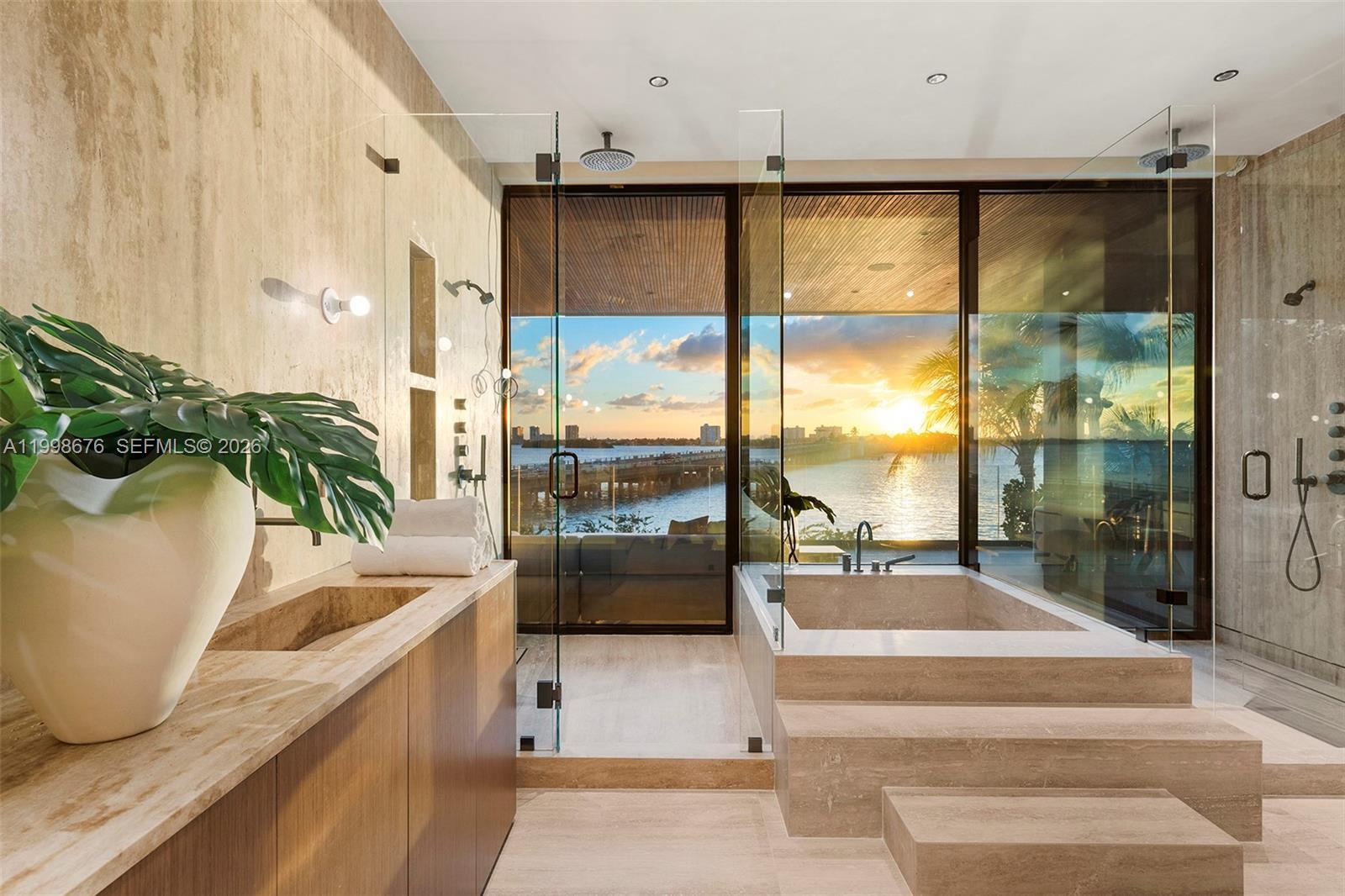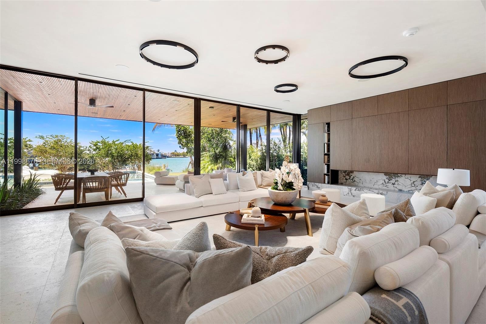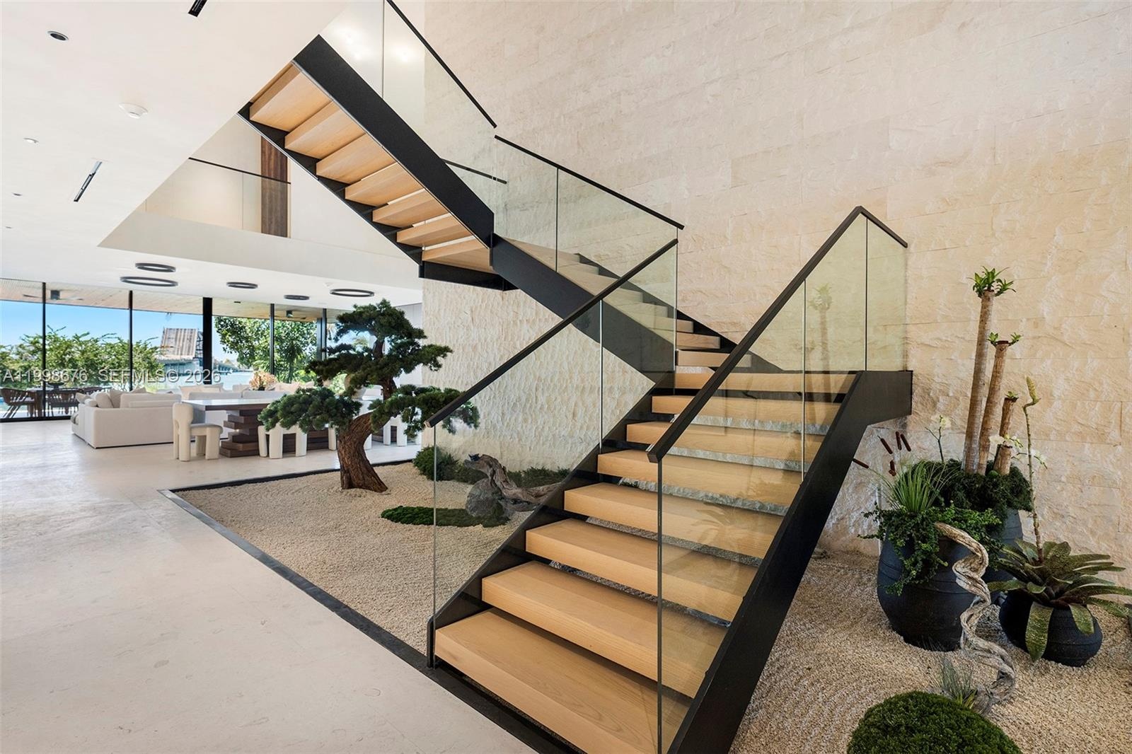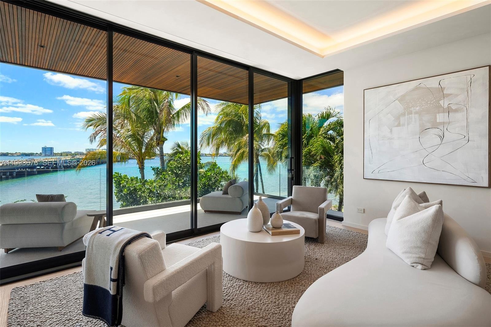 Brand-new waterfront masterpiece in Bay Harbor Islands, offering 8,007 SF under A/C plus a 537 SF air-conditioned two-car garage on a 13,125 SF lot with 80 feet of water frontage. Set in a no-wake zone with dockage for a large vessel and just minutes from Haulover Inlet, it is a true boater’s paradise.