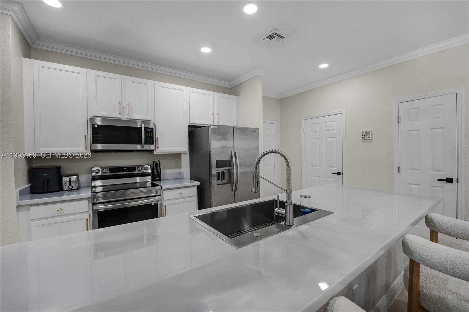 Welcome to this stunning fully upgraded 3bed 2.5bath corner unit townhome. located in the highly sought-after Montclair community! This gem features a luxurious primary suite boasting 3 walk-in closets, gorgeous master bath/spa complete with resort style finishes. Impact windows and doors with recessed lighting throughout the property, along with a spacious second-floor flex space—perfect for a home office, media room, or additional living room area.