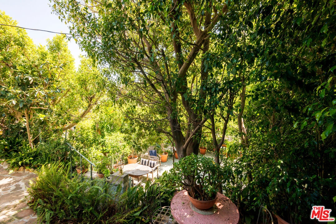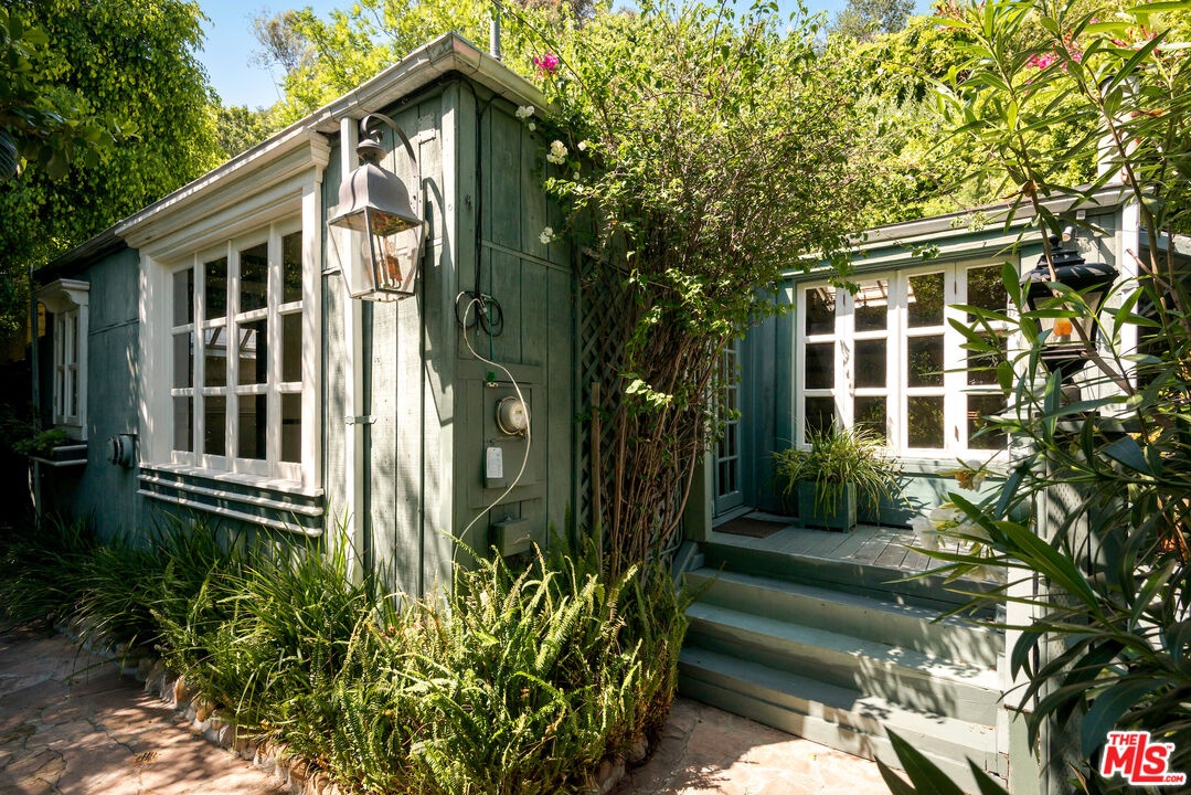 Set in the hills of Beachwood Canyon, this private, gated residence blends timeless European character with effortless California lifestyle. Surrounded by lush landscaping on a quiet, tree-lined street, both tucked away yet moments from the energy of the village. Interiors are warm and refined, with antique wood floors, beamed ceilings, and architectural details throughout. Natural light pours in through French doors and three artist skylights; creating an airy, indoor-outdoor flow perfect for entertaining. The layout offers 2 bedrooms, 1 full bath, a formal dining area, library, laundry area and a bright, flexible office space. Outside, a sun deck and expansive rooftop garden create a true extension of the living space. Ideal for entertaining and unwinding. A hidden hillside retreat reveals sweeping canyon views. Additional features include a detached two-car garage and mature citrus trees. Zoned LARD4, the property also presents future development or expansion potential, adding a compelling long-term opportunity. Located just two blocks from Beachwood Village, minutes from the Hollywood Sign and Griffith Observatory, with easy access to hiking trails, cafes, and the Franklin Strip. A rare offering that you do not want to miss.