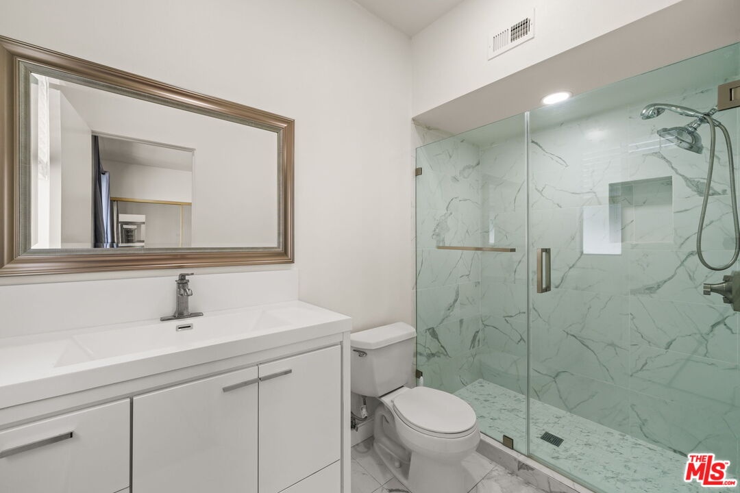 This expansive 2,500 sq ft, front-facing 2-bedroom, 3-bath residence lives like a single-family home with the lock-and-leave ease of a prime condo. Generous, light-filled living and dining areas are framed by oversized windows and offer excellent wall space for art, creating a sophisticated backdrop for both everyday living and large-scale entertaining. An elegant mix of hardwood, marble, and tile flooring runs throughout, combining visual warmth with low-maintenance practicality and suiting a wide range of design styles. The floor plan thoughtfully separates the two bedroom suites, each with its own bath, while a powder room serves guests and enhances convenience. Two gated, side-by-side parking spaces in the community garage are a coveted amenity in this central, high-demand neighborhood. The boutique 12-residence building offers controlled access, elevator service, and shared amenities including a pool and recreation area, adding to the property's relaxed, turnkey appeal. Set in a prime WeHo location, this home benefits from close proximity to the new Erewhon, the soon-to-be-opened Laurel Supply, popular cafes, fitness options, boutiques, and everyday services, with simple access to major streets and transit as well as the nearby Sunset Strip. This large-format residence delivers volume with compelling value.