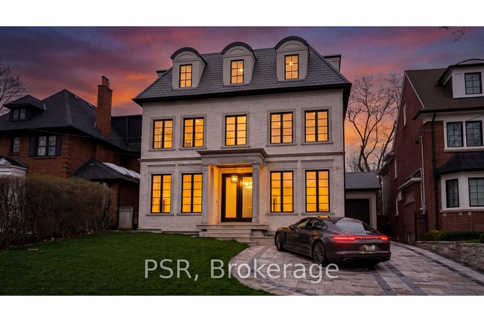 A newly built custom residence by Spragge Architects, ideally positioned with southern exposure and winter city views, offering over 5,200 sq ft of refined living space in prestigious Forest Hill. This exceptional 6-bedroom, 8-bathroom home showcases outstanding craftsmanship and timeless design. A striking brick and Indiana limestone exterior with heated walkway leads to a grand entry. Inside, 10.5' ceilings, a curved staircase, and a stone hallway set an elegant tone. Formal living and dining rooms feature coffered ceilings, a fireplace, and a butler's pantry-perfect for entertaining. Sun-filled principal rooms overlook landscaped gardens and a saltwater pool. A private elevator services all levels. The chef's kitchen includes a large island, eat-in area, and opens to a family room with custom built-ins and walk-out to the yard. The primary suite offers a private balcony, custom walk-in closet, and spa-inspired ensuite. Two additional bedrooms with ensuites complete the second floor. The upper level adds two more bedrooms, a full bath, office/play space, and a bright laundry room. The lower level features a spacious rec room, wet bar, gym, guest/nanny suite, and radiant heated floors. Steps to Forest Hill Village, Cedarvale Park, and minutes to Yorkville. A rare offering combining luxury, comfort, and location. *Power of Sale- as is, where is.