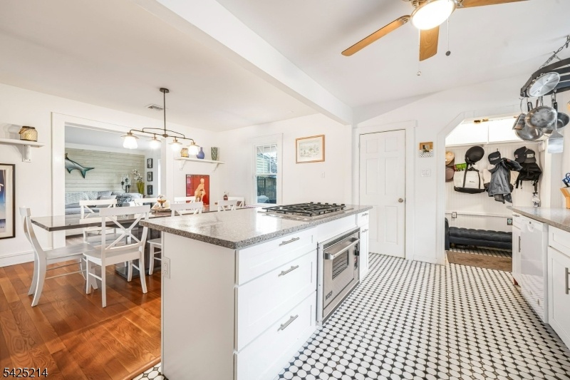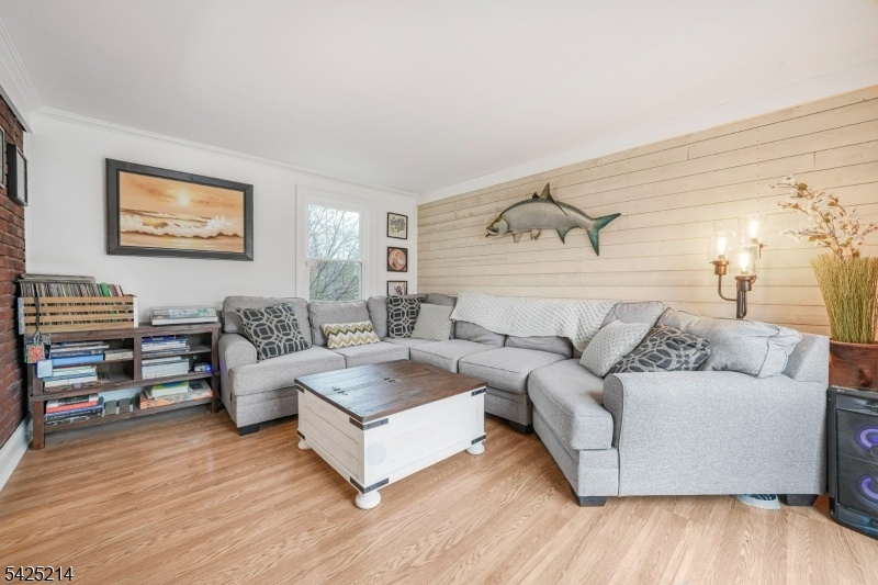 Tudor style brick home with an open floor plan and a spacious two car garage.
