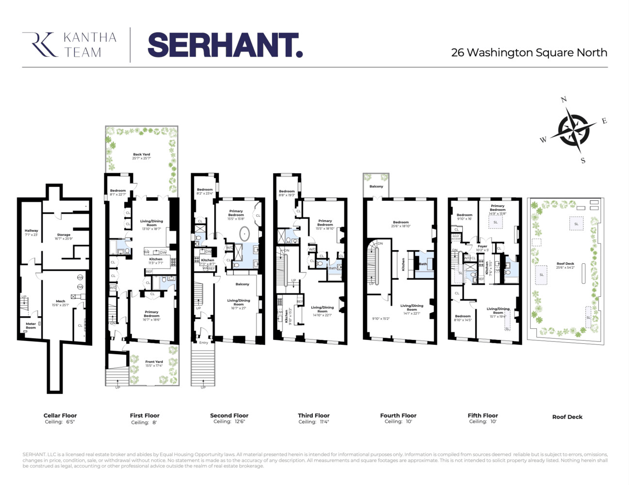 A once in a lifetime opportunity to acquire one of the last privately owned townhomes on Washington Square Park in the heart of Greenwich Village. Boasting opulence and grandeur of a bygone era, this one-of-a-kind, 26' wide, 5-story Landmark Preserved home contains approximately 8,750 square feet of interior living space. Constructed in 1839 and gut renovated in 2018, 26 Washington Square North sits as the highest townhome on the North side of the park, and is currently configured as five floors featuring 5 floor-through luxury apartments in perfect condition.
