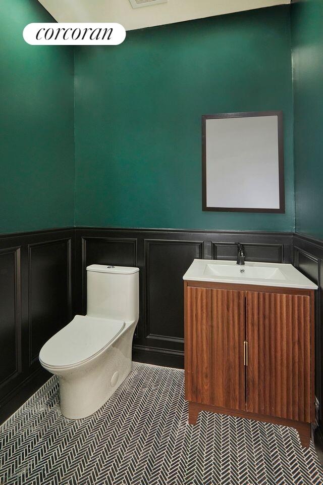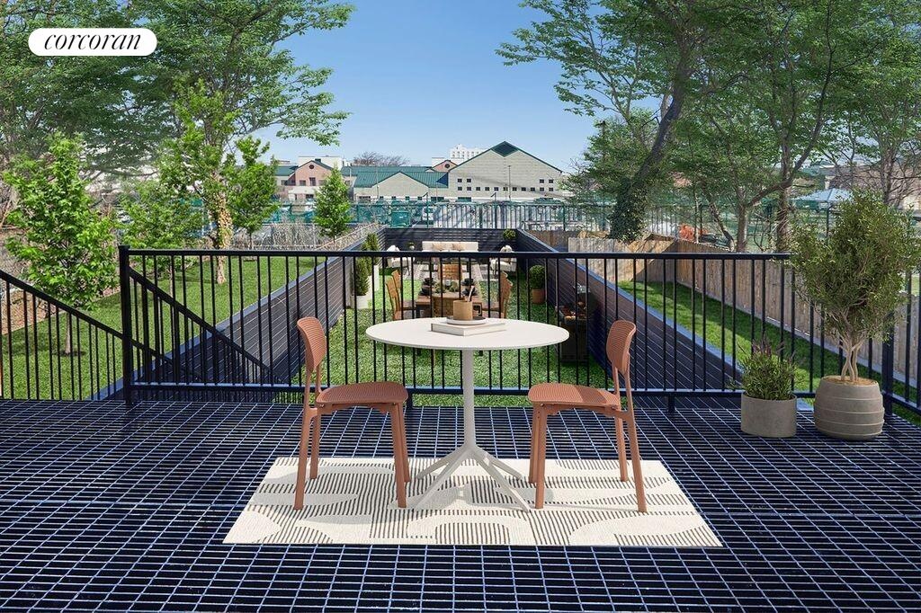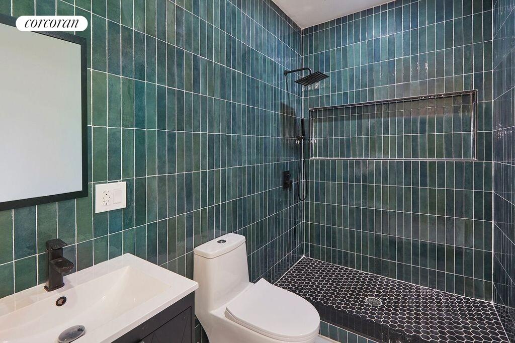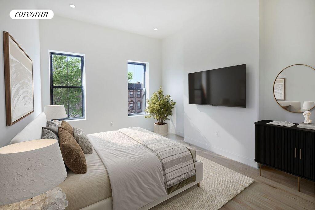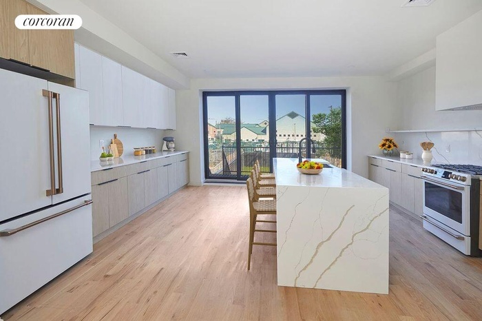 The owner's duplex offers 3 oversized bedrooms, 2 full bathrooms, and 1 powder room. The parlor level features an open-concept layout with expansive living and dining space, a modern kitchen, and large glass doors leading to a brand-new rear deck overlooking the backyard-perfect for entertaining, grilling, or enjoying your morning coffee. Upstairs, the spacious primary suite includes a wall of closets and a luxurious en-suite bath with double vanity. Two additional bedrooms, a full hallway bath with soaking tub and imported tile, and a dedicated laundry area complete the upper level.
