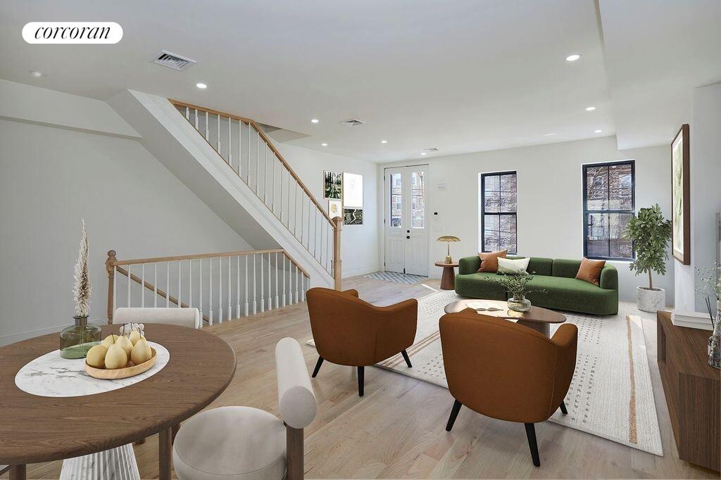 1419 St. Marks Avenue is a renovated turnkey two-family townhouse in Ocean Hill measuring approximately 19.5 feet wide by 45 feet deep. Rebuilt from top to bottom, the home features all new electrical, plumbing, roof, and beautifully redesigned interiors throughout.