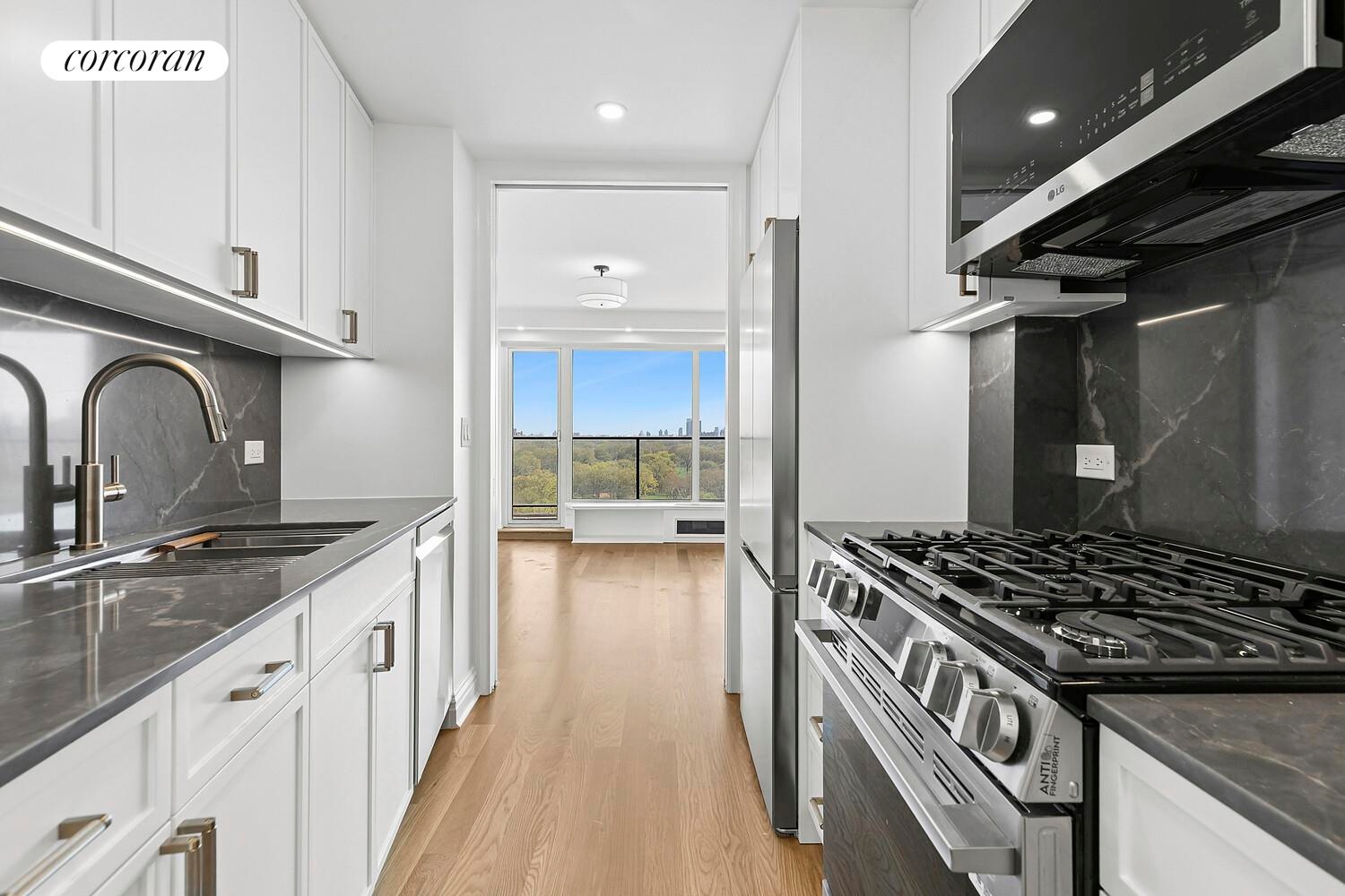 This bright and spacious one-bedroom with home office and 1.5 baths features an approximately 160 sq ft full-length private balcony and oversized north-facing windows with sweeping park views.