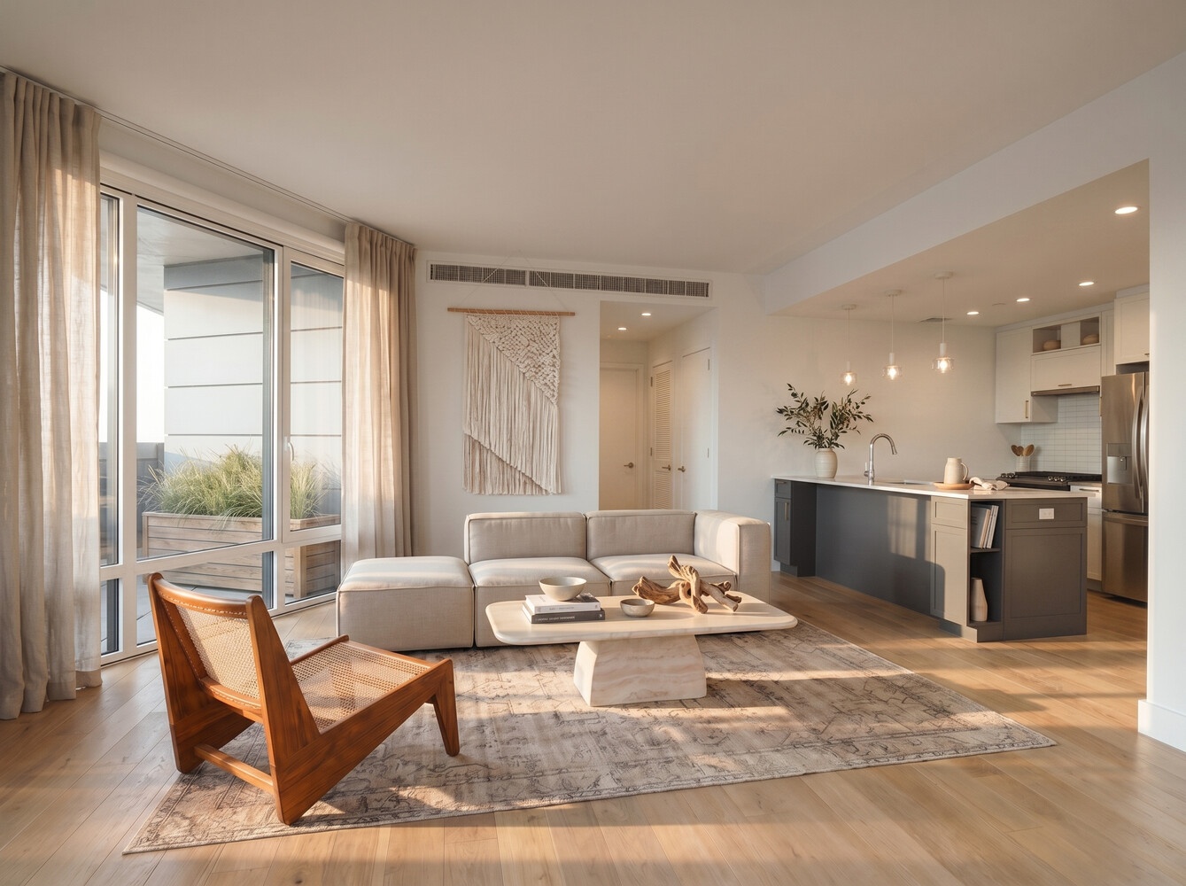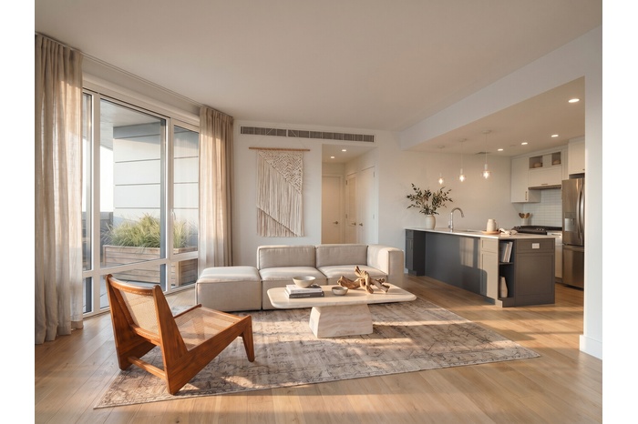 Spacious and filled with natural light, this beautifully appointed two-bedroom, two-bathroom eastern-facing condominium offers a refined coastal elegance rarely found in the Rockaways. Just one block from the shoreline, the home is bathed in sunlight through floor-to-ceiling windows and features soaring 9-foot ceilings and European white oak flooring throughout-creating an inviting setting ideal for both entertaining and everyday living.