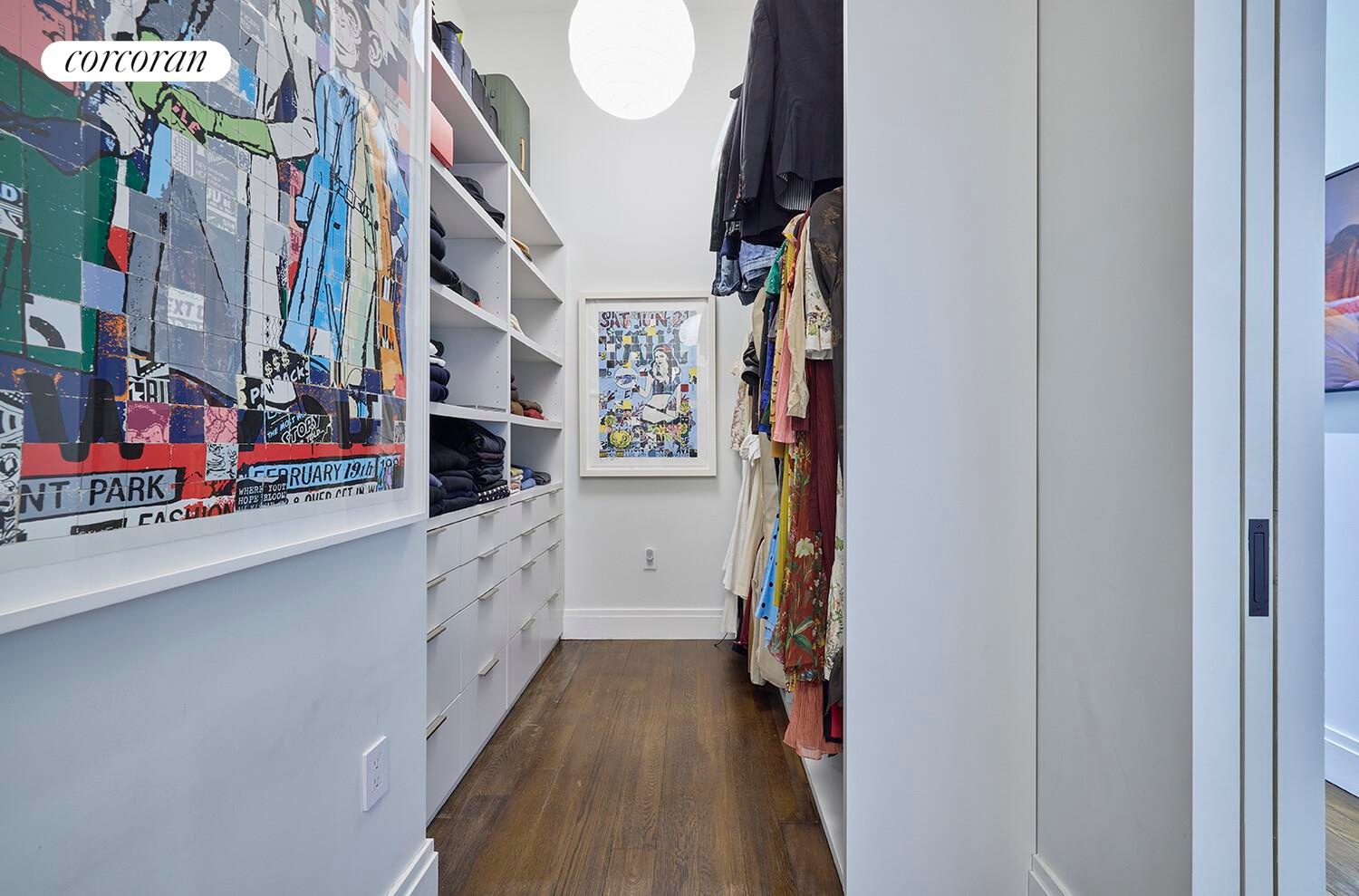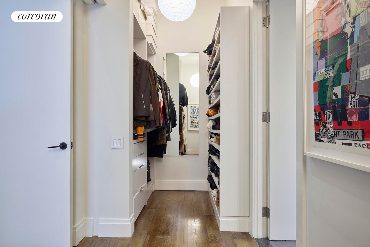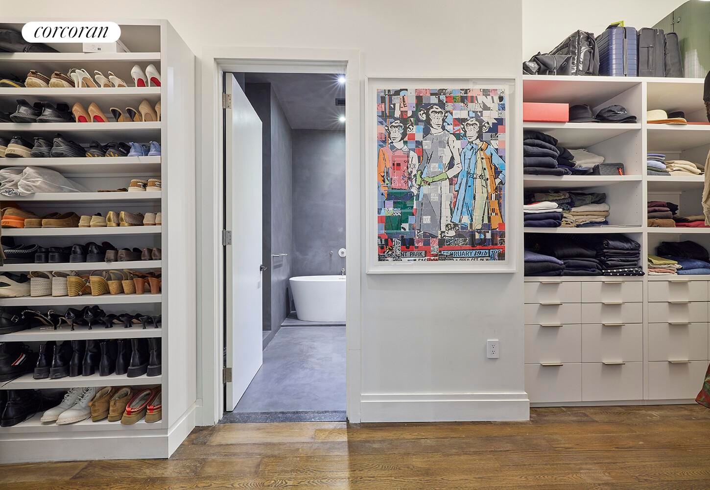 The serene primary suite offers a private retreat, complete with exceptional custom storage and three oversized closets-including two walk-ins, one thoughtfully designed to accommodate a discreet home office. The spa-like en suite bath has been beautifully reimagined with a Blu Bathworks double vanity, elevated fixtures, and an oversized walk-in shower wrapped in sleek, continuous finishes.