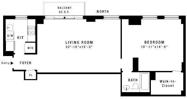 ~ The heart of this home is the exceptional 2210 x 153 living and dining area. Unlike the narrow common layouts, this expansive "Great Room" provides a sense of volume and flexibility rarely seen in a one-bedroom.