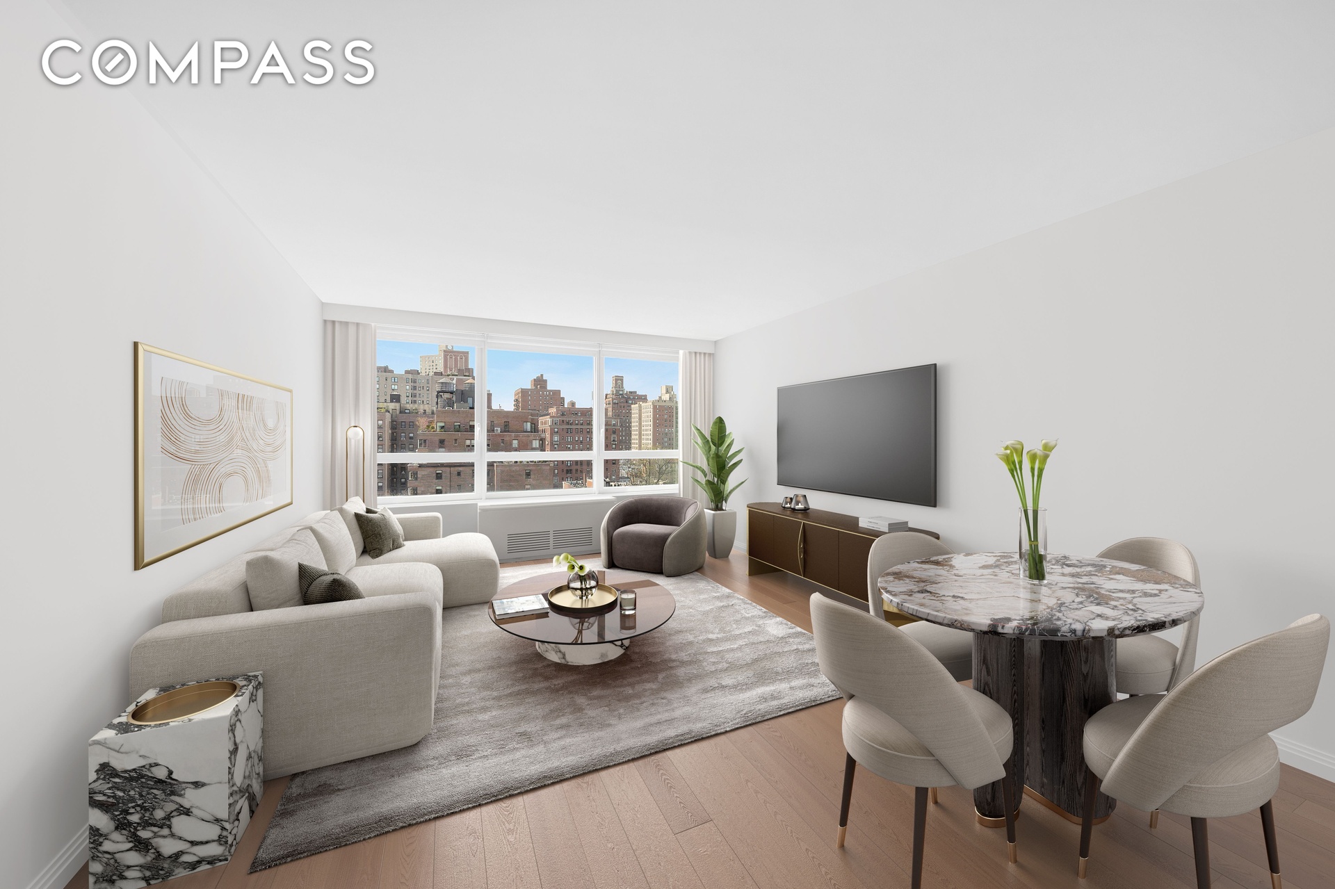 Perched on a high floor, this west-facing one-bedroom, one-bathroom home is filled with natural light thanks to wall-to-wall windows and airy ceilings. The spacious living and dining area is thoughtfully proportioned for both everyday living and entertaining, with open western exposures overlooking the historic townhouses and classic pre-war architecture of the Carnegie Hill Historic District. Warm afternoon and sunset light pours into the home, creating a welcoming atmosphere and a beautiful backdrop for relaxing or hosting.