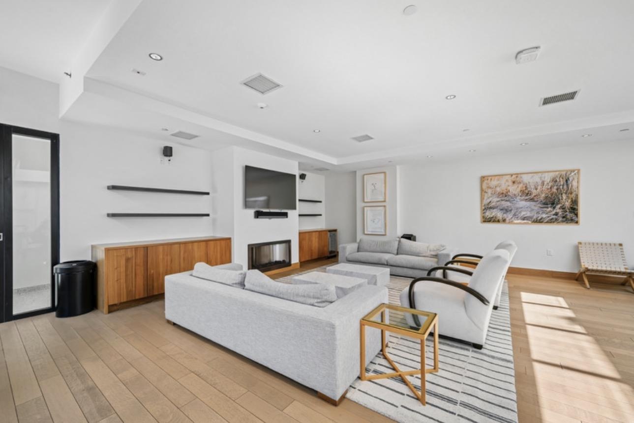 The king-sized bedroom offers a peaceful escape with generous closet space, while the spa-like bathroom is wrapped in Italian marble tile and finished with a floating vanity, matte black fixtures, and radiant heated floors. A Bosch washer and dryer complete the home.