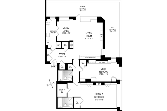 This spacious 2 bed, 2 bath corner home with full dining room and wraparound terrace has fabulous light and open city views. The corner living room with gas fireplace and formal dining room has double French doors to a renovated windowed kitchen. All looking out onto, you're planted private Terrace.
