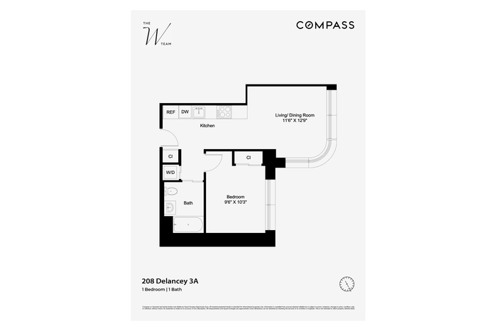 208 Delancey, Residence 3A is a southeastern facing 1 bedroom, 1 bathroom home spanning 554 square feet, thoughtfully designed to maximize light, comfort, and modern living.