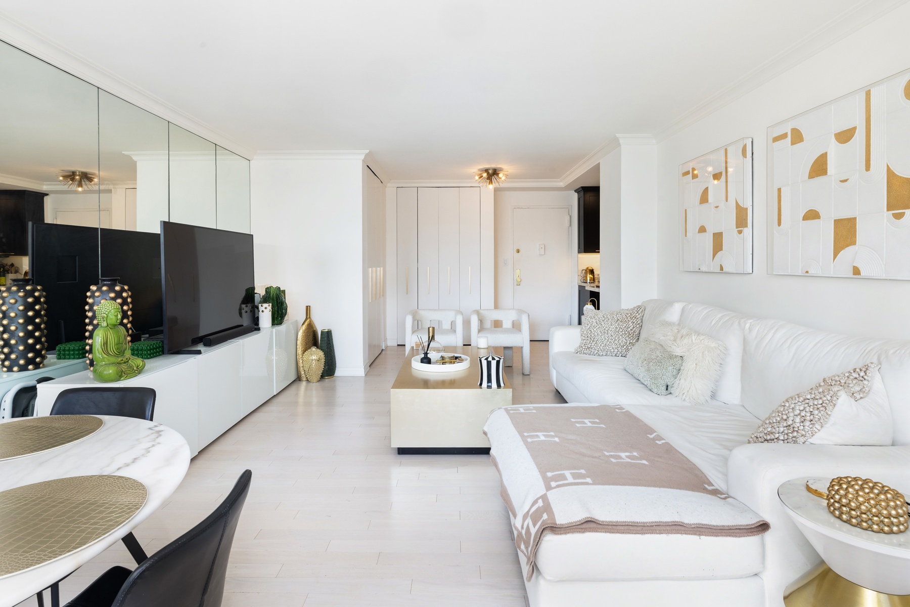 This beautifully renovated, chic alcove studio combines style, functionality and exceptional light from a wall of East facing windows.