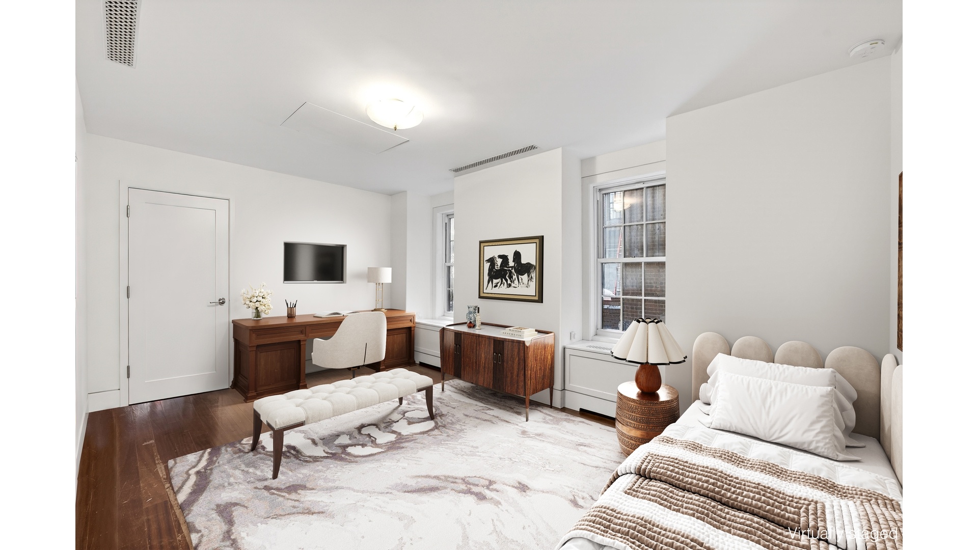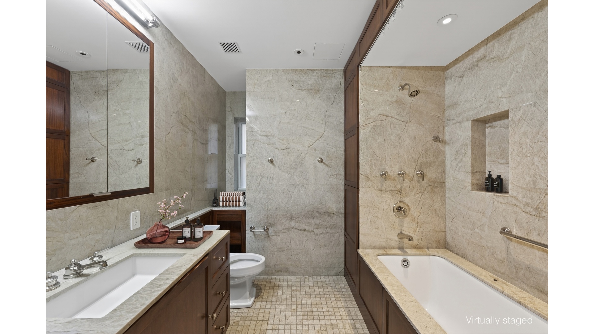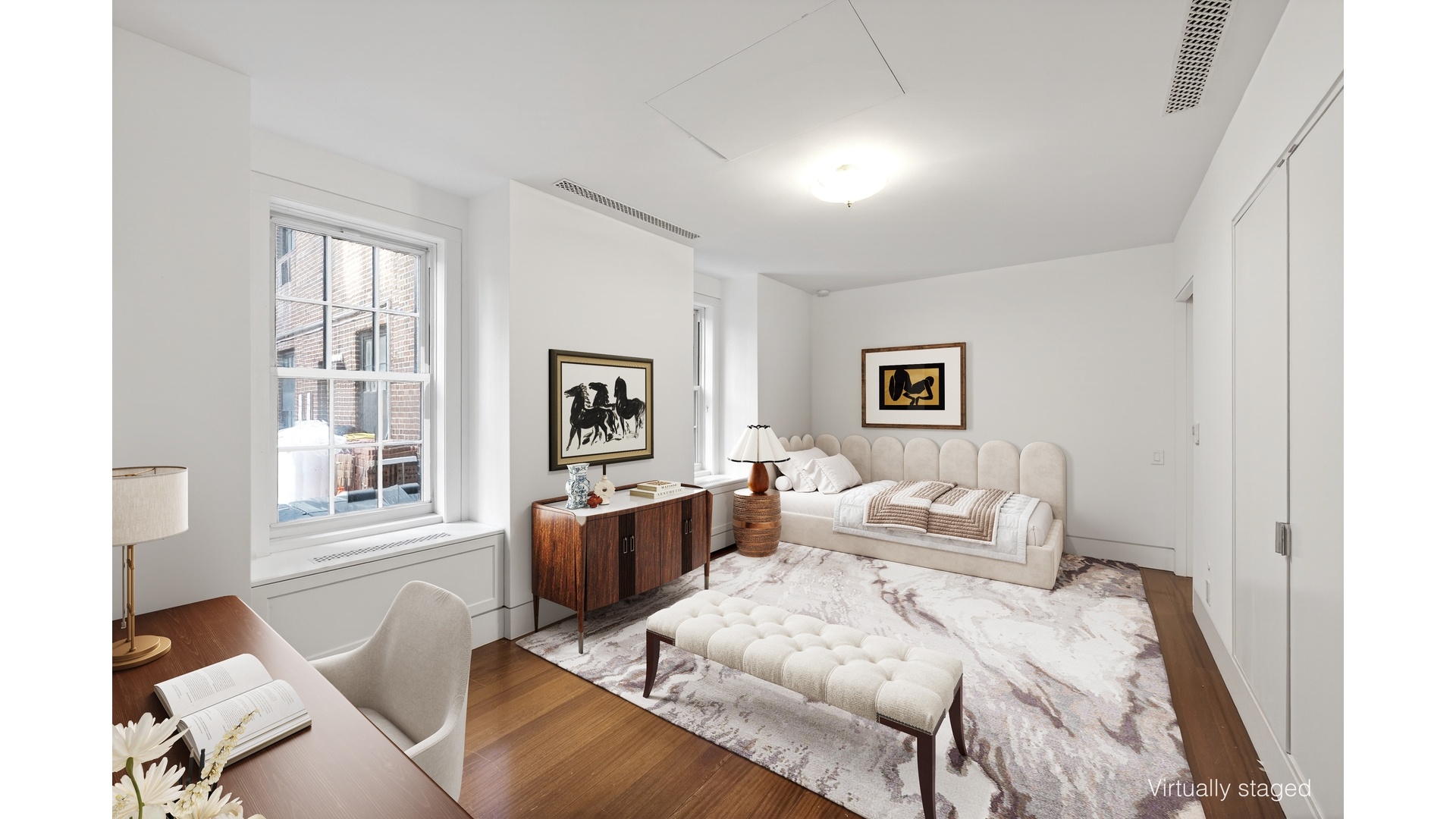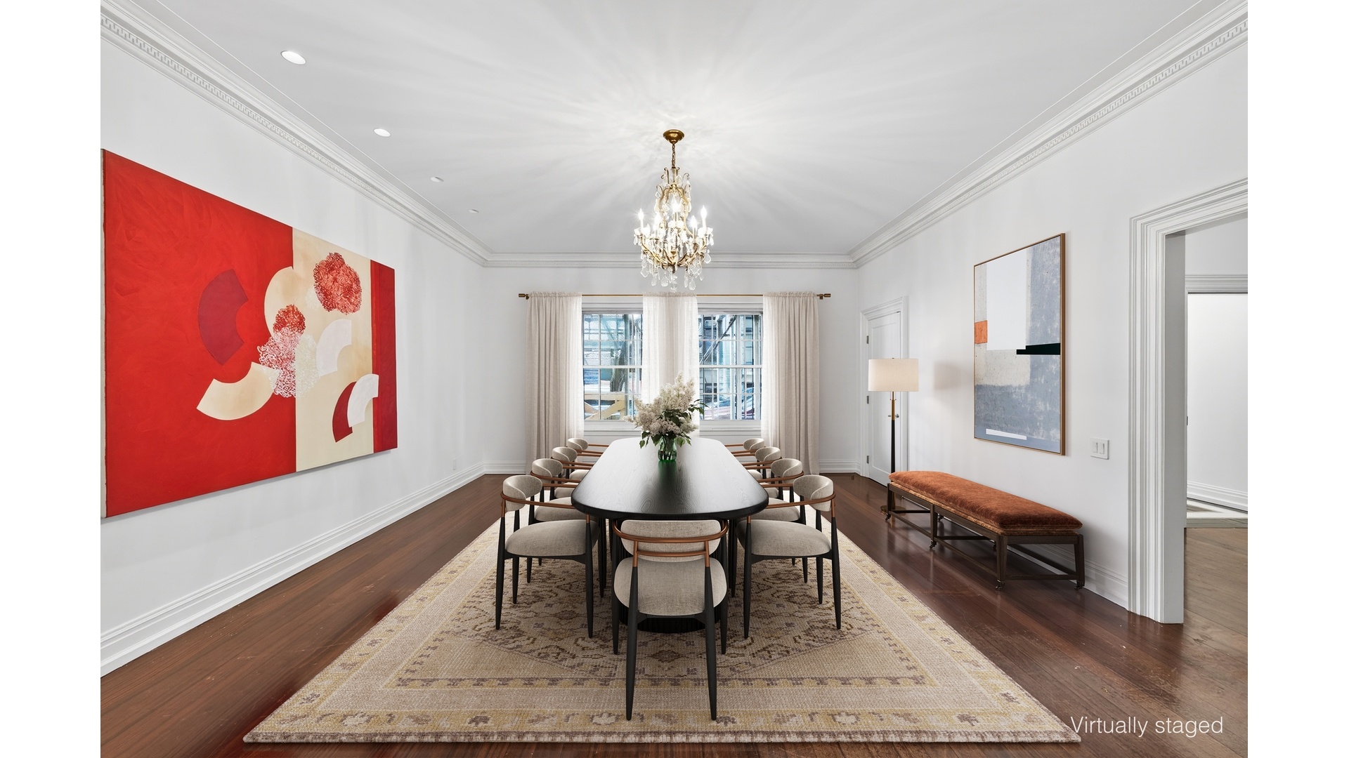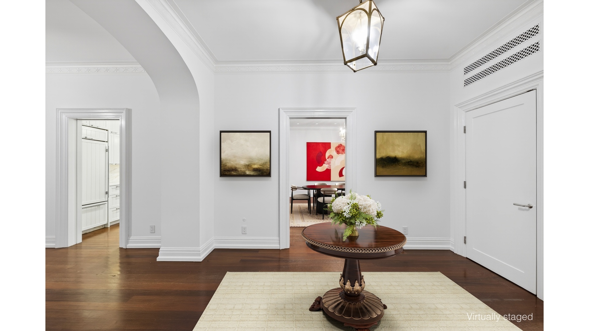Impeccably reimagined in 2011 by the acclaimed architects Lubrano Ciavarra, the renovation was guided by a commitment to restore the integrity of this Rosario Candela-designed landmark, originally built in 1930. The result is a masterful balance of architectural authenticity and modern refinement. The formal rooms retain their original grandeur, complete with classic moldings, while rich Honduran mahogany flooring runs continuously throughout.