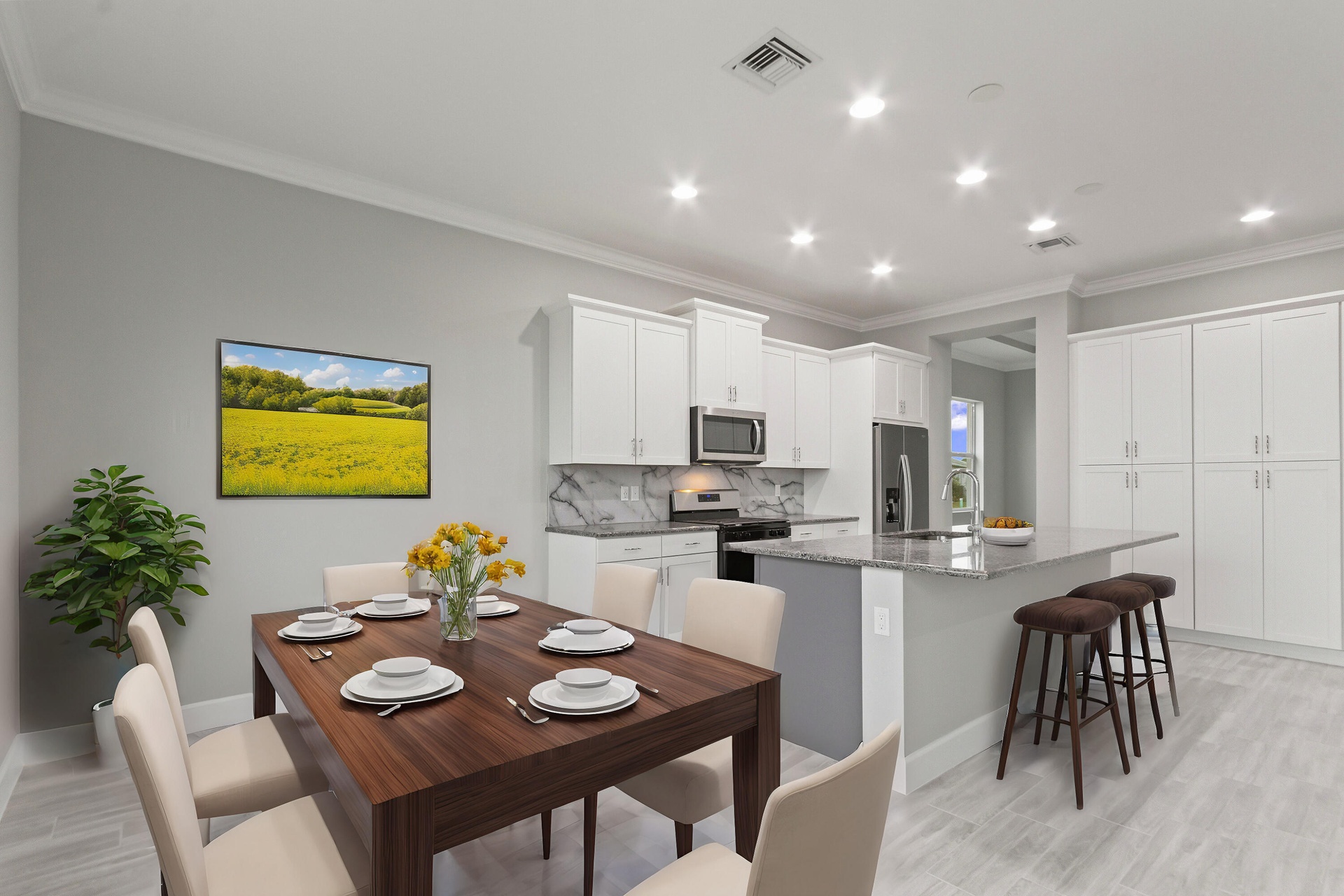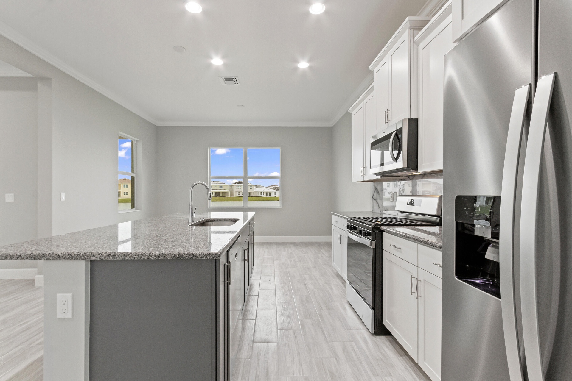 Welcome to this exceptional single-story retreat in the heart of Westlake, FL, a thriving, resort-style community where everyday living feels like a vacation. This beautifully designed home features 4 spacious bedrooms, 3 full bathrooms, and a generous 3-car garage, offering the perfect blend of comfort, functionality, and style. Step outside to your fully fenced backyard and take in breathtaking lakefront sunsets, an ideal setting for relaxing evenings or entertaining guests in complete privacy. The expansive driveway provides ample parking for family and visitors alike. Inside, the home showcases thoughtful upgrades throughout, including a modern kitchen with a sleek designer backsplash, updated bathrooms, and elegant porcelain wood-look tile flooring that flows seamlessly, creating a warm and sophisticated ambiance. Living in Westlake means enjoying world-class amenities at Adventure Park, featuring resort-style pools for both adults and families, basketball courts, The Lodge, food trucks, an event pavilion and lawn, a BMX Pump Park, and more, all designed to elevate your lifestyle. With stunning lake views, a fully fenced yard, stylish upgrades, and access to unmatched amenities, this home offers the perfect combination of luxury and everyday convenience.