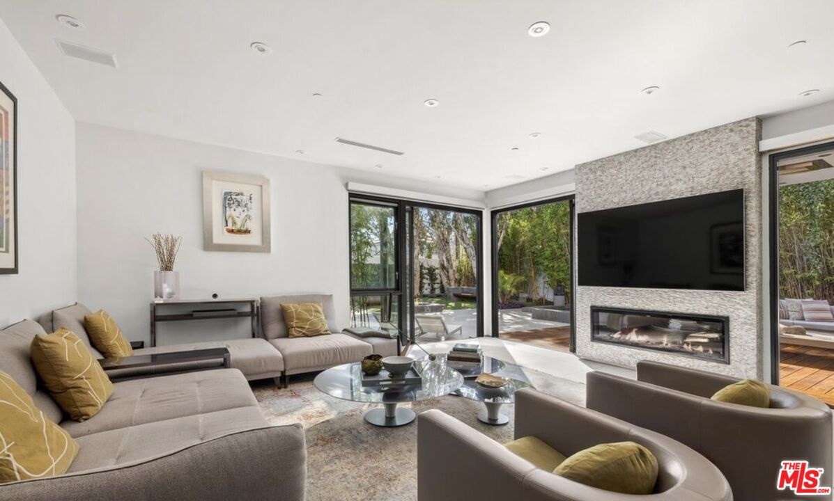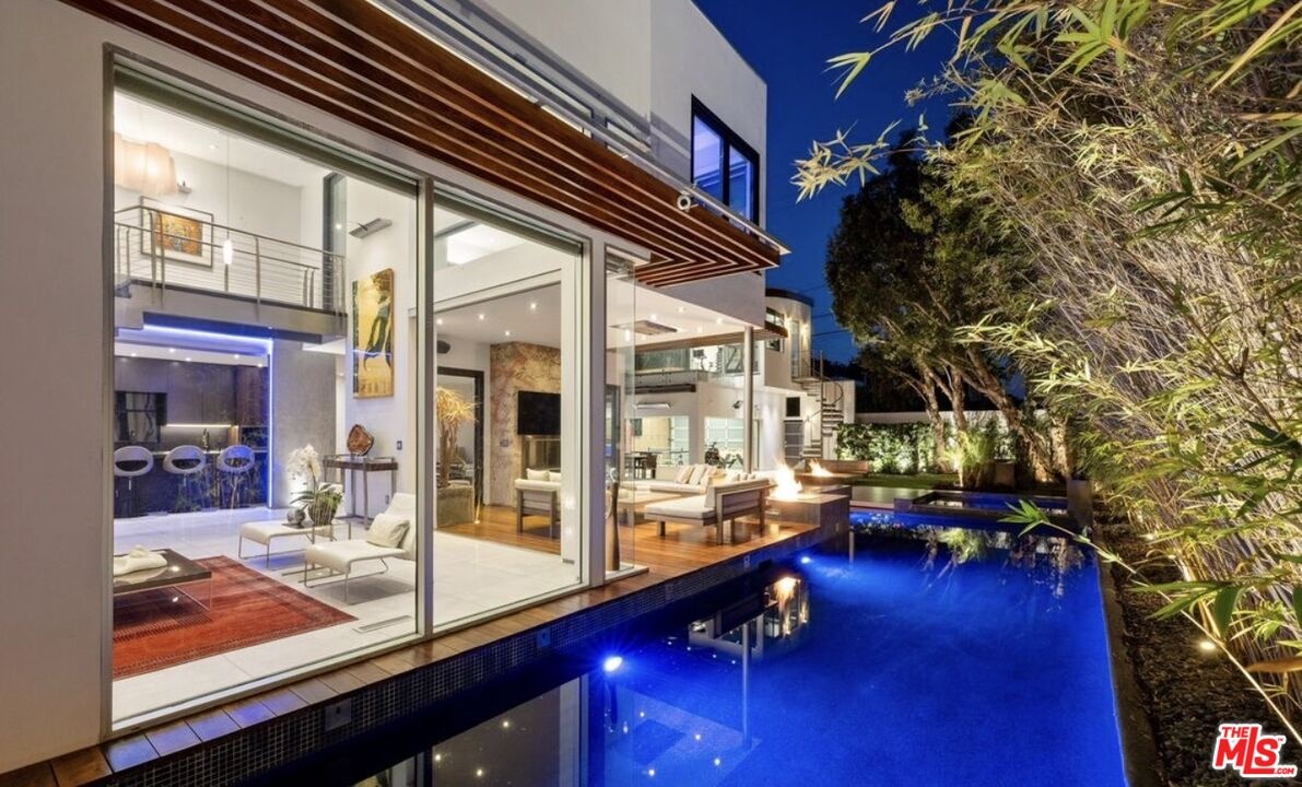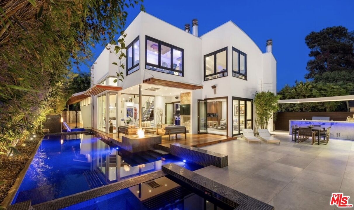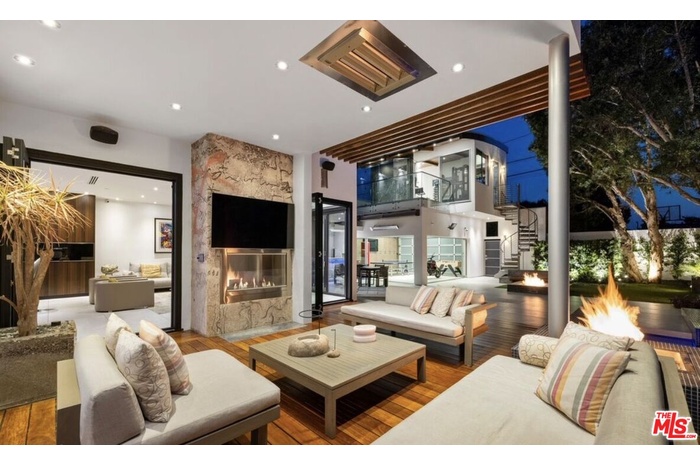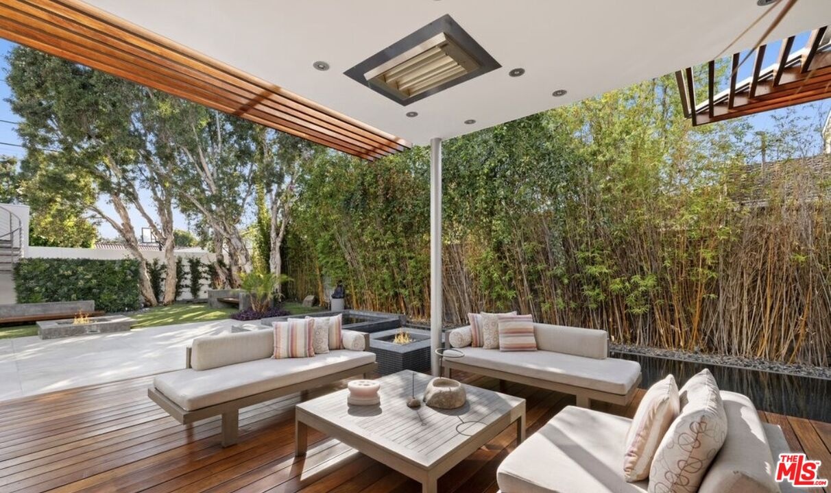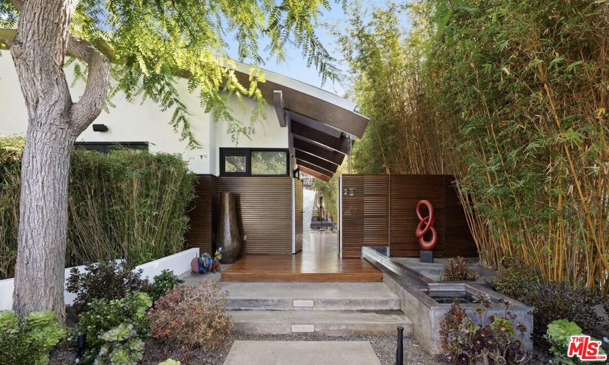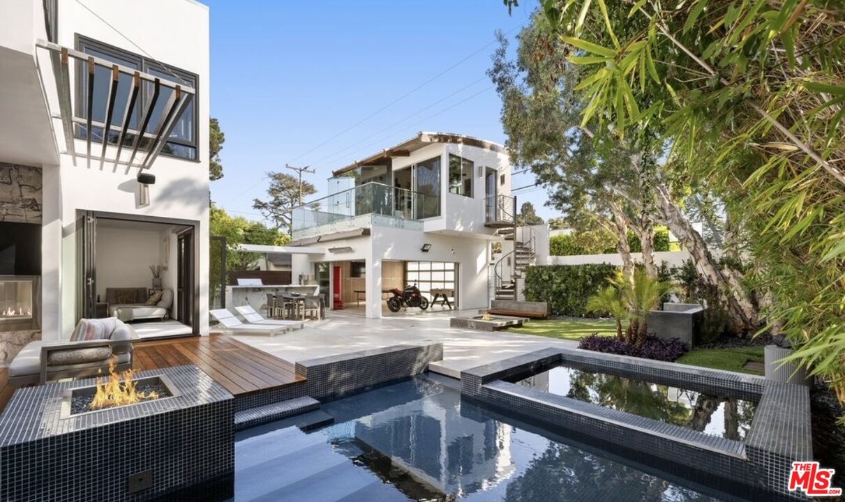 Located in the prestigious North of Montana neighborhood, this contemporary estate is privately set behind lush landscaping and mature trees, offering seamless indoor-outdoor California living. Floor-to-ceiling windows fill the formal living room with natural light, highlighting soaring double-height ceilings, exposed wood beams, a dramatic staircase, and a stylish wet bar. Pocket doors open effortlessly to the outdoor living area with fireplace, fire pit, and a striking black-bottom pool and spa.The formal dining room overlooks serene bamboo-lined grounds, while the Italian chef's kitchen features a Wolf range, Miele warming drawer, waterfall island, and premium appliances. The adjoining family room offers direct outdoor access and a massive 115-inch screen for ultimate entertainment.The primary suite boasts a spa-inspired bathroom with steam shower, jetted tub, dual vanities, and a private office. A two-story converted garage provides flexible space for vehicles, recreation, gym, yoga, or creative studio.Outdoor amenities include a built-in BBQ, expansive patio areas, and a fire pit lounge ideal for entertaining. Located moments from Brentwood Country Club, Brentwood Country Mart, top dining, parks, shopping, and world-class beaches.