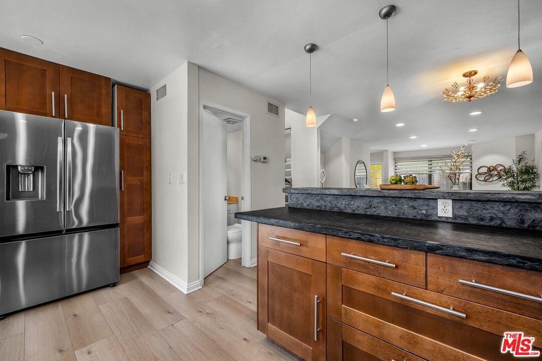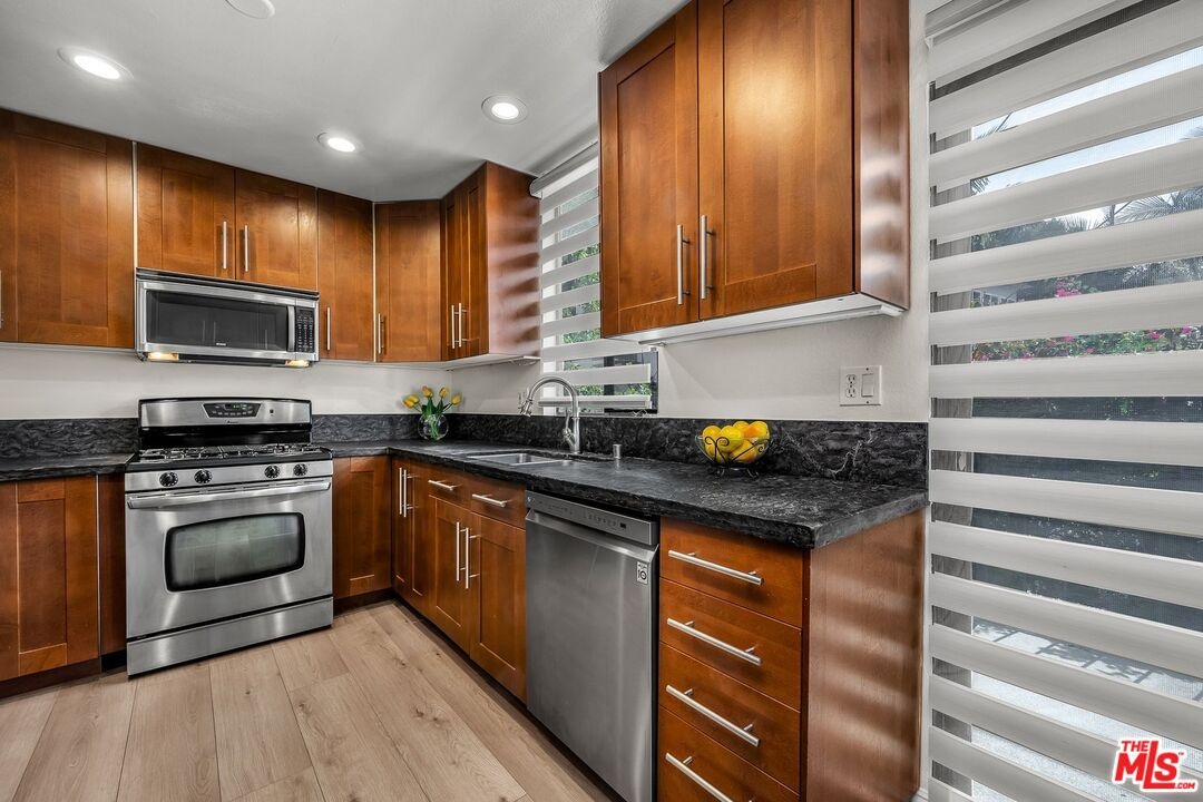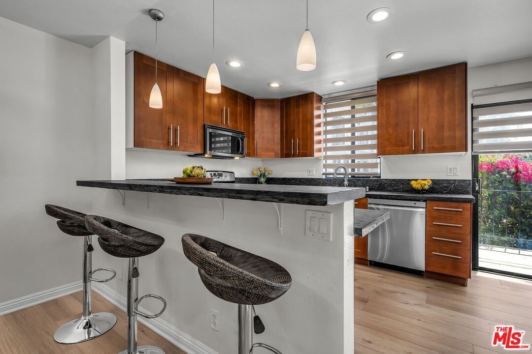 Welcome to this beautifully updated French Tudor townhome-style condo in Playa del Rey, offering the comfort and feel of a single-family home. Enjoy the convenience of direct access to side-by-side parking with EV charging, along with central AC and heating for year-round comfort. Inside, you'll find a light-filled living space with thoughtful updates throughout. Upstairs, both bedrooms feature plush new luxury carpeting, en-suite baths, and spacious walk-in closets, creating the perfect private retreat. Downstairs, new vinyl Hardwood flooring flows seamlessly through the main living areas. The open-concept kitchen and dining area are ideal for everyday living and entertaining, with direct access to a balcony perfect for morning coffee or evening grilling. Just a few steps down, the inviting living room showcases high ceilings, a decorative fireplace, and opens to a private patio, perfect for hosting or relaxing outdoors. The kitchen is both stylish and functional, featuring natural wood shaker cabinetry, stone countertops, stainless steel appliances, a wine fridge, and a dry bar. A convenient half bath completes the main level. A standout feature is the expansive bonus space just off the garage (not included in the square footage), complete with a full-size washer and dryer ideal for a home office, gym, or creative space. Additional highlights include direct access from the community garage, extra storage, and an HOA that covers earthquake insurance, water, trash, and exterior maintenance. All of this just under a mile from the beach, with easy access to local dining, coffee shops, and boutiques bringing the best of Playa del Rey right to your doorstep.